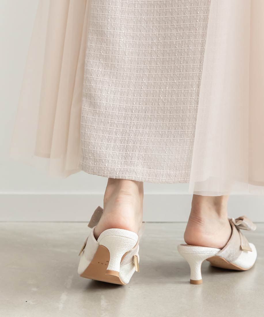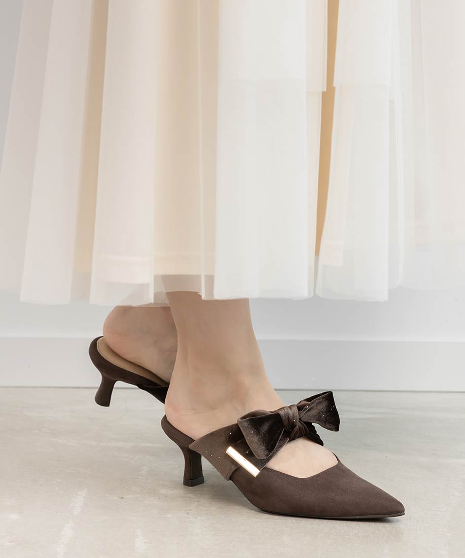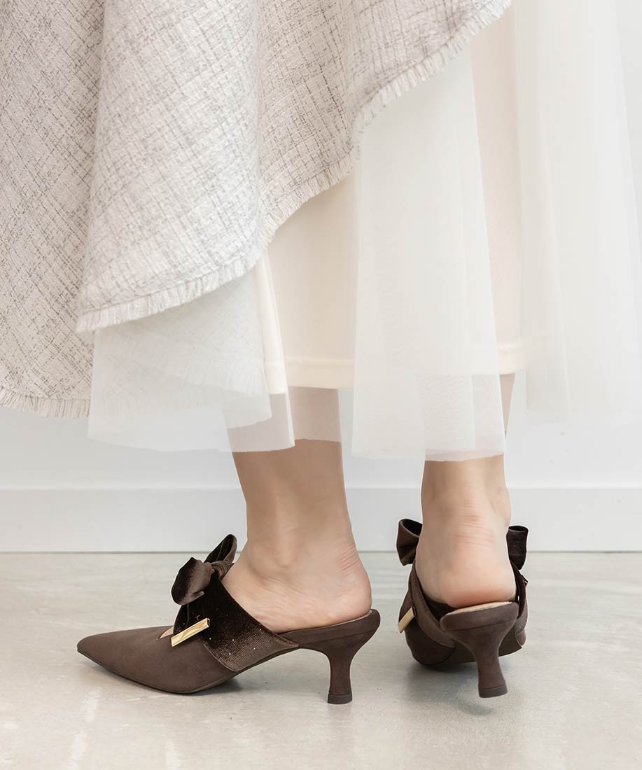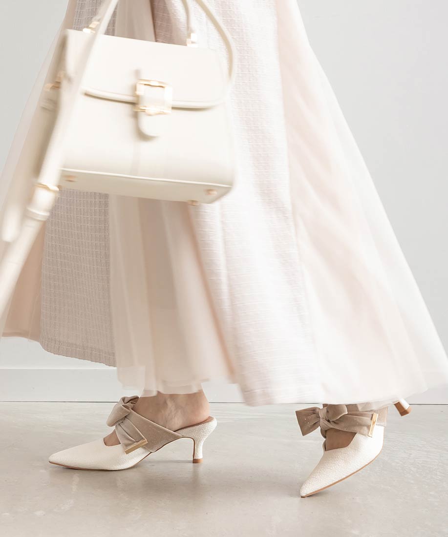 さっと履けるミュールデザインは抜け感があり、取り入れるだけでレディな装いが叶う一足です。