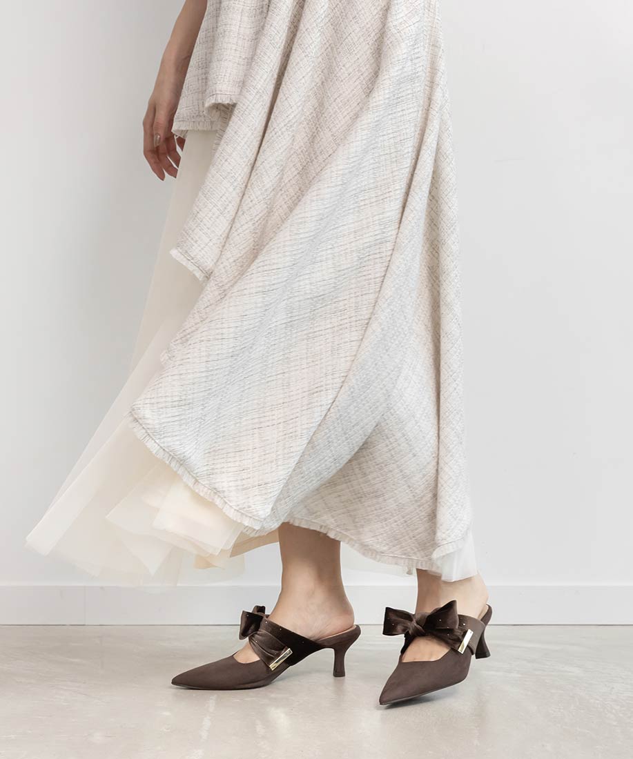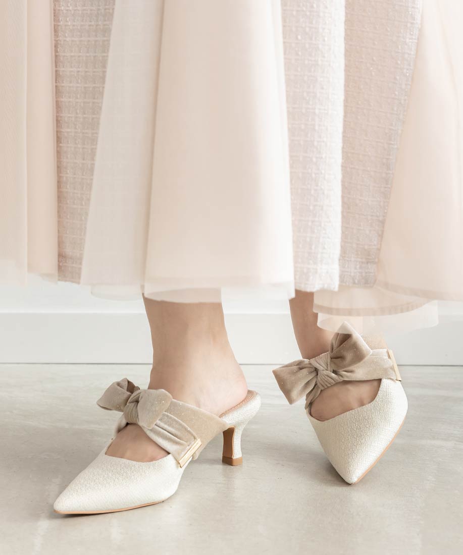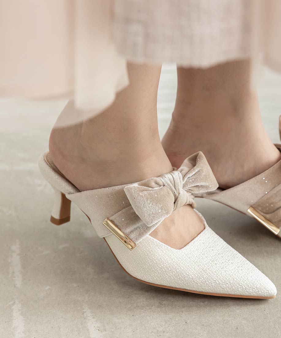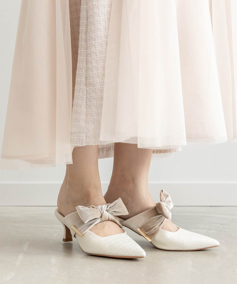 さっと履けるミュールデザインは抜け感があり、取り入れるだけでレディな装いが叶う一足です。