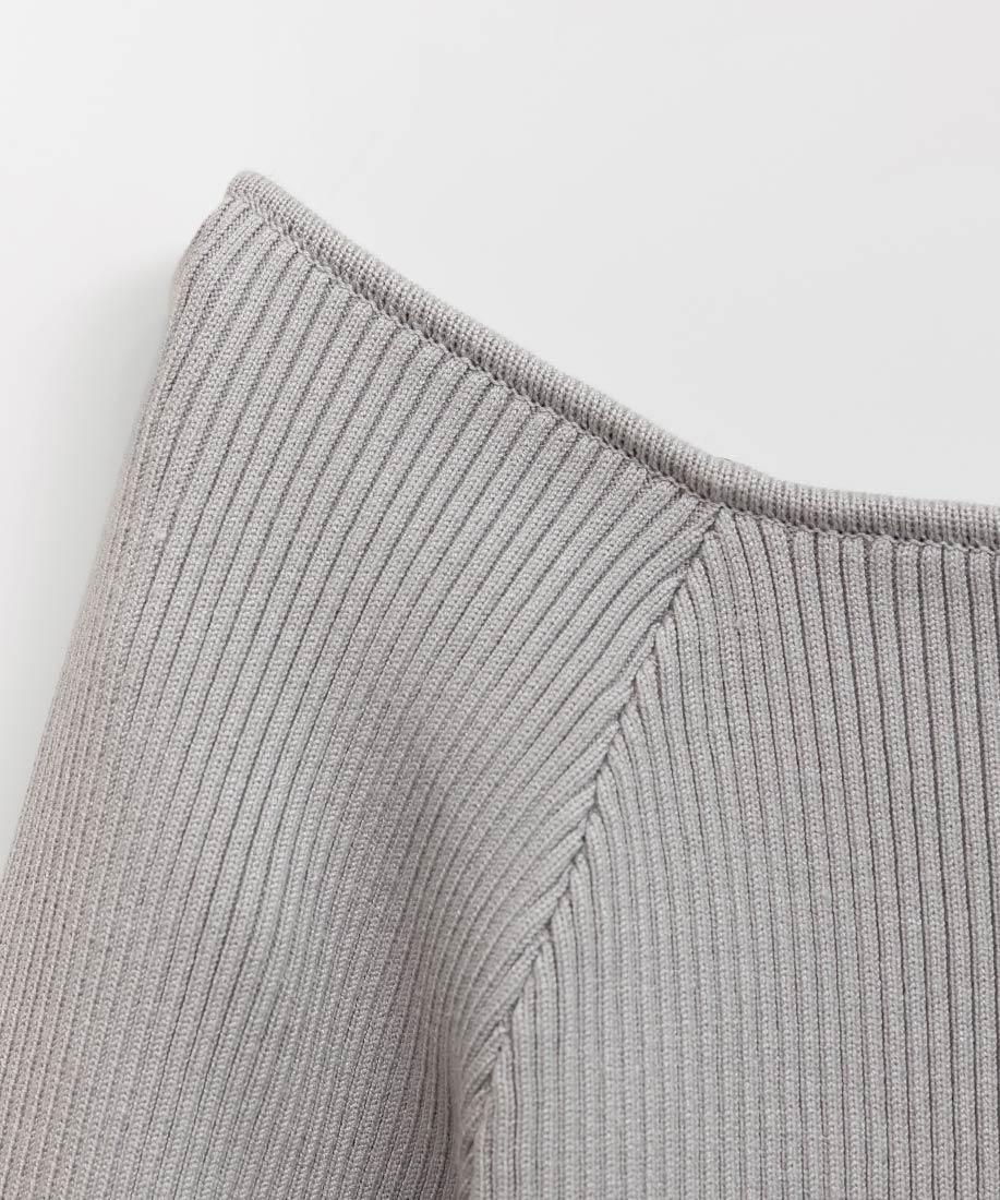 ・身頃は伸縮性のあるリブ編みですっきりとしたシルエットに