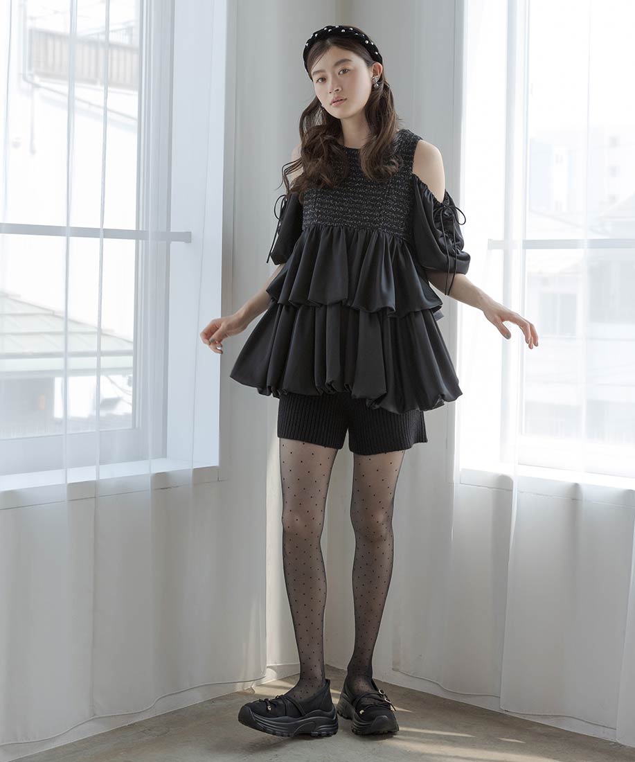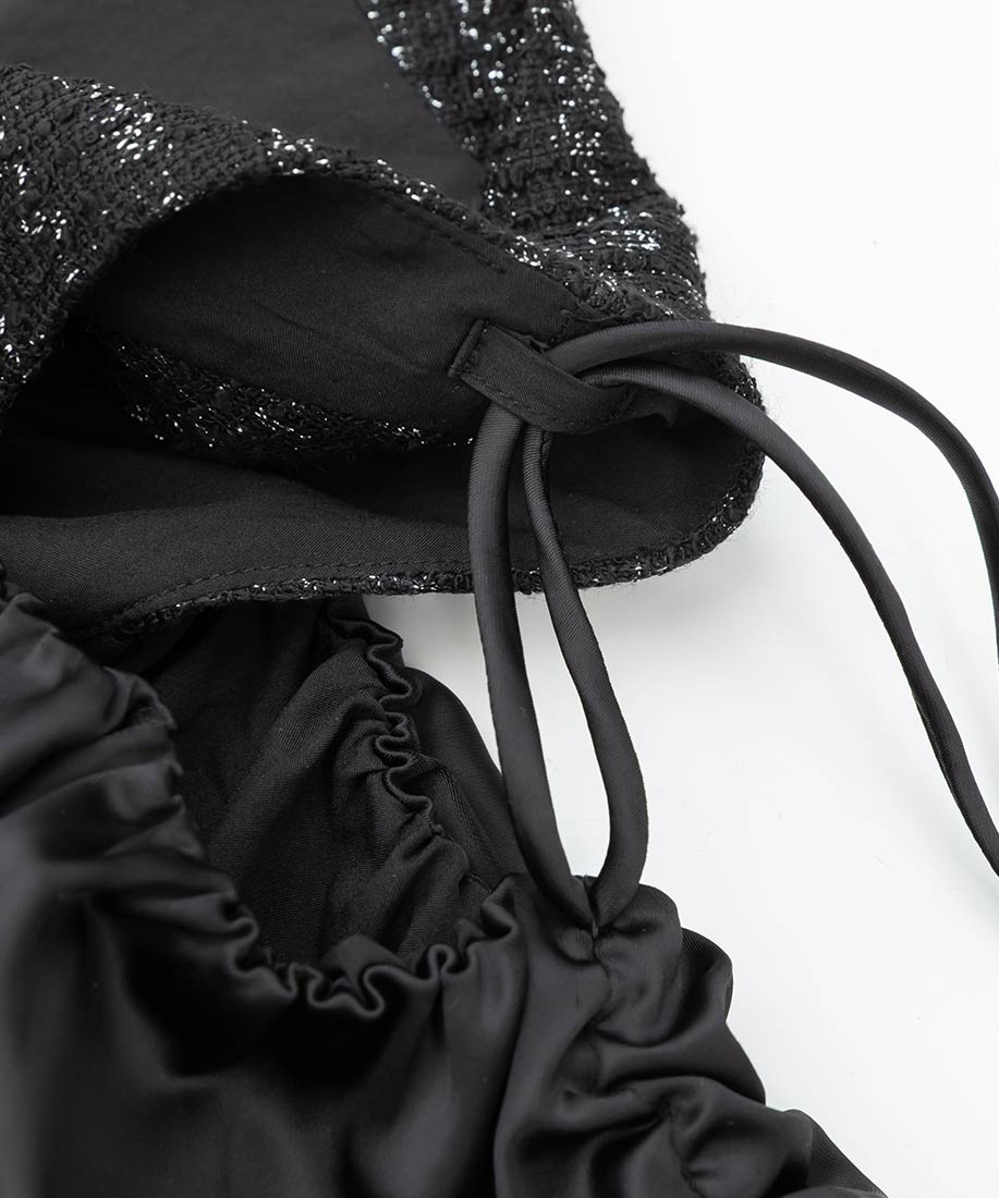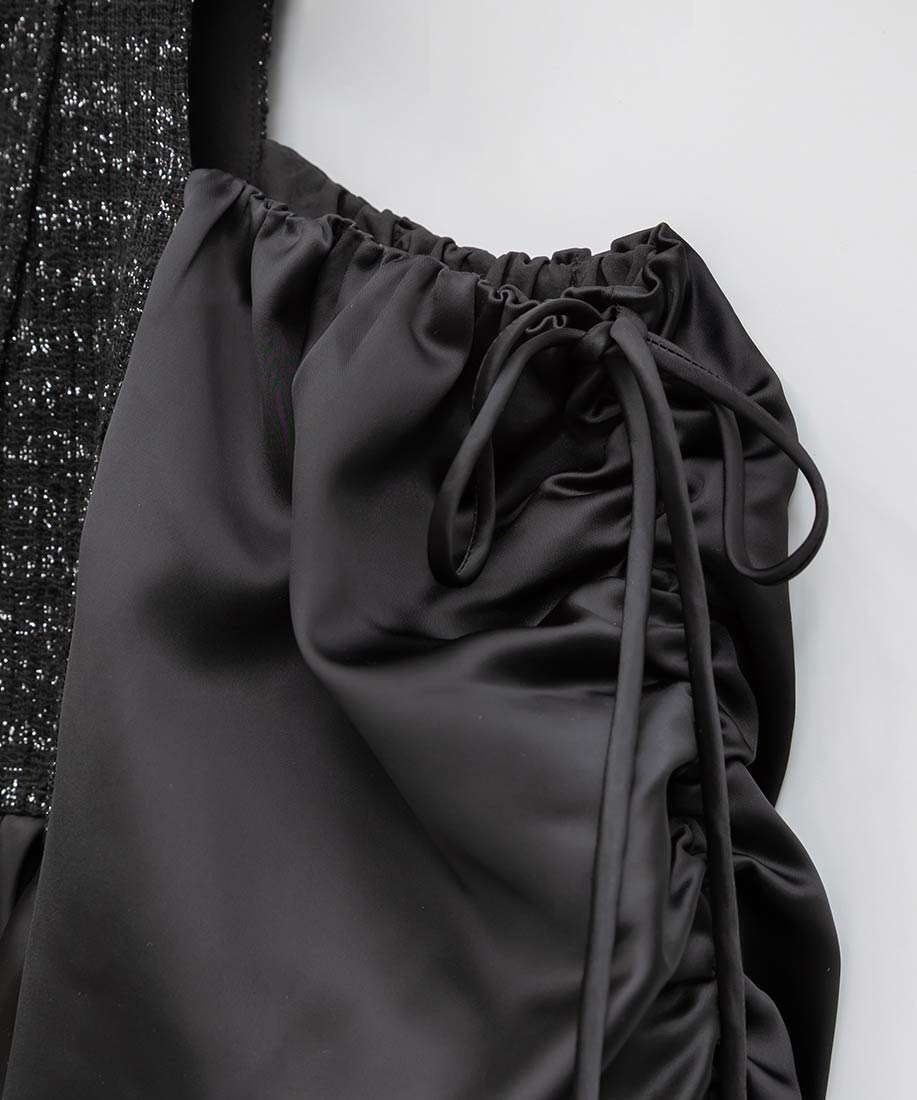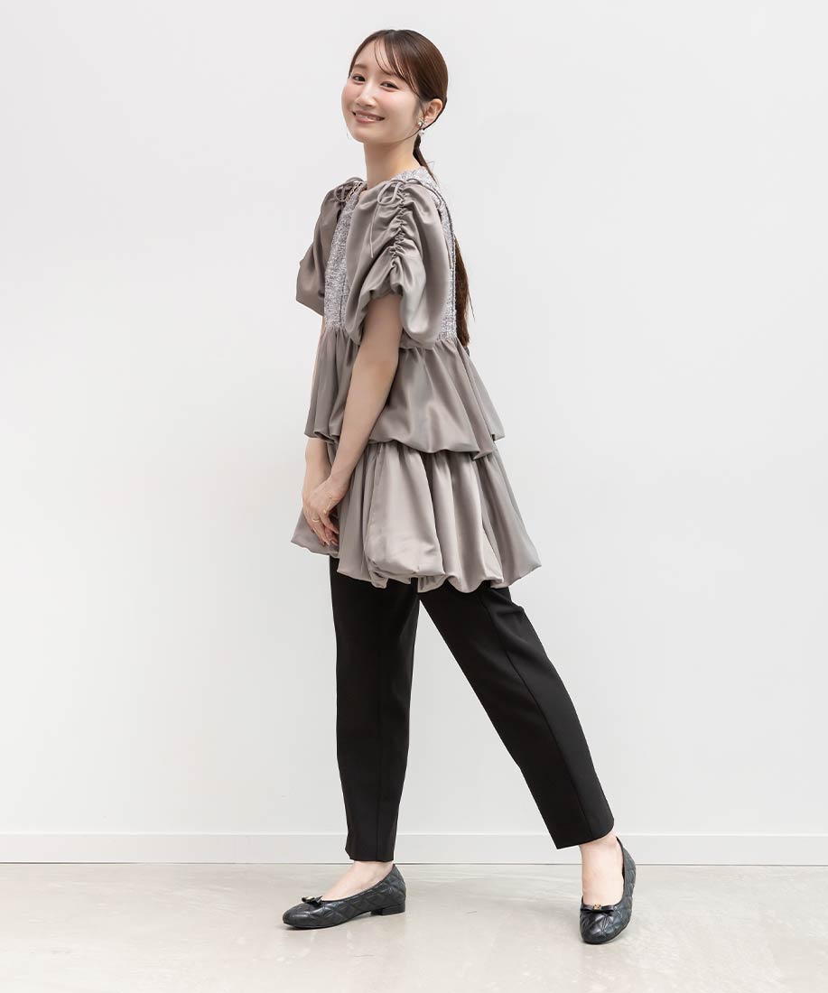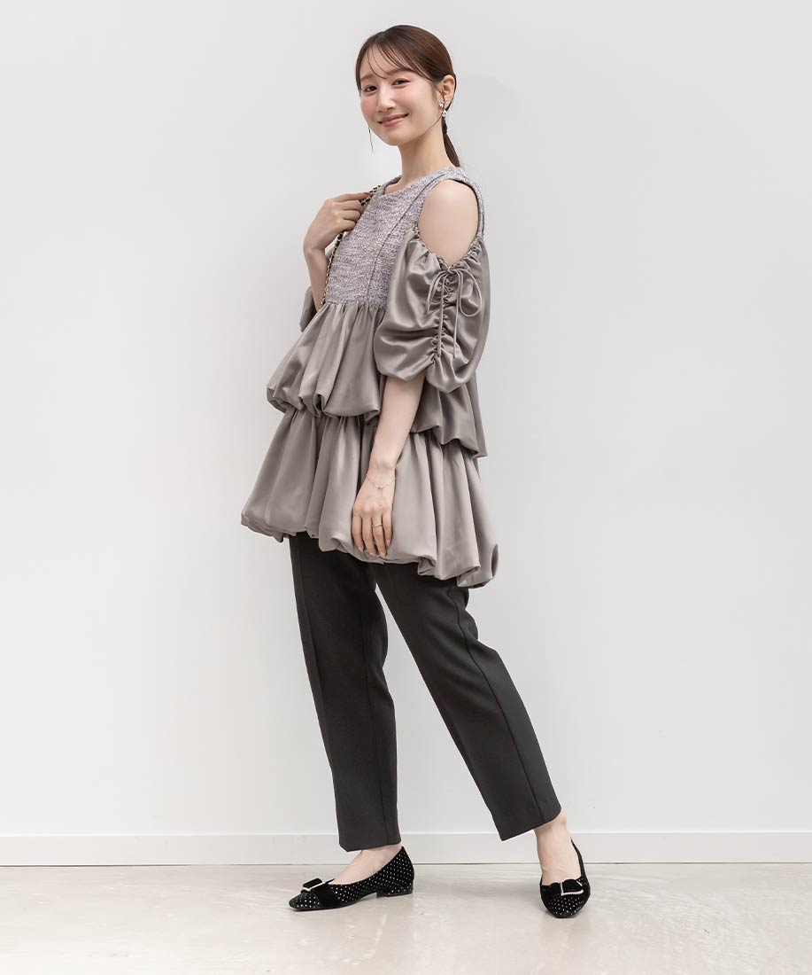 ブラック・グレージュ⇒(表地)ポリエステル70%、レーヨン15%、綿13%、ポリウレタン2%(スリット糸使用)(別布)ポリエステル100%(裏地)ポリエステル95%、ポリウレタン5%ホワイト⇒(表地)ポリエステル71%、綿24%、ポリウレタン5%(スリット糸使用)(別布)ポリエステル100%(裏地)ポリエステル95%、ポリウレタン5%