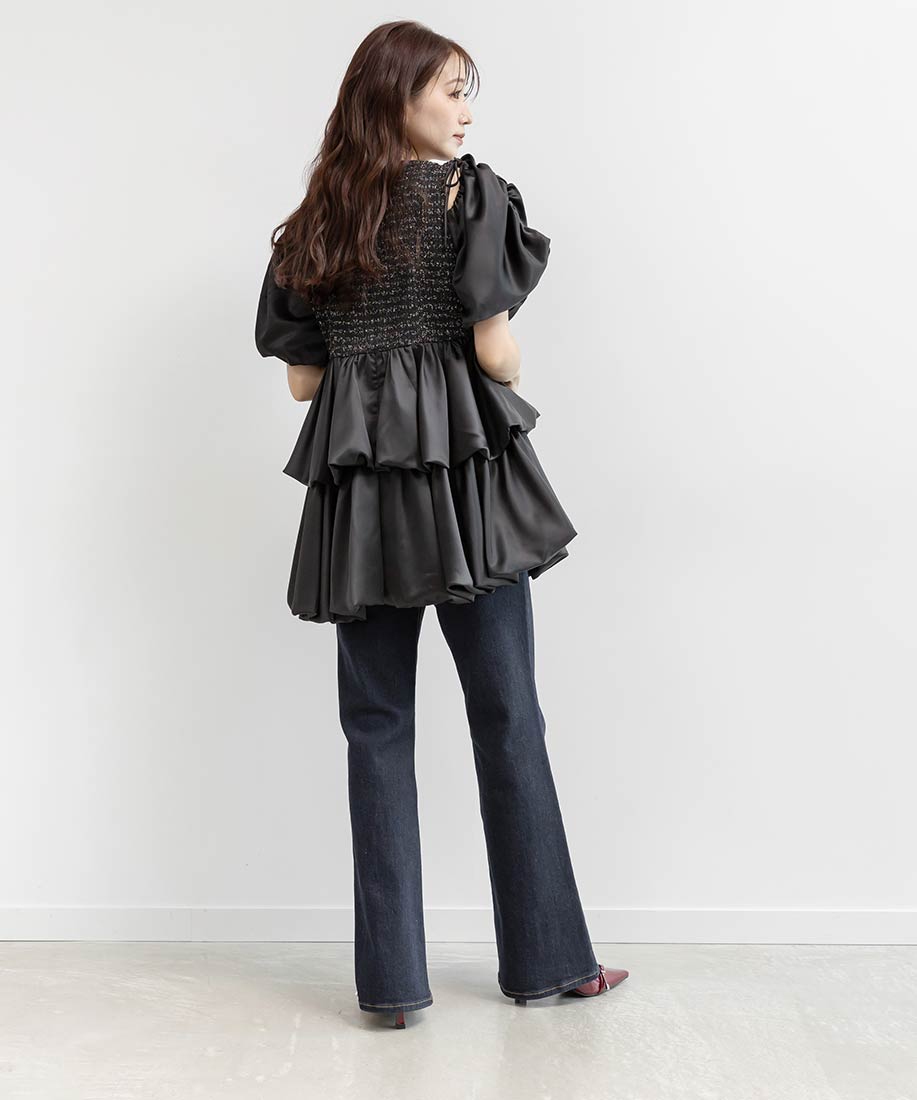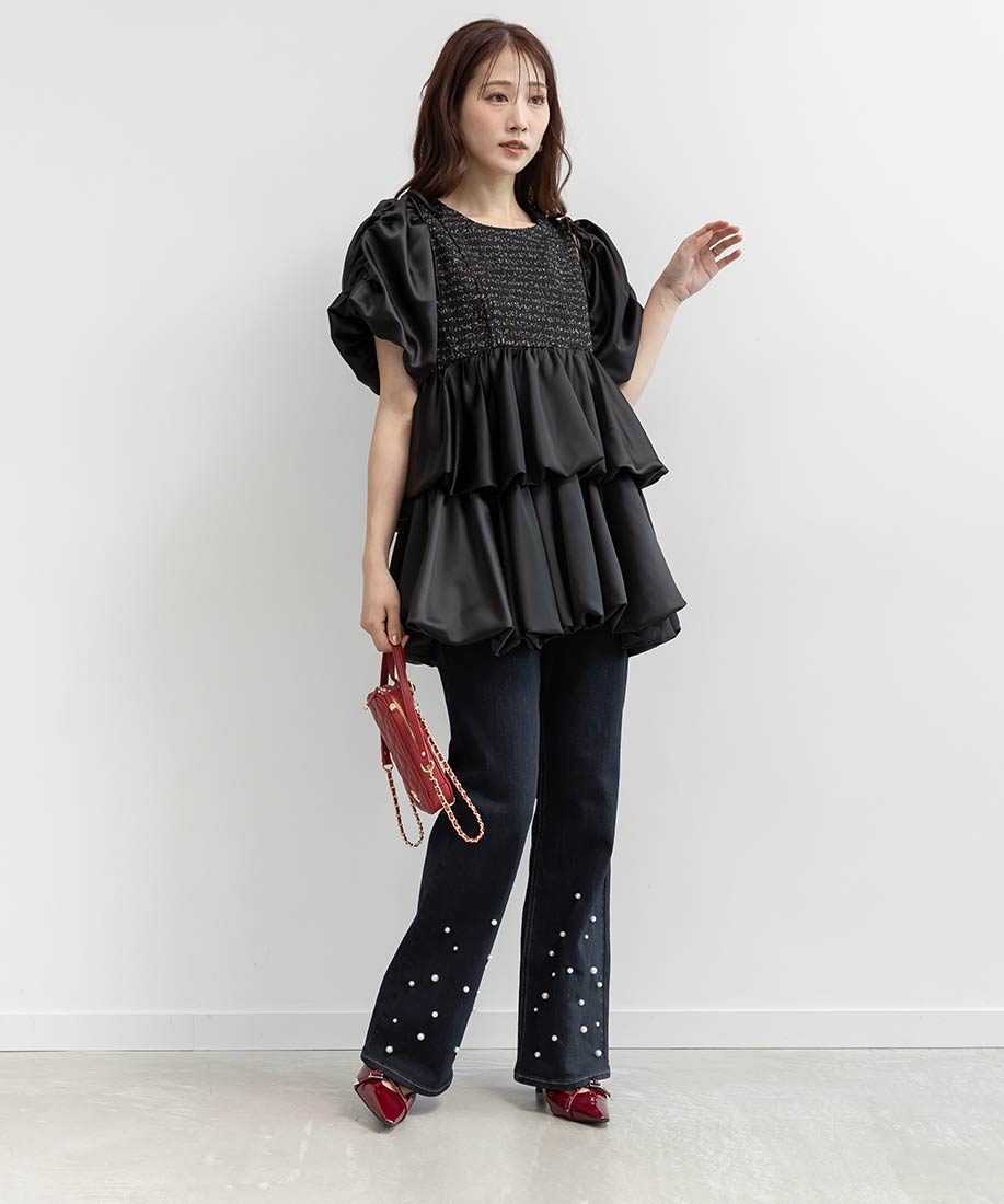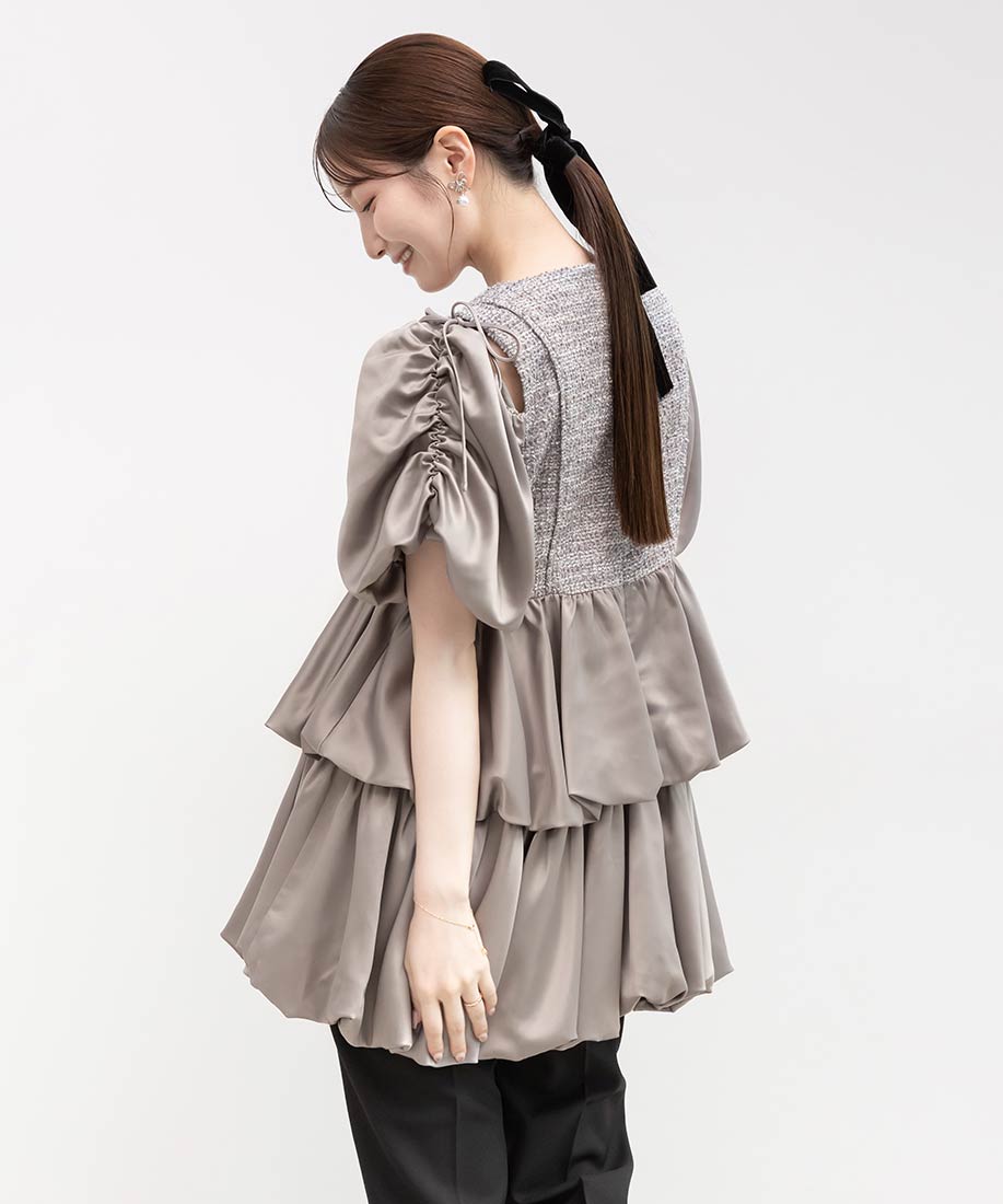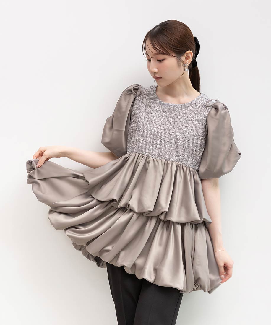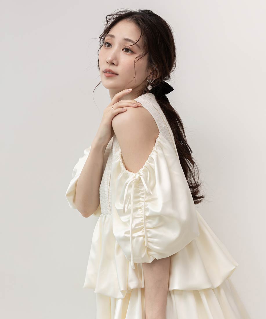 ブラック・グレージュ⇒(表地)ポリエステル70%、レーヨン15%、綿13%、ポリウレタン2%(スリット糸使用)(別布)ポリエステル100%(裏地)ポリエステル95%、ポリウレタン5%ホワイト⇒(表地)ポリエステル71%、綿24%、ポリウレタン5%(スリット糸使用)(別布)ポリエステル100%(裏地)ポリエステル95%、ポリウレタン5%