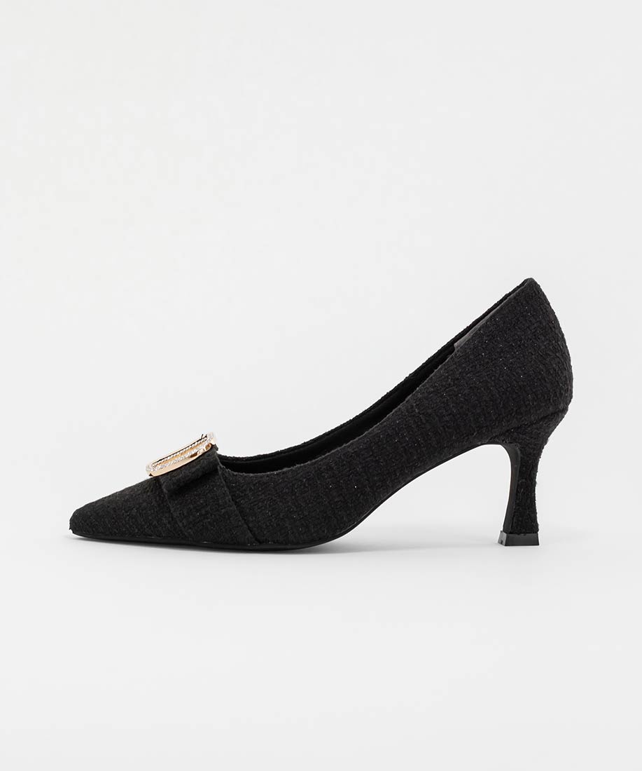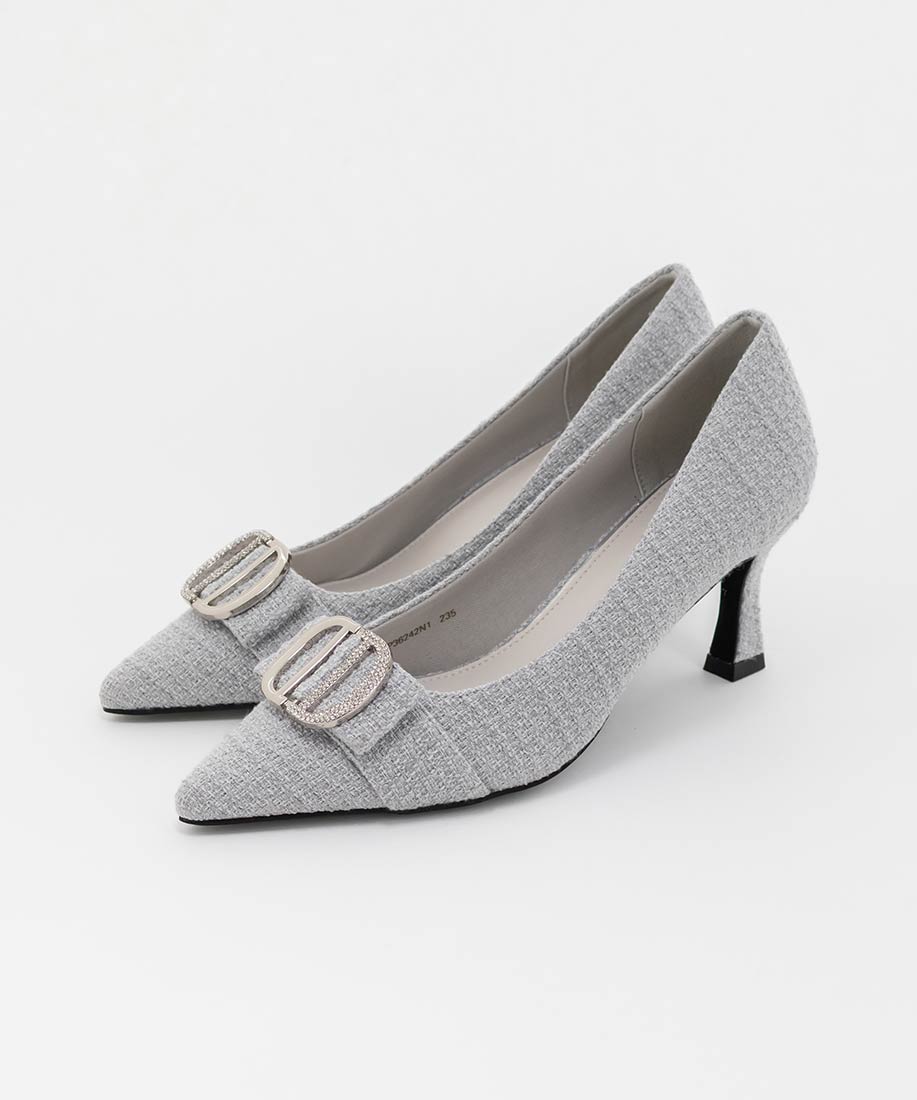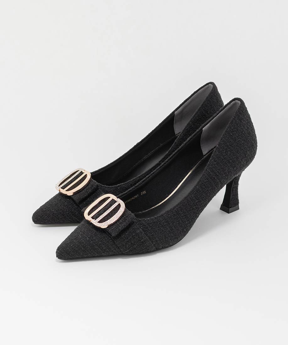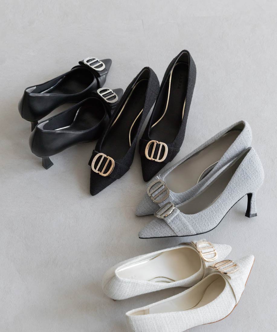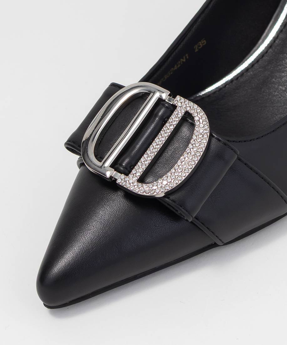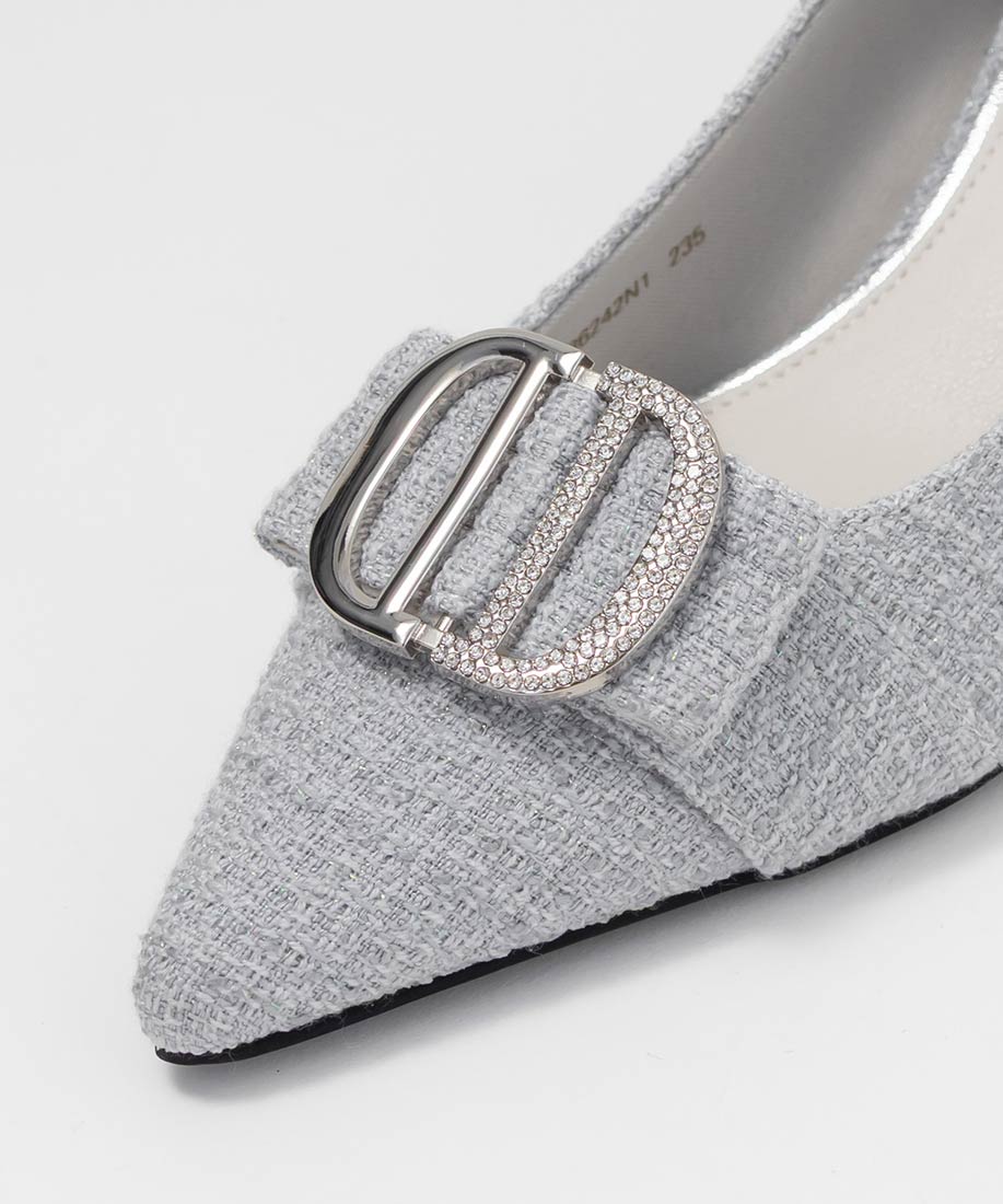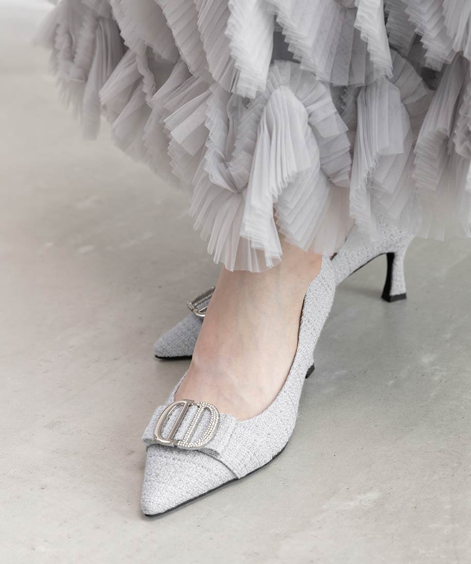 ビジューパーツ×畳みリボンが華やかなポインテッドトゥパンプス。