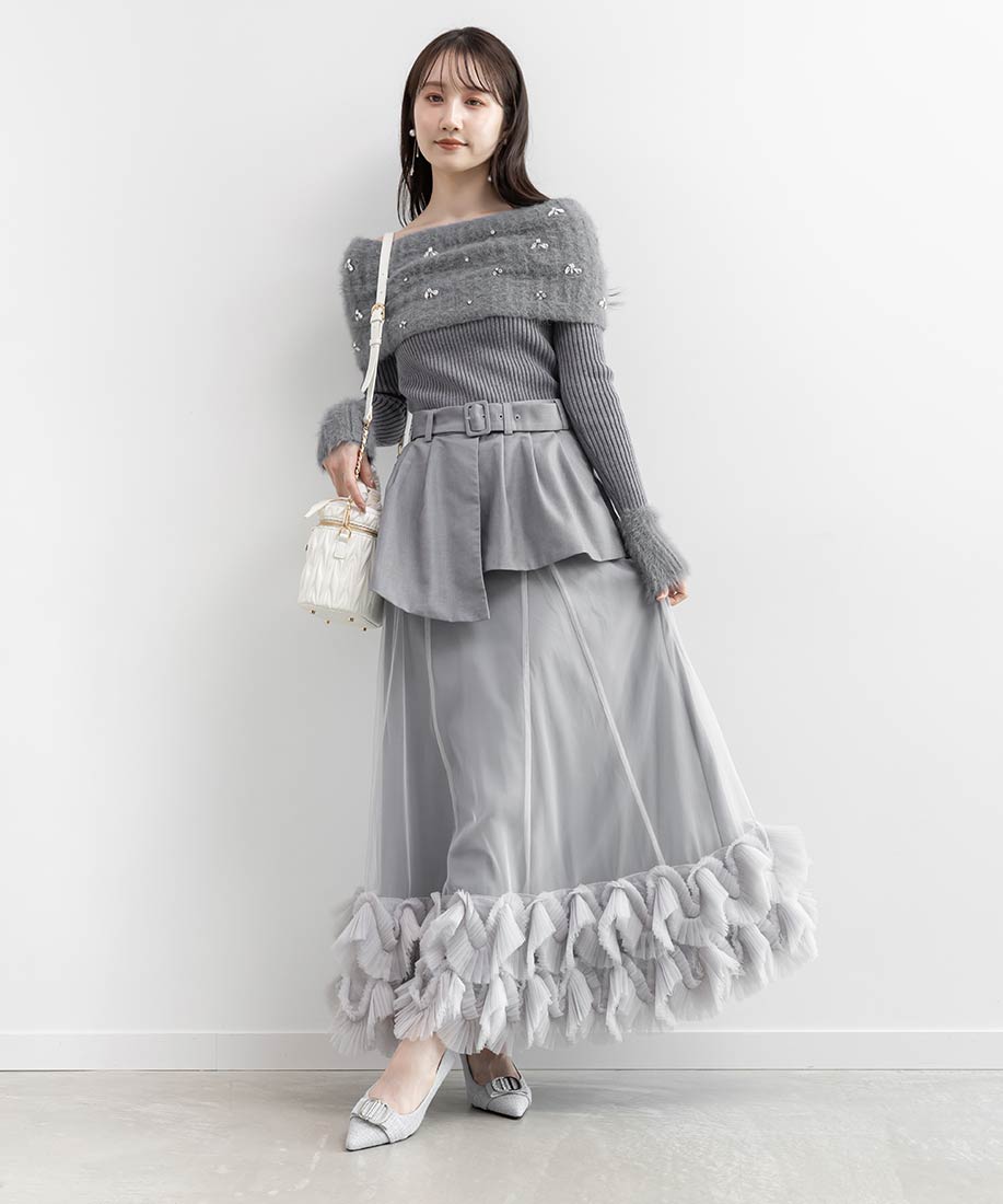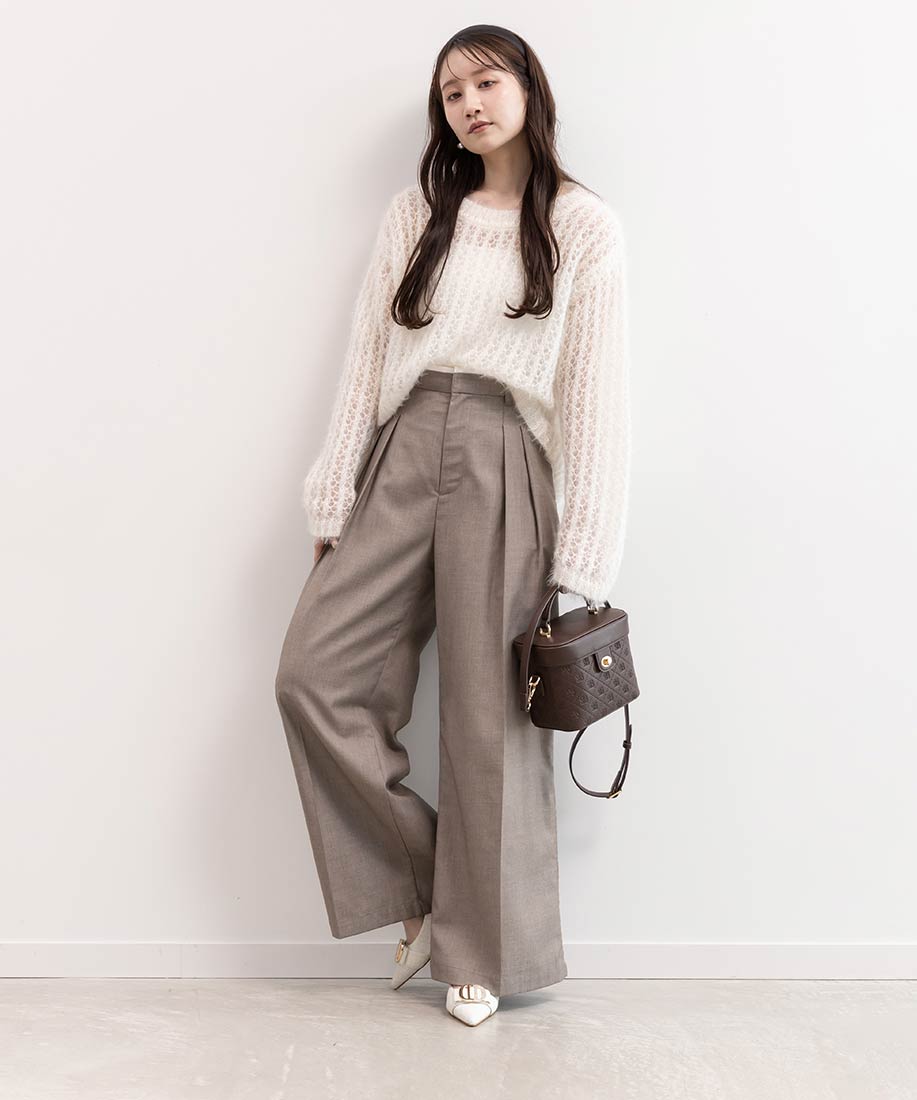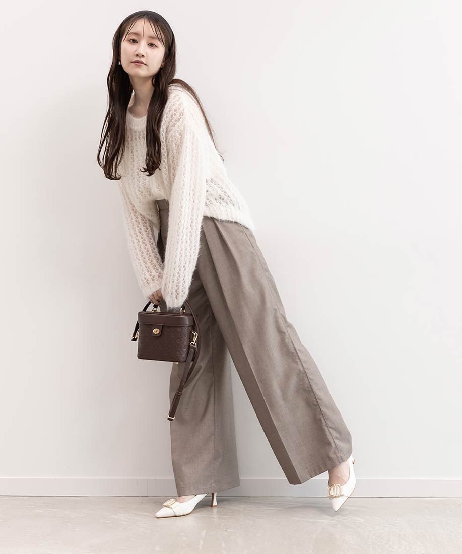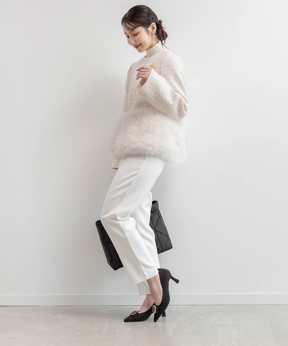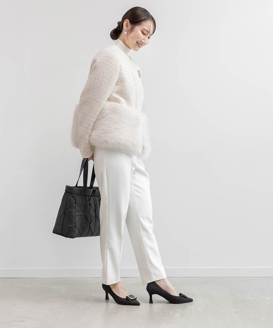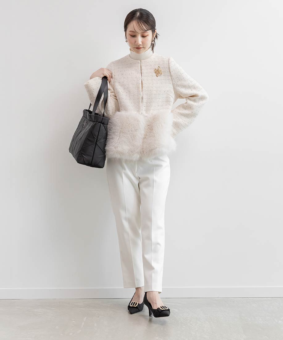・シーズンムード高まるツイード素材のブラック、ブルー、アイボリーに加えて、幅広いコーディネートを楽しめるブラックスムースの4色展開