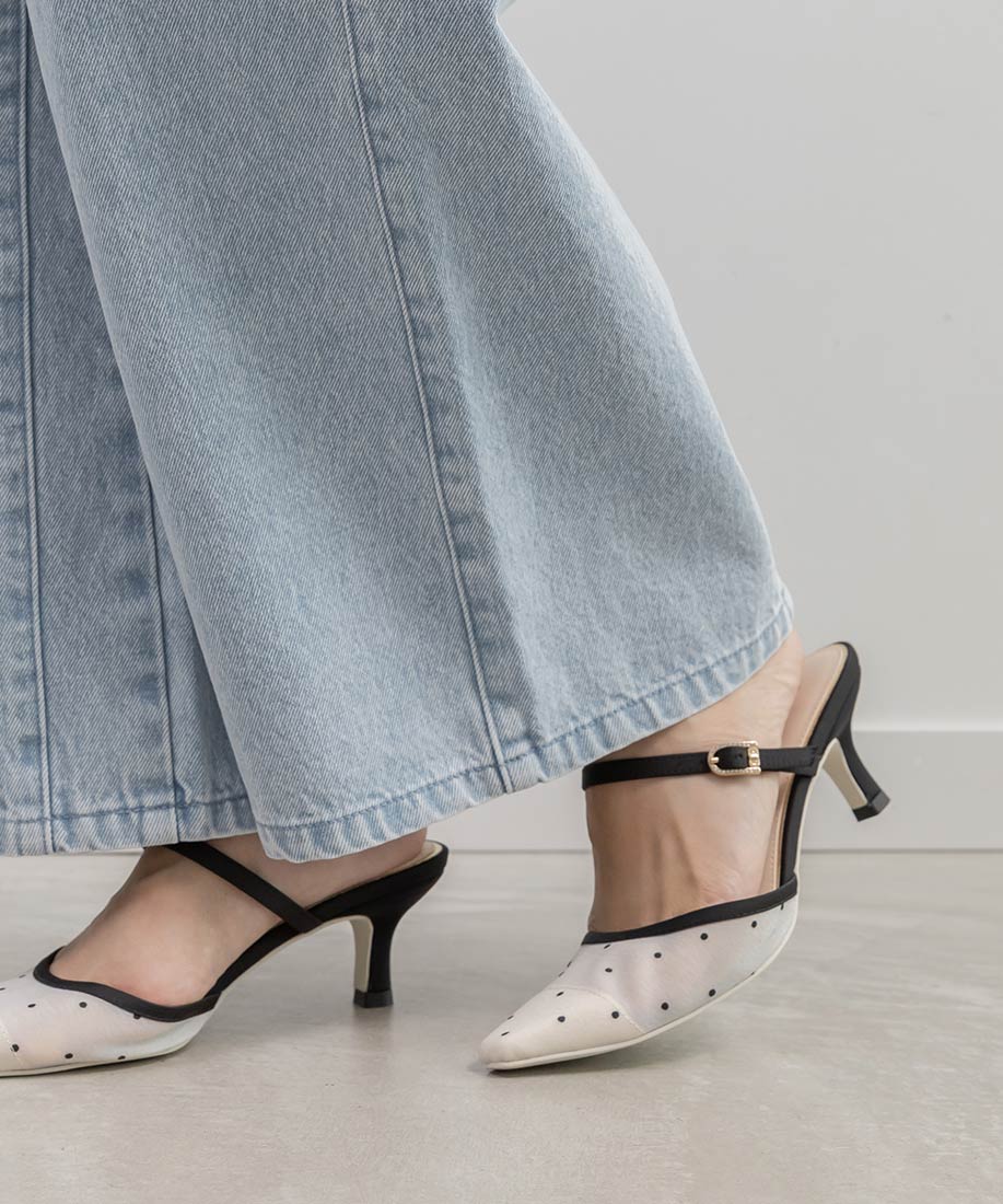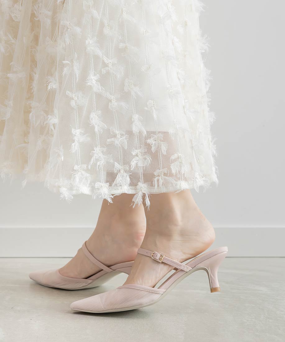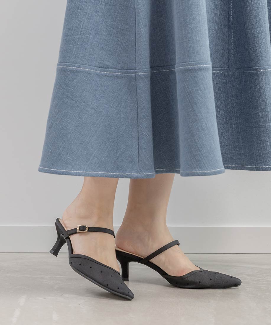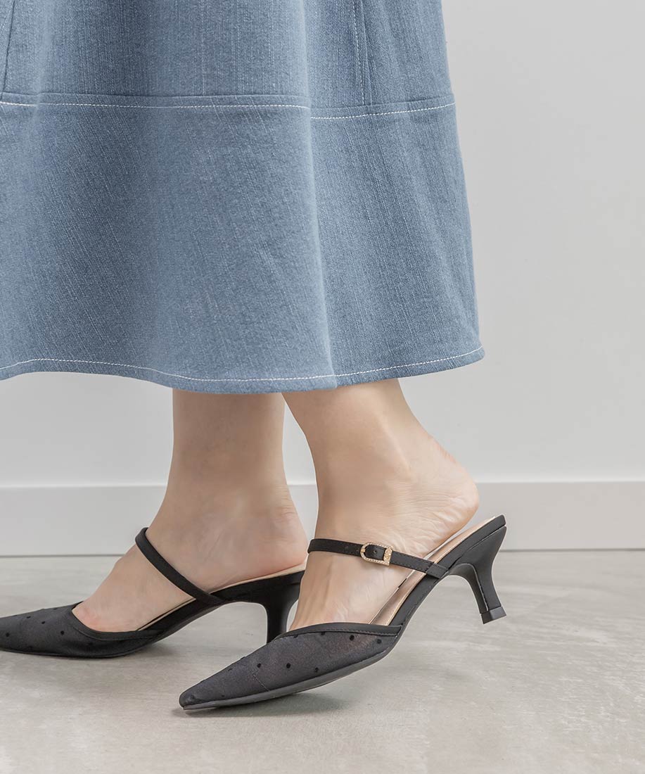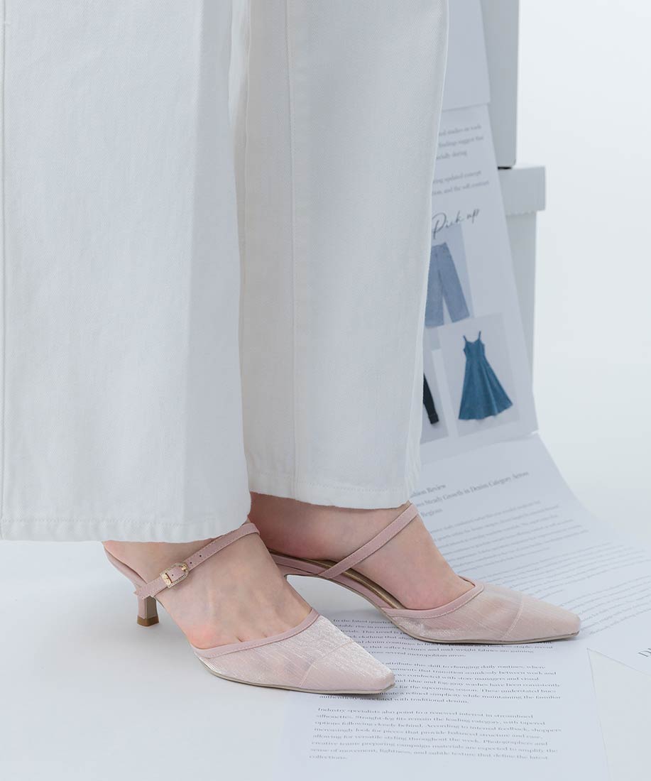 シアー生地が軽やかな足元を演出してくれるミュールパンプス。