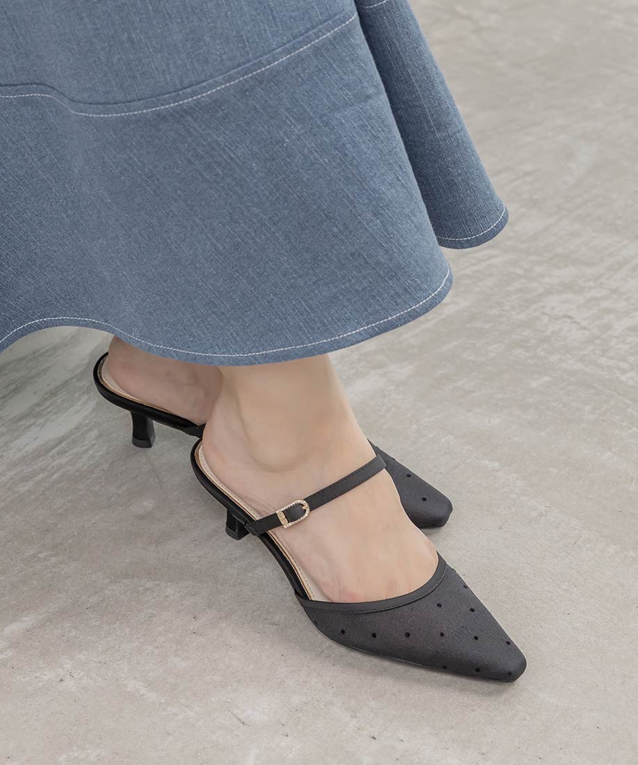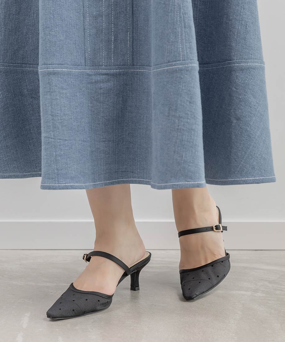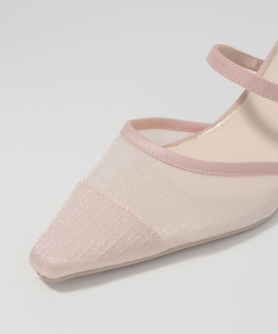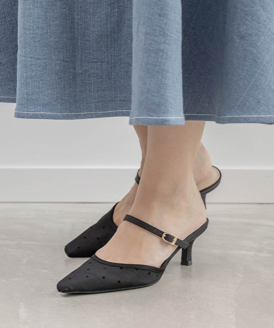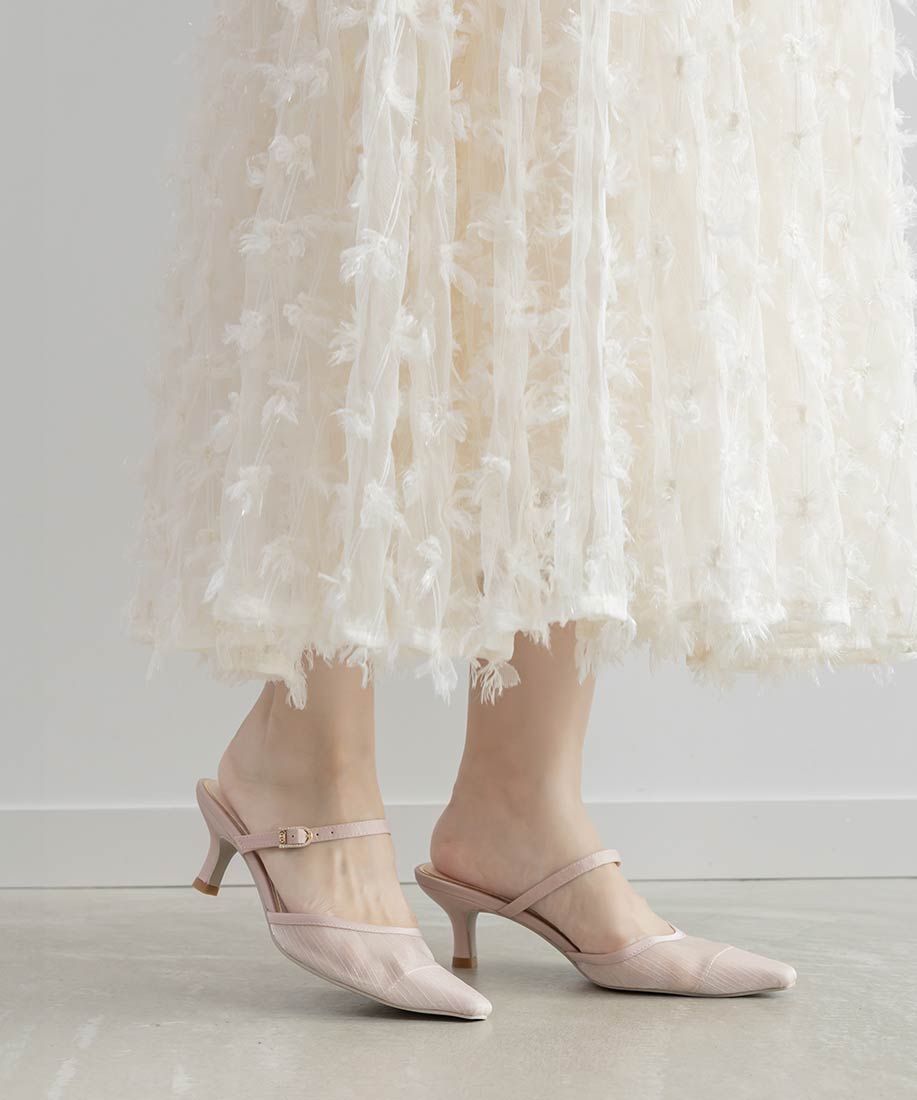 シアー生地が軽やかな足元を演出してくれるミュールパンプス。