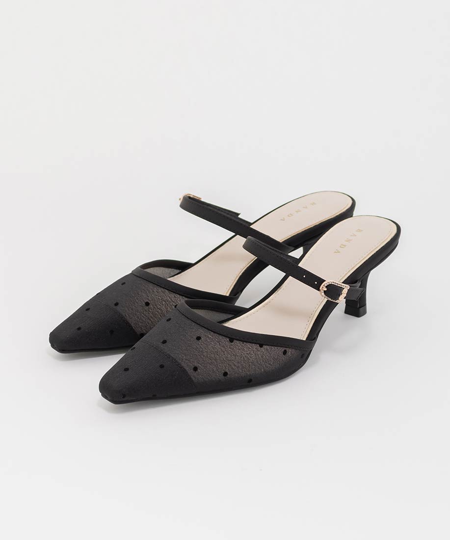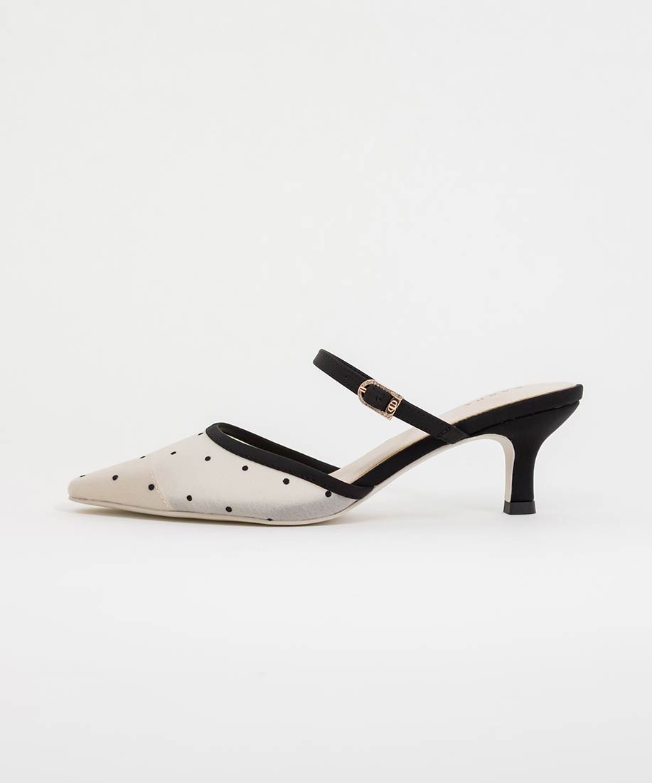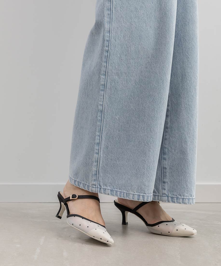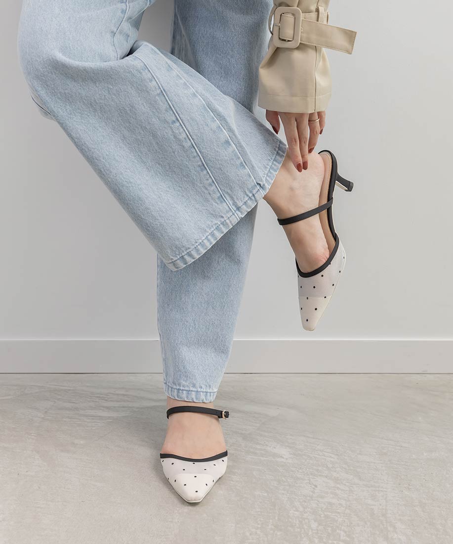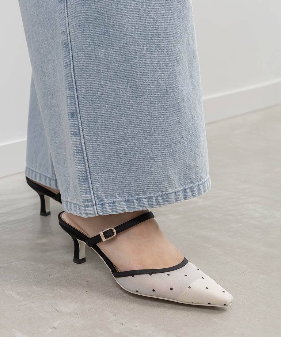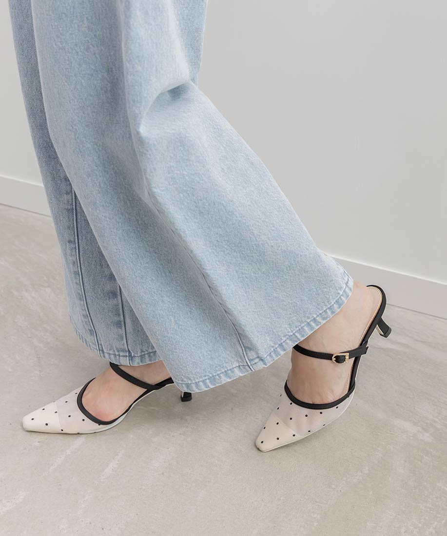 シアー生地が軽やかな足元を演出してくれるミュールパンプス。