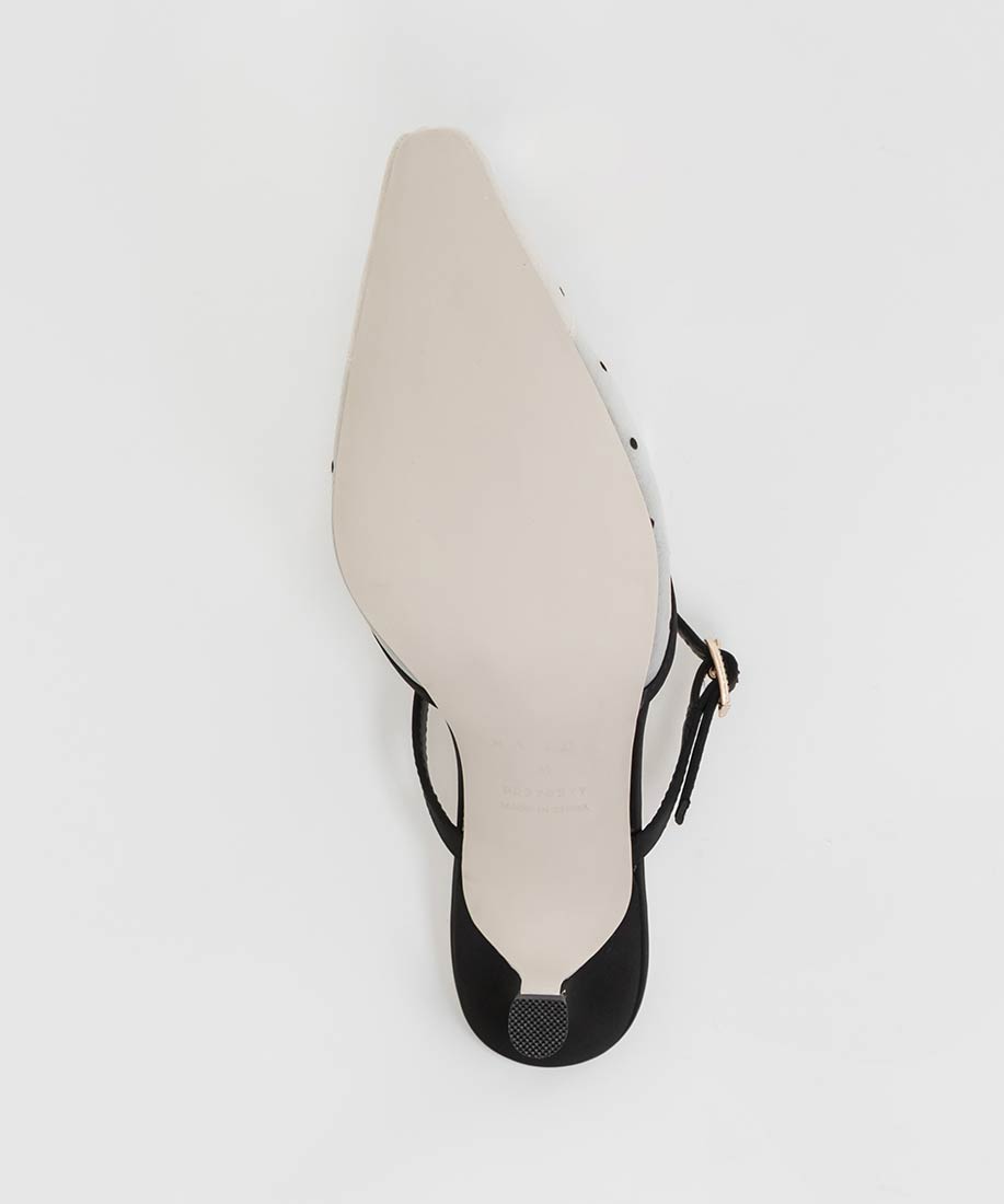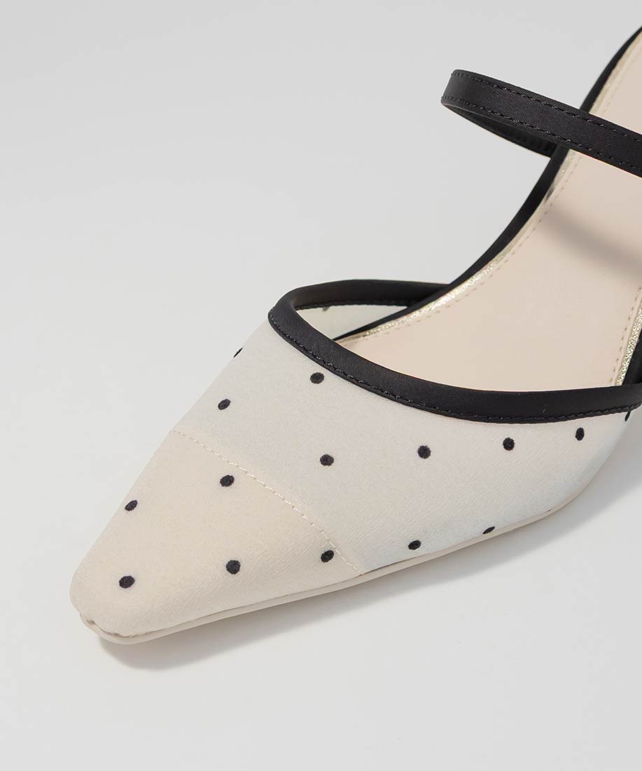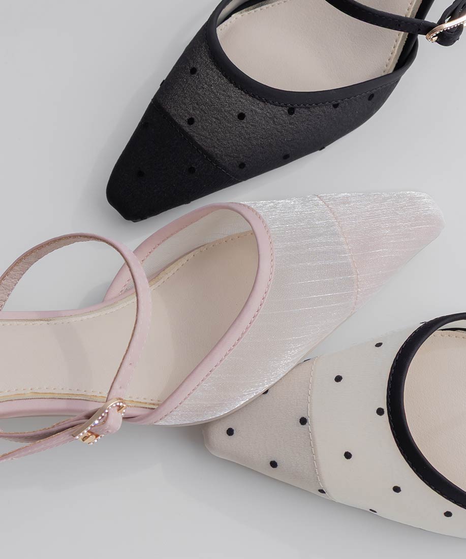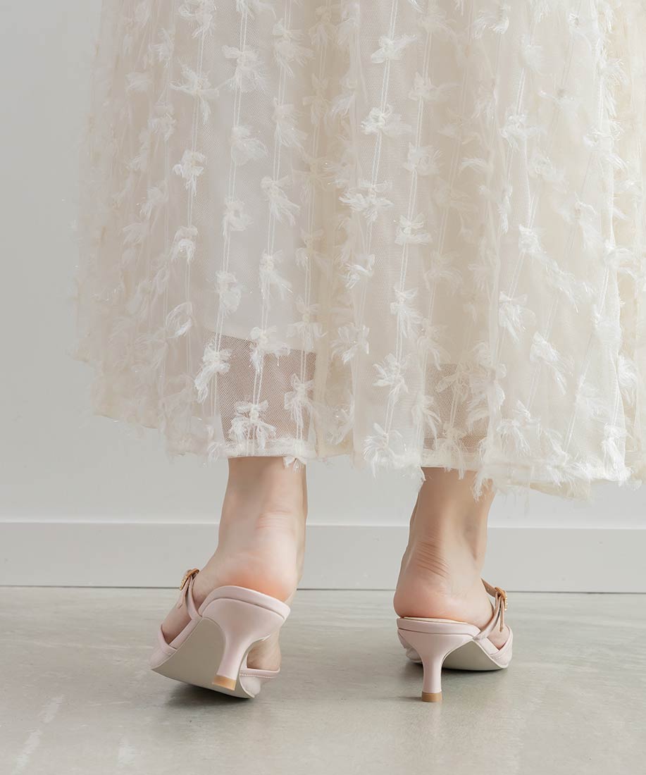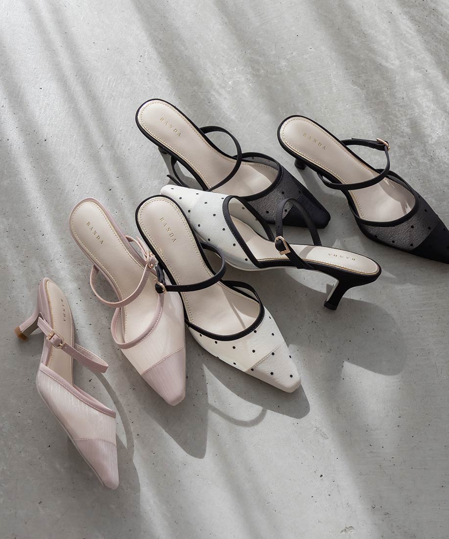シアー生地が軽やかな足元を演出してくれるミュールパンプス。