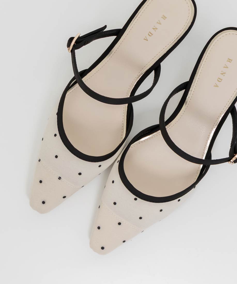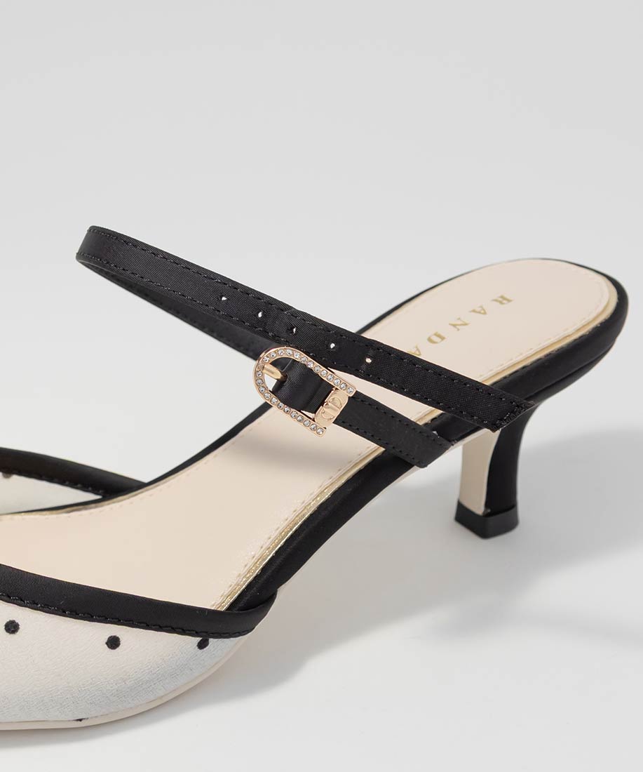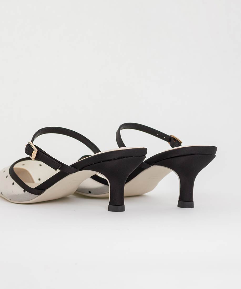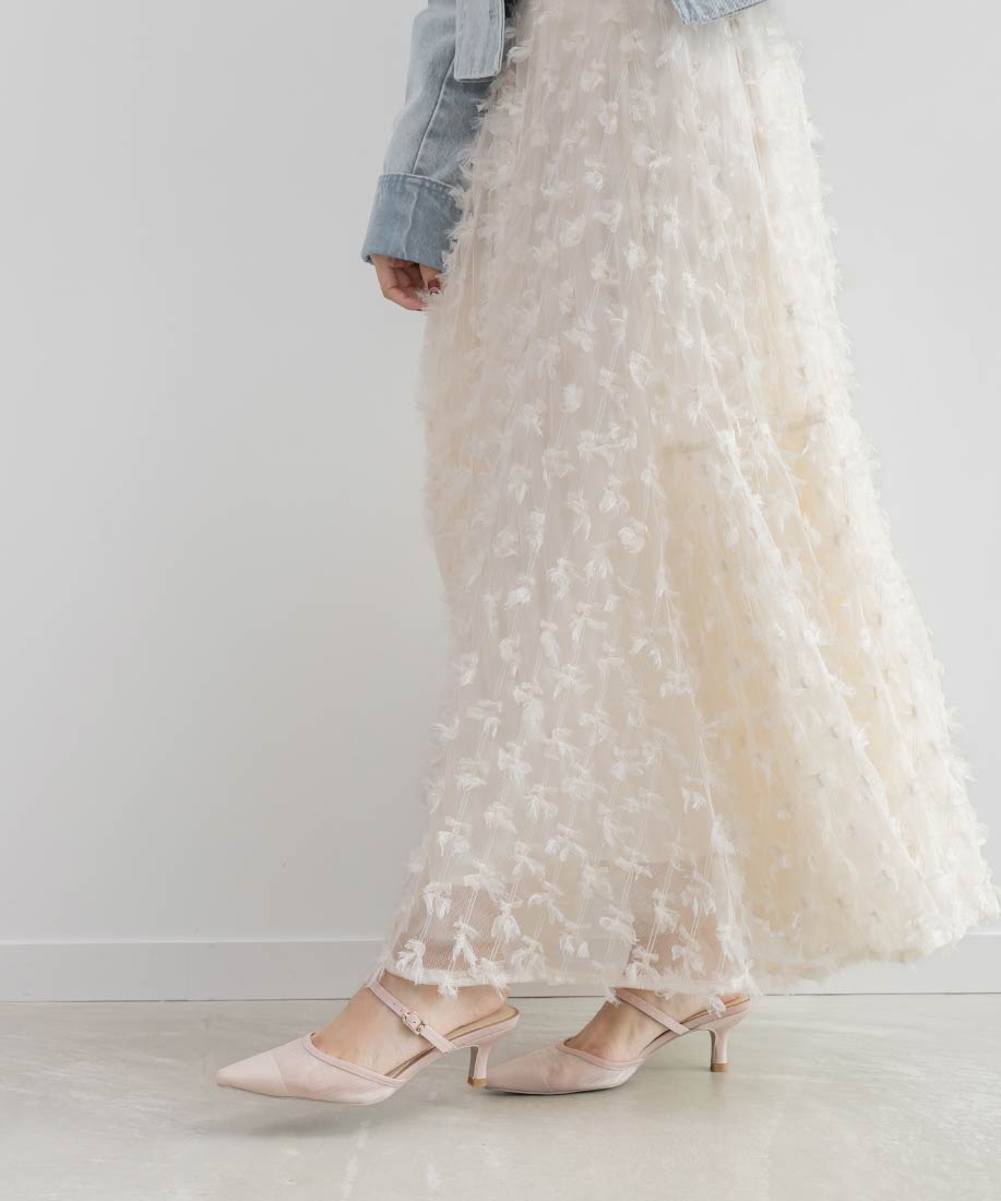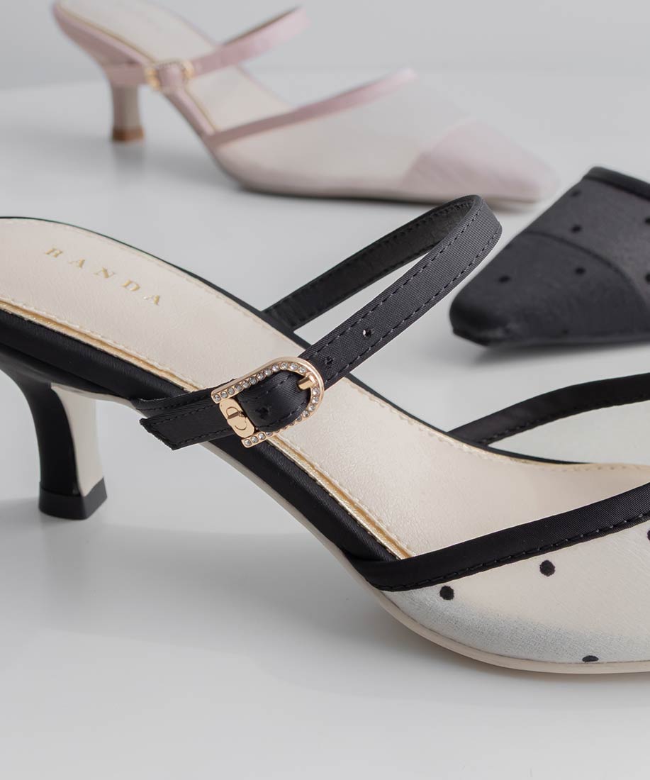 シアー生地が軽やかな足元を演出してくれるミュールパンプス。