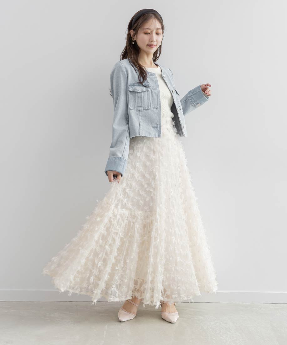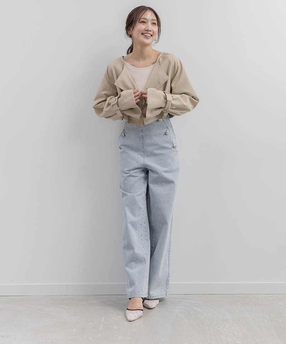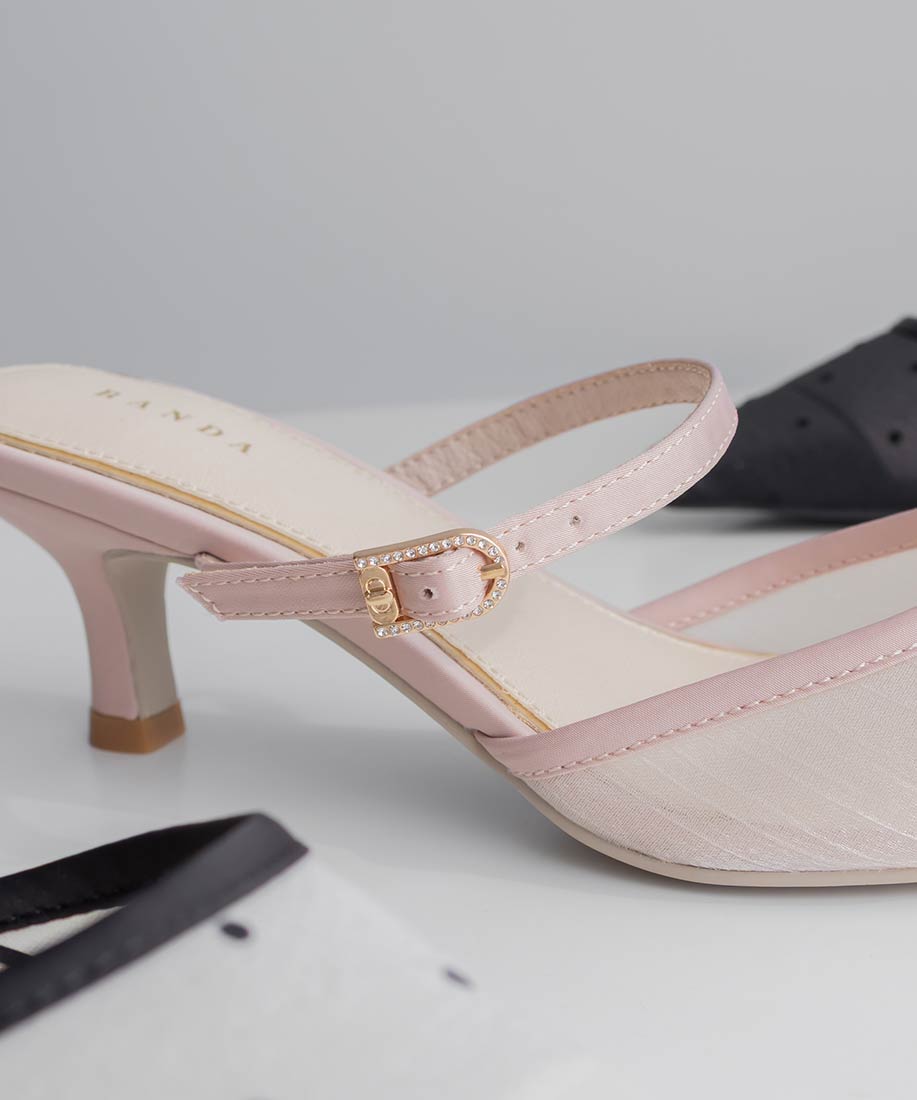 繊細に輝くビジューバックルがさりげないアクセントになり、上品な印象へと導きます。