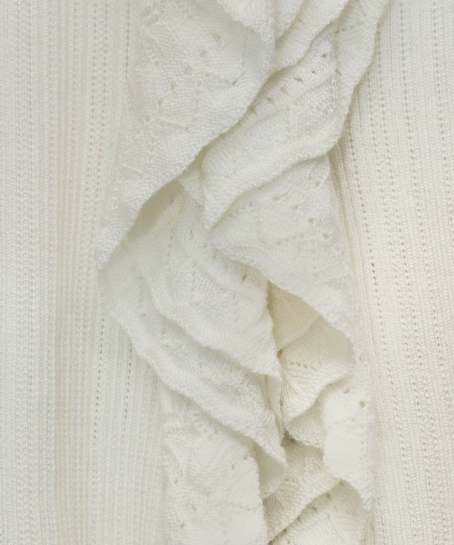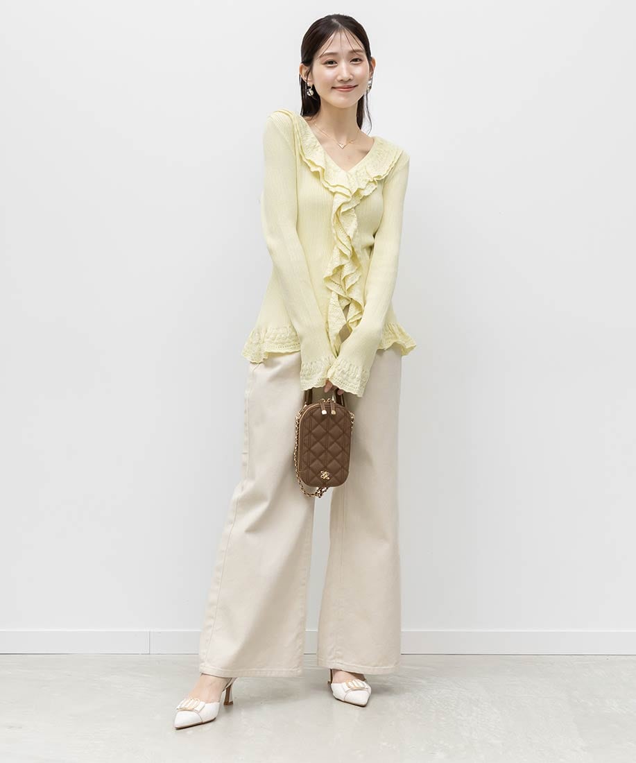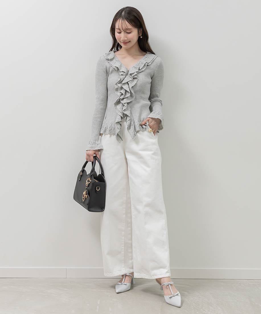・ラッフル部分はレース調の編地でフェミニンさをプラス