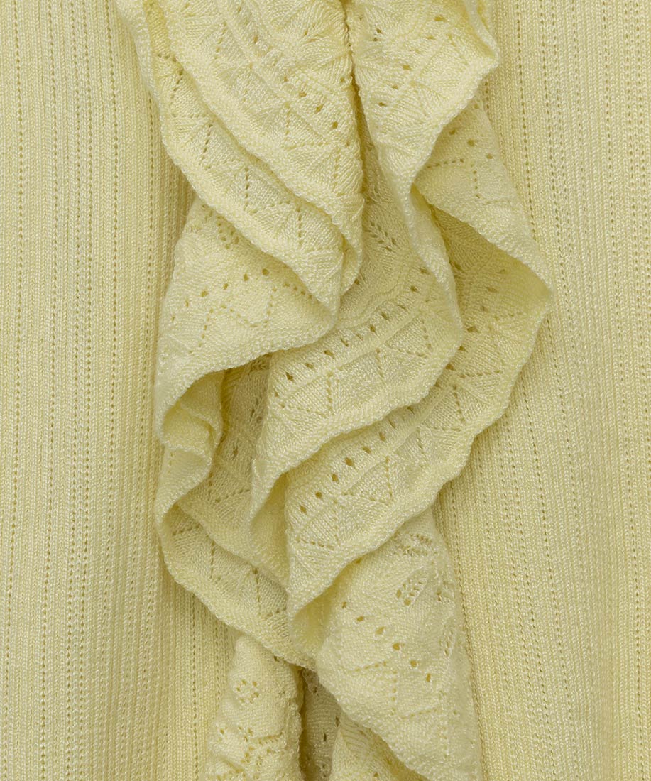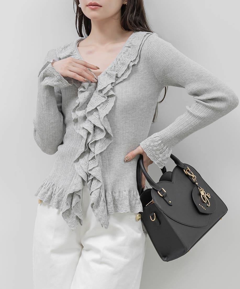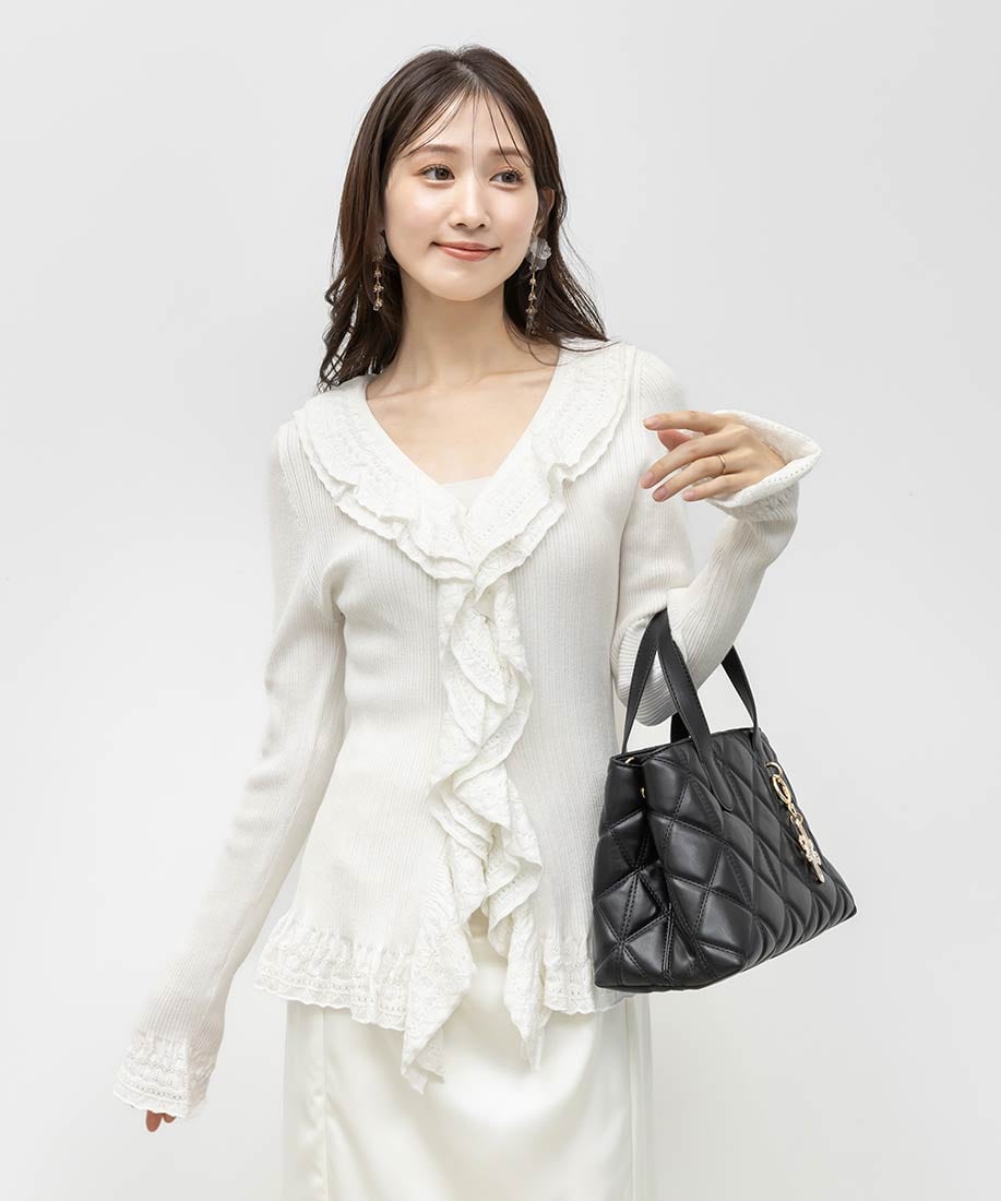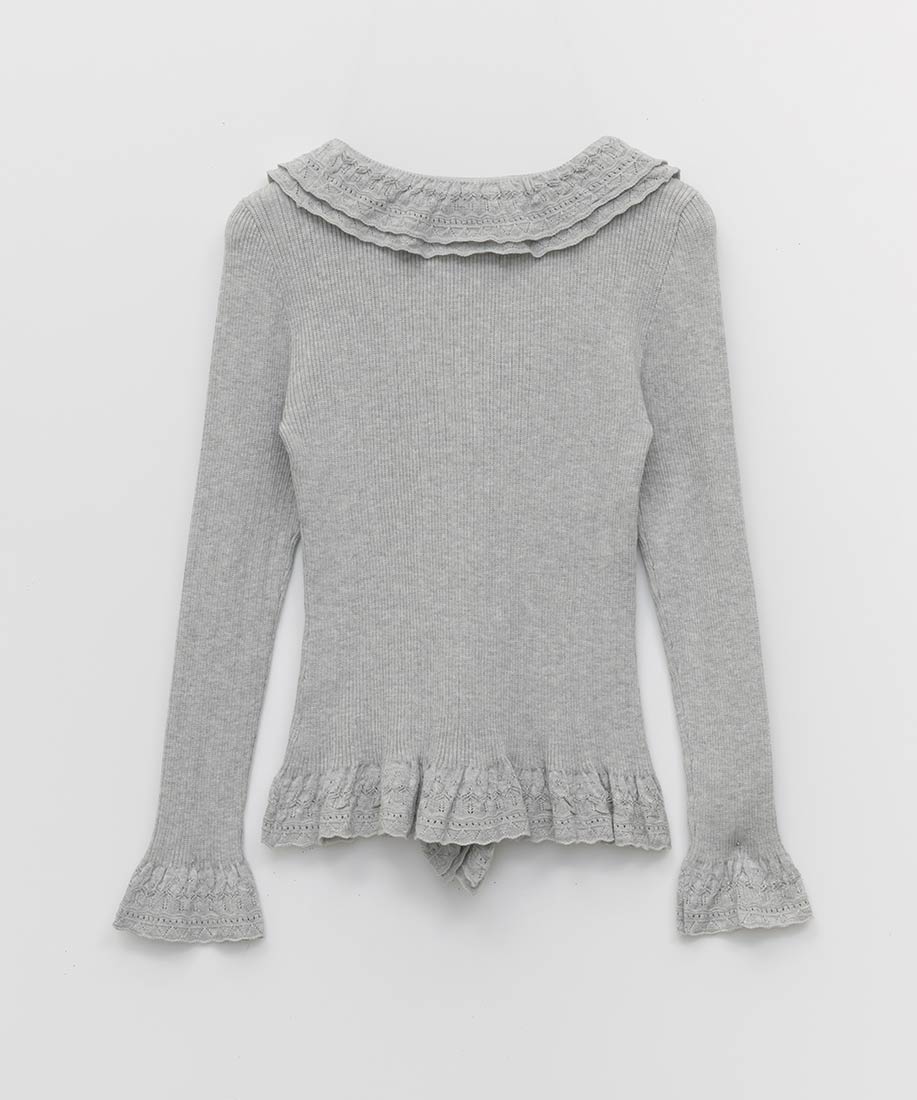 ・ラッフル部分はレース調の編地でフェミニンさをプラス