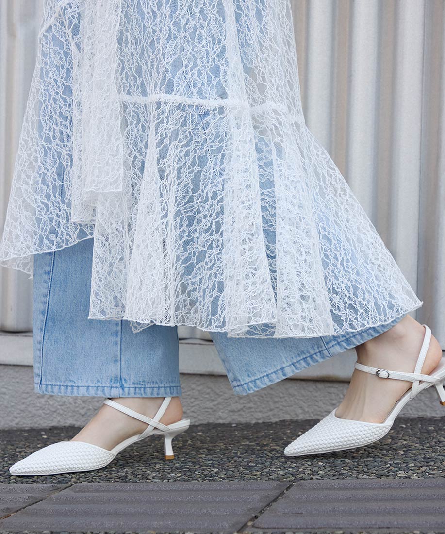 編み込みデザインがシーズンムード高まるアンクルストラップパンプス。