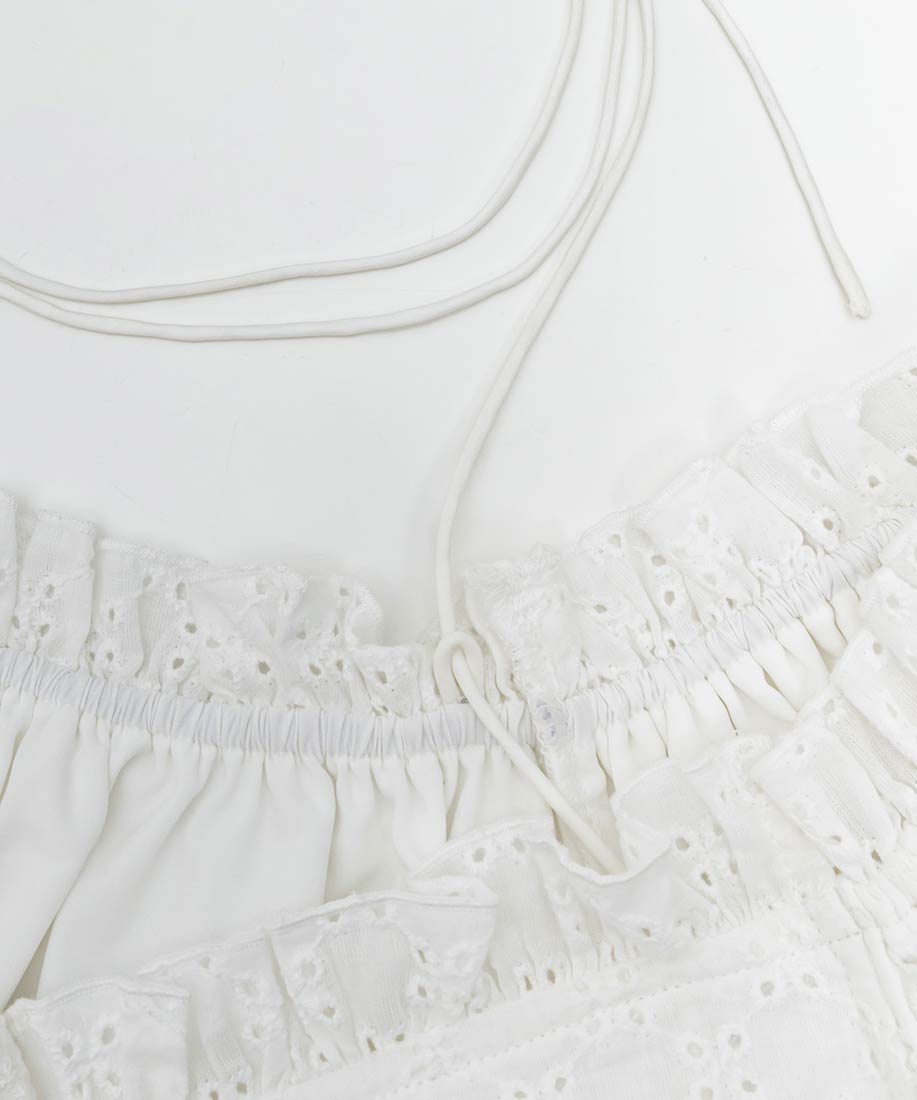 ホワイト⇒(表地)綿100%(裏地)ポリエステル100%インディゴ⇒(表地)ポリエステル70%、レーヨン25%、ポリウレタン5%(裏地)ポリエステル100%
