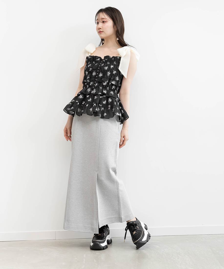 ブラック・クリーム⇒(表地)ポリエステル100%(スリット糸使用)(別布)ポリエステル100%(裏地)ポリエステル95%、ポリウレタン5%ピンク⇒(表地)ポリエステル80%、ナイロン20%(別布)指定外繊維(リヨセル)85%、ポリエステル15%(裏地)ポリエステル95%、ポリウレタン5%