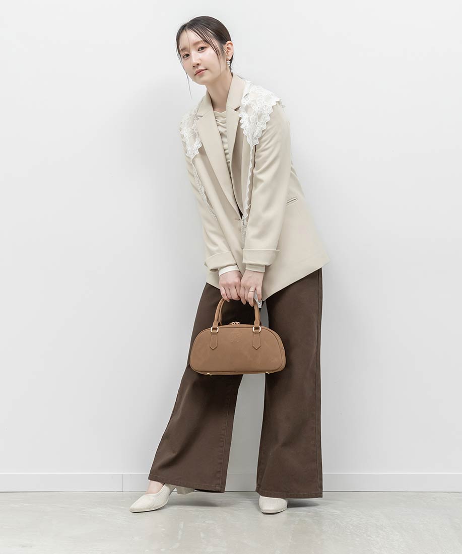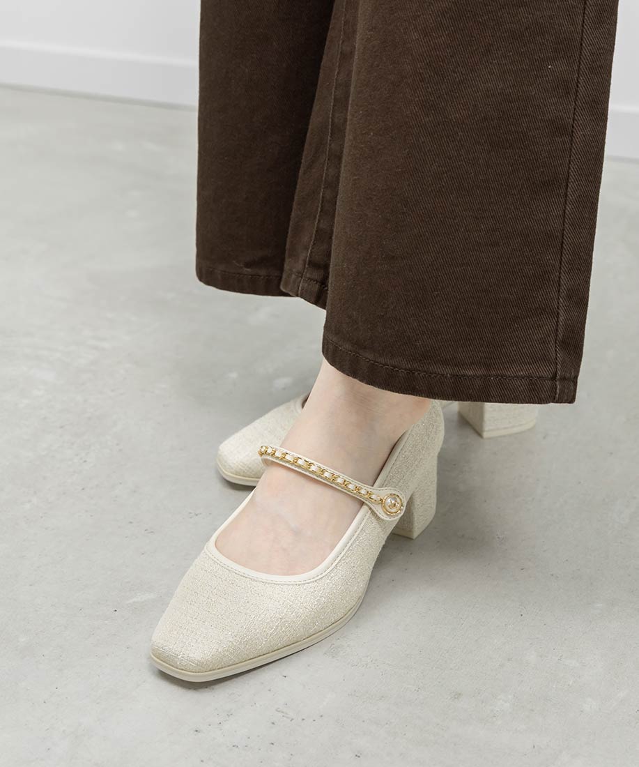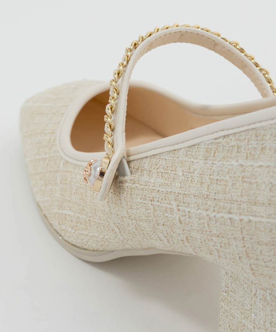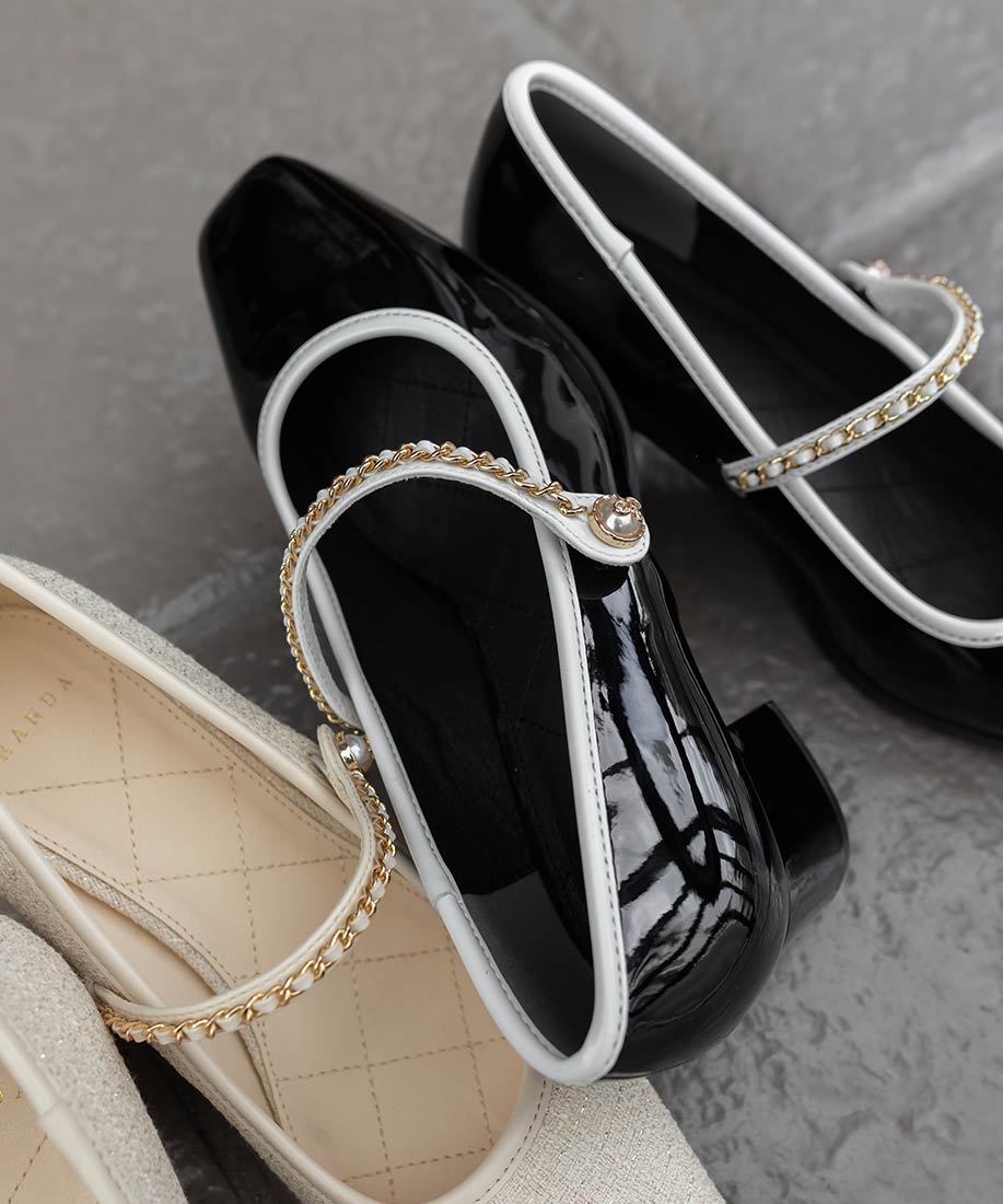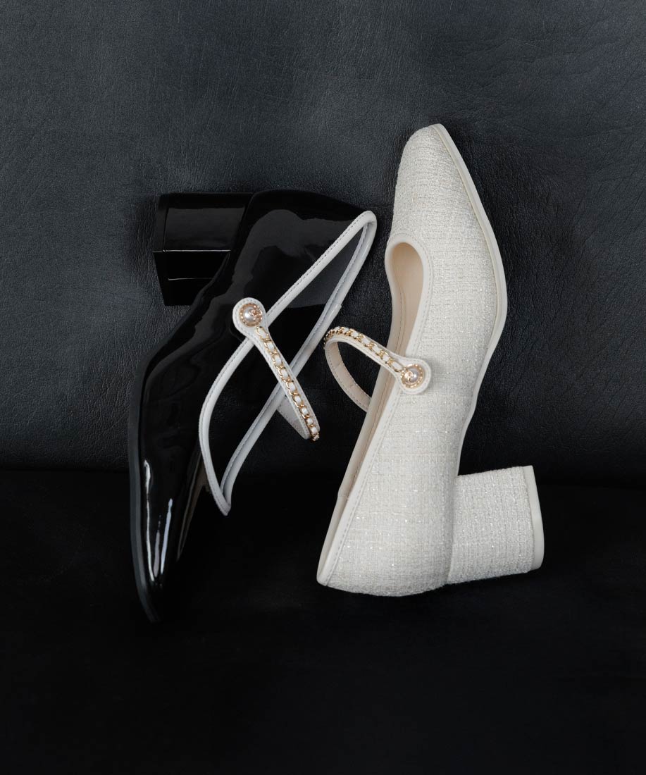 アイボリー⇒ツイード生地、合成皮革(スムース)ブラック⇒合成皮革(エナメル、スムース)