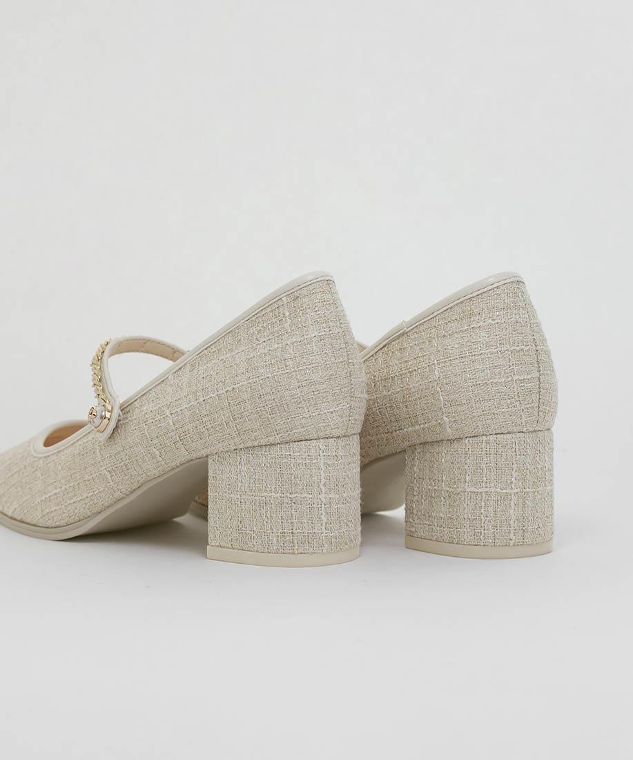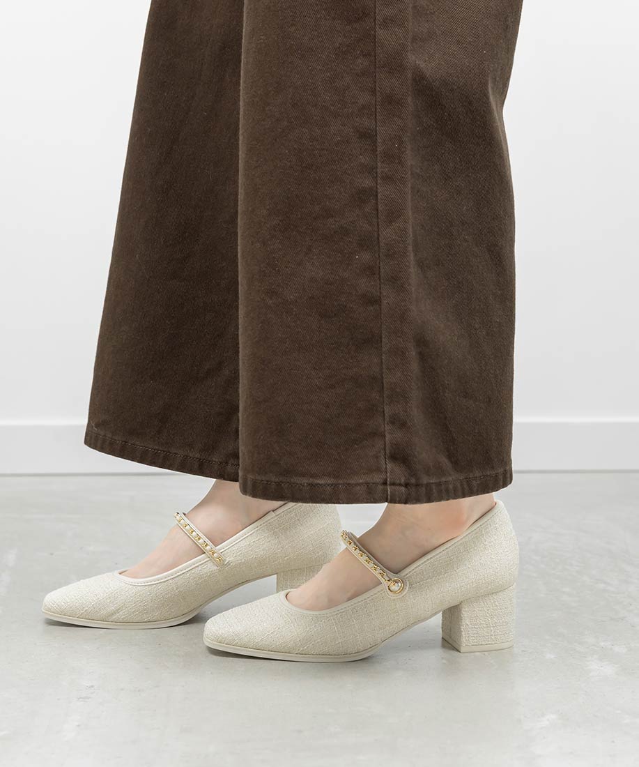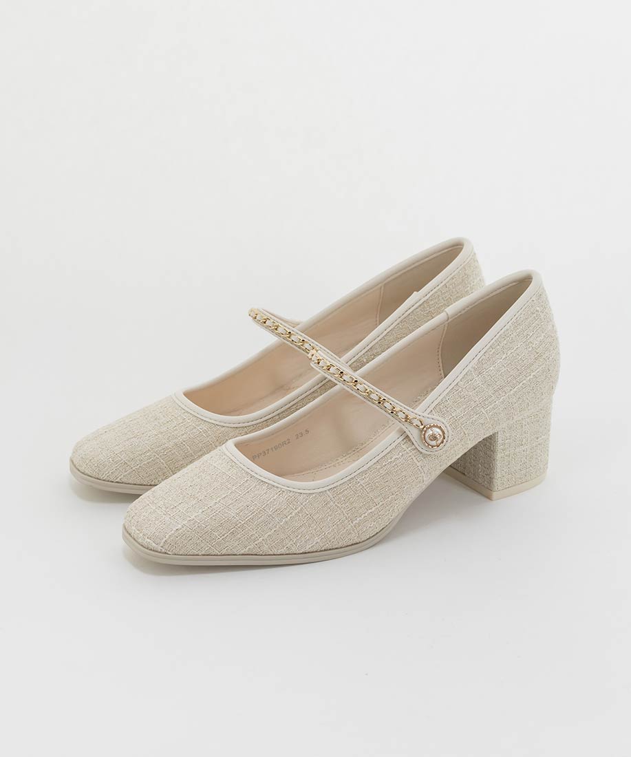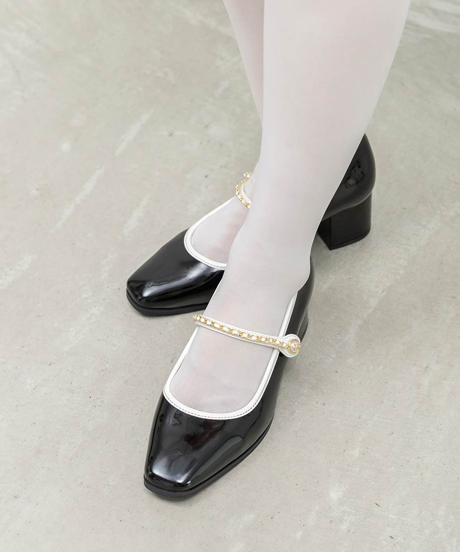アイボリー⇒ツイード生地、合成皮革(スムース)ブラック⇒合成皮革(エナメル、スムース)