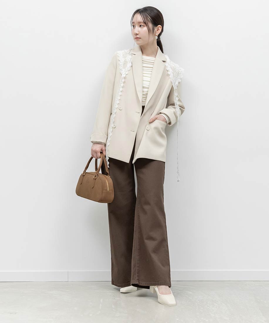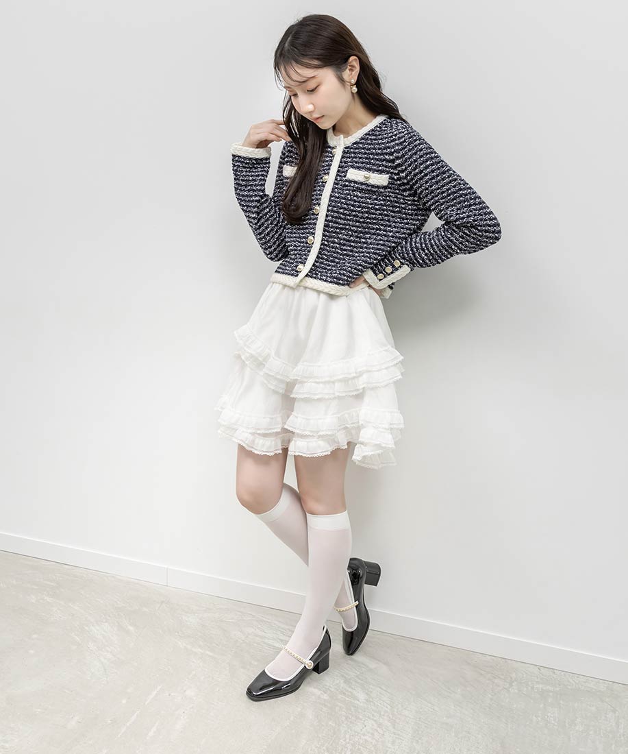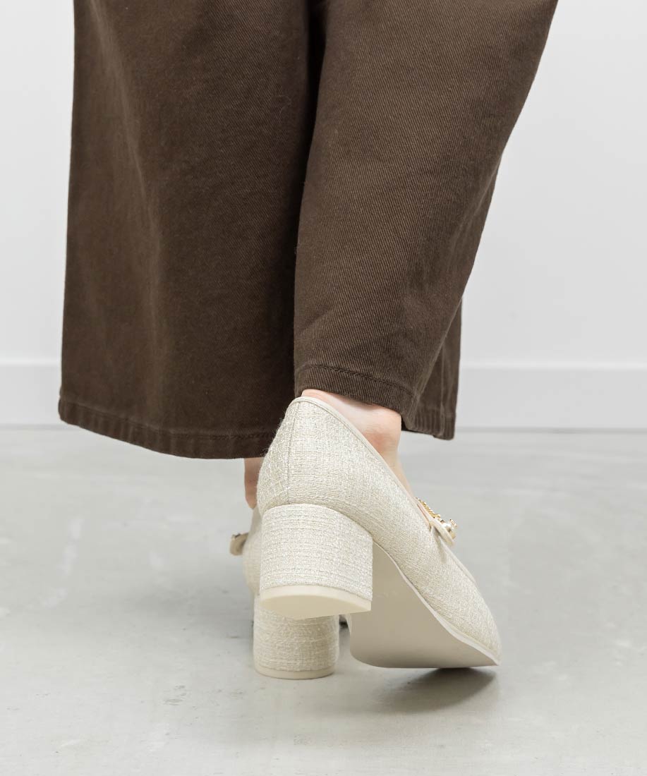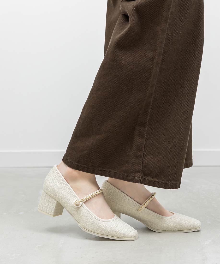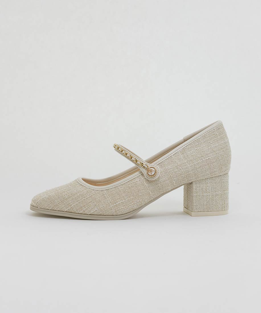 アイボリー⇒ツイード生地、合成皮革(スムース)ブラック⇒合成皮革(エナメル、スムース)