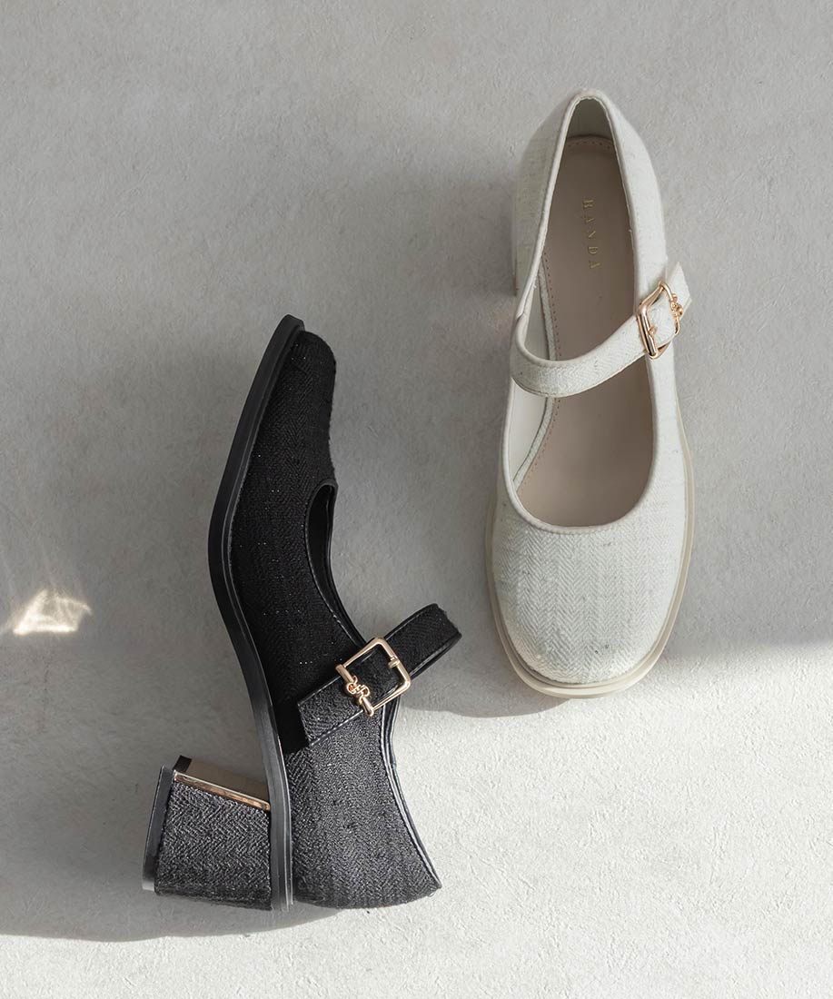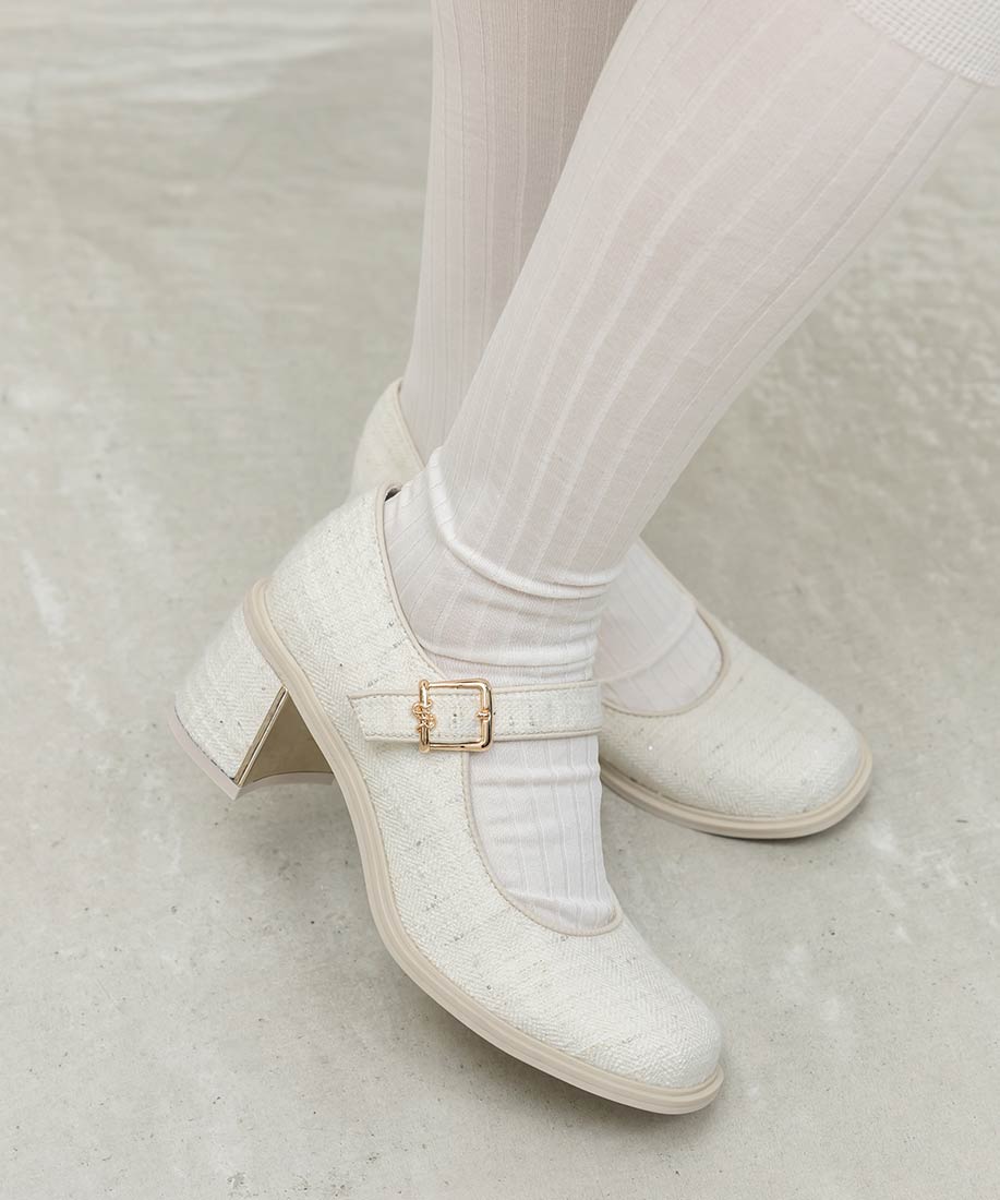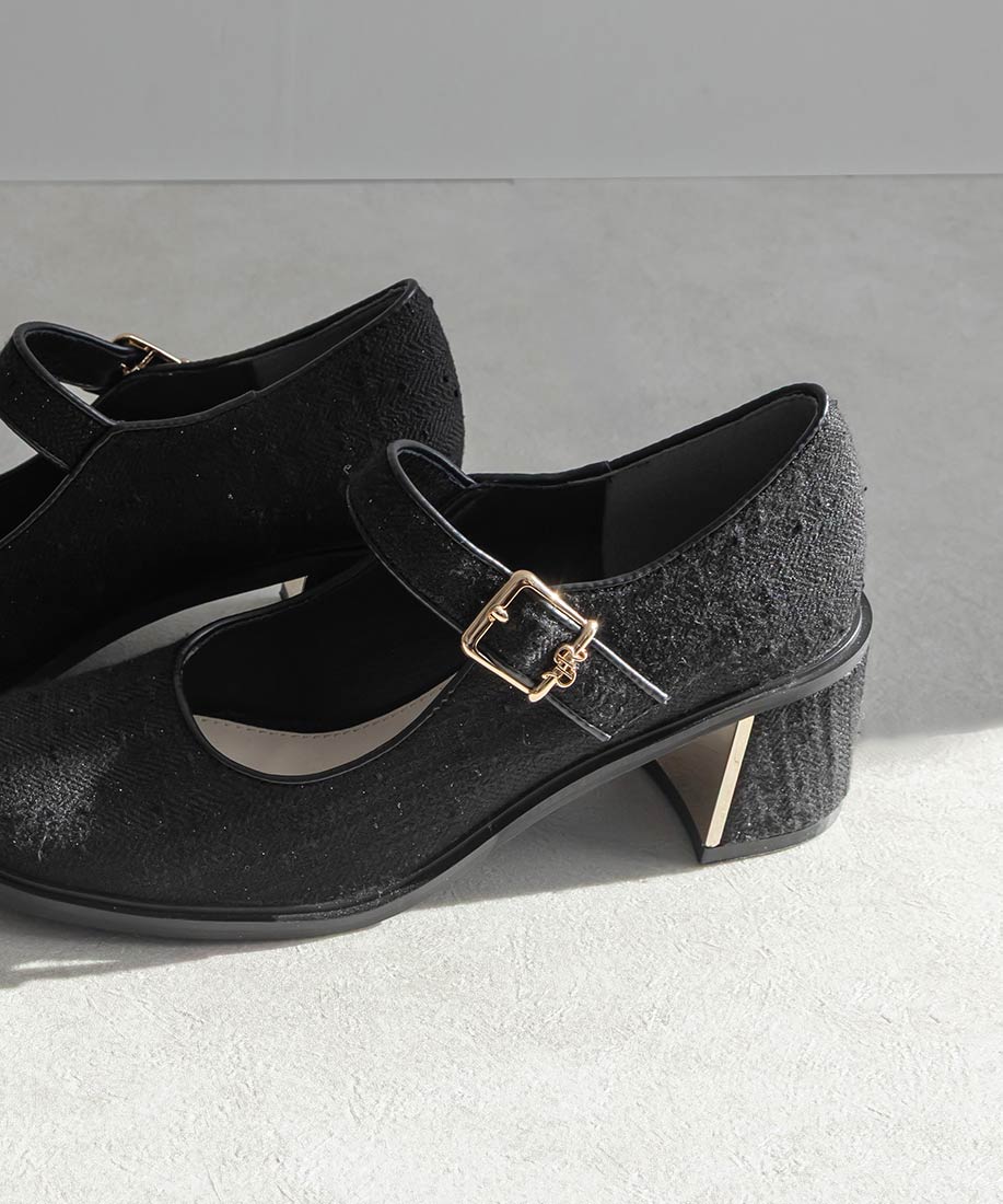 クラシカルムード漂う、ヒールアップタイプのメリージェーンパンプス。
