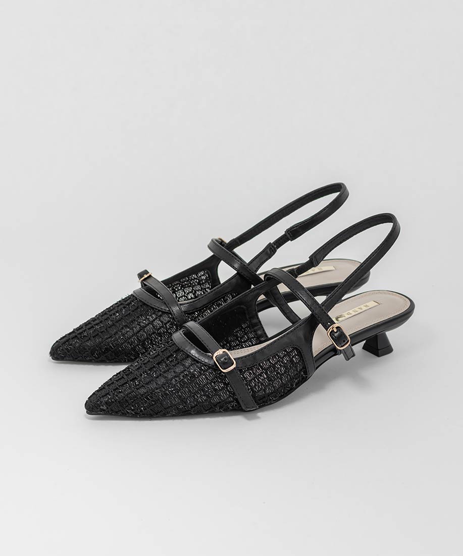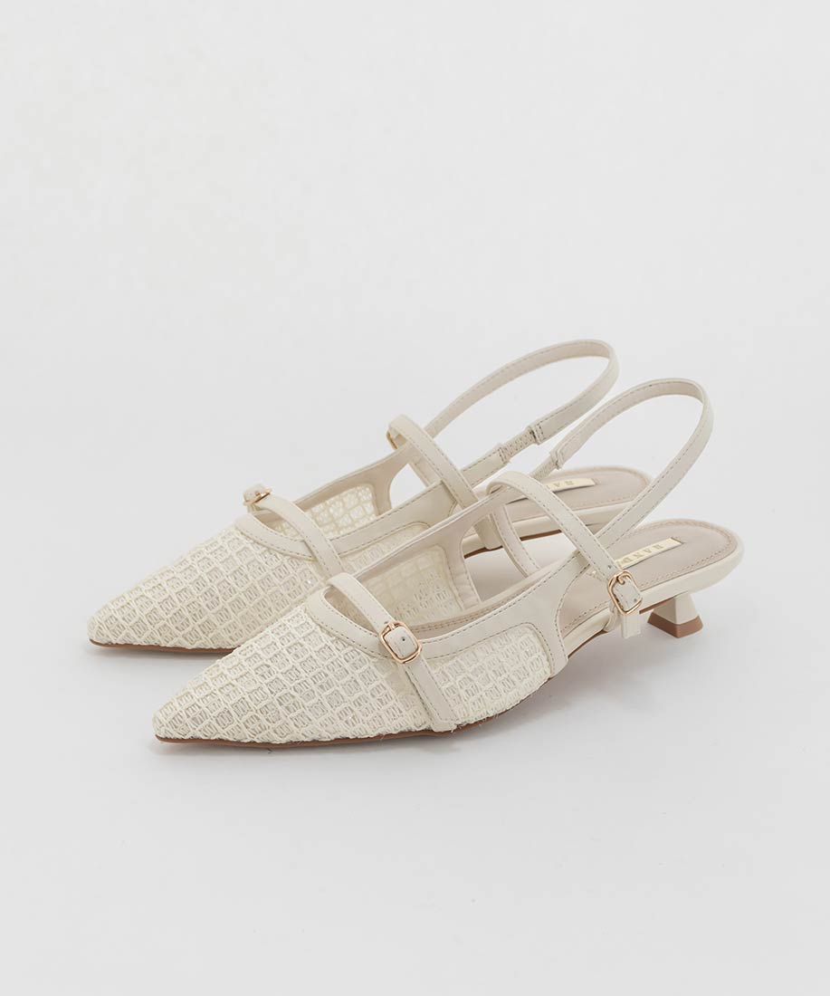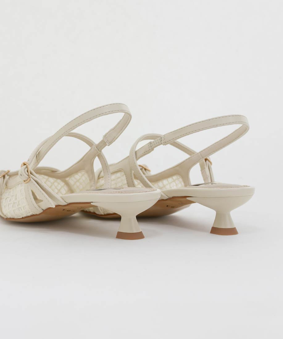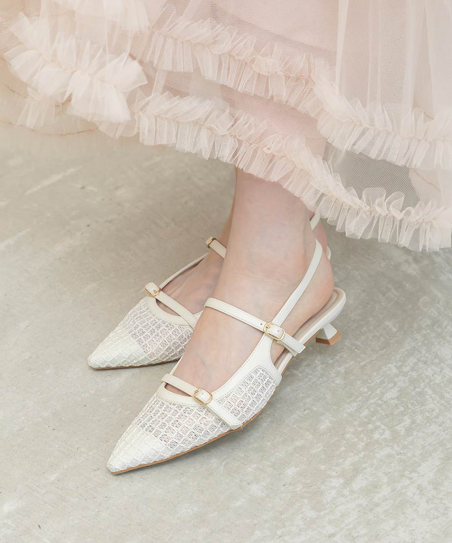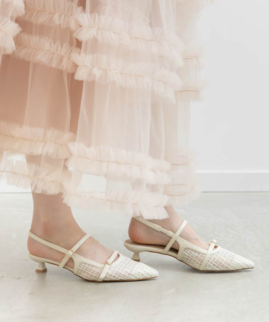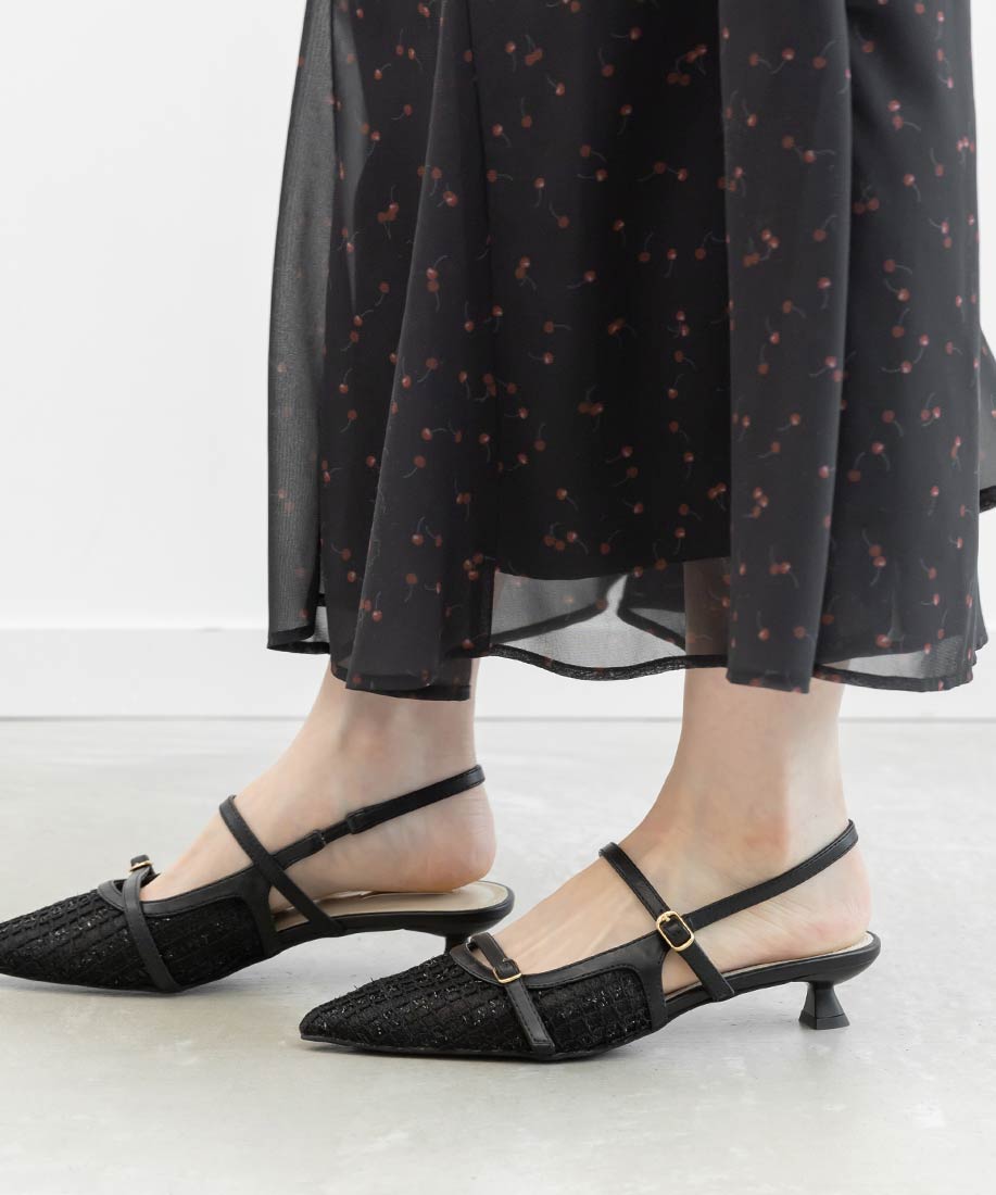 程よい透け感のシアーデザインが足元に絶妙な抜け感をプラスしてくれるバックストラップパンプス。