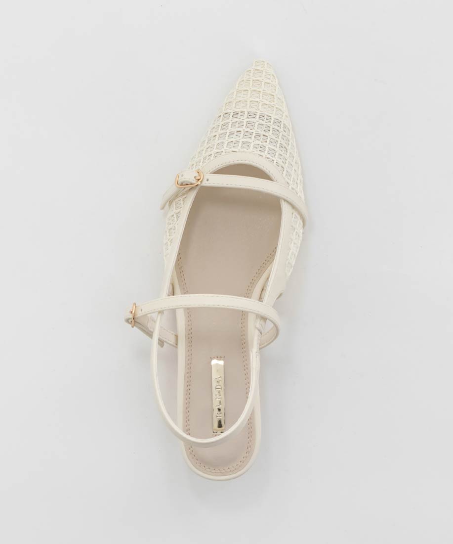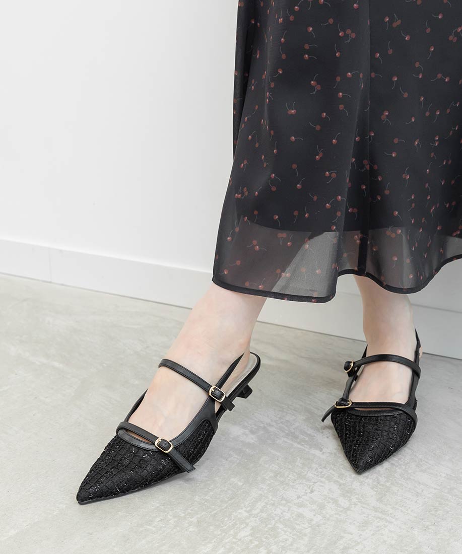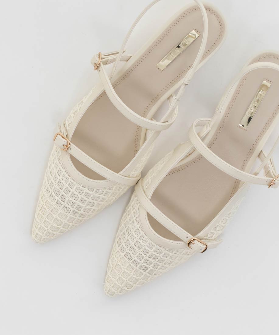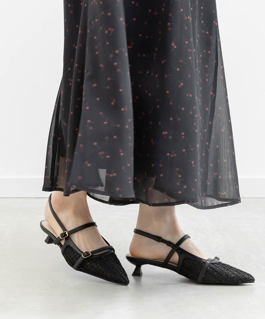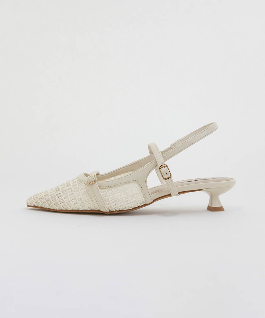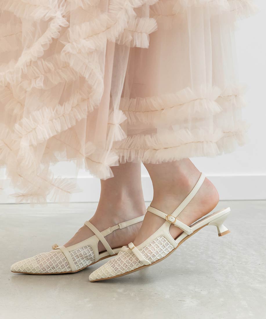 程よい透け感のシアーデザインが足元に絶妙な抜け感をプラスしてくれるバックストラップパンプス。