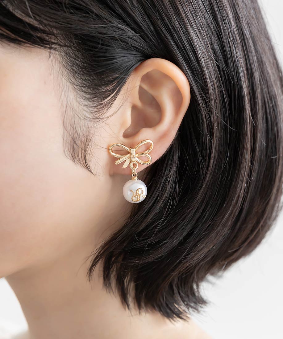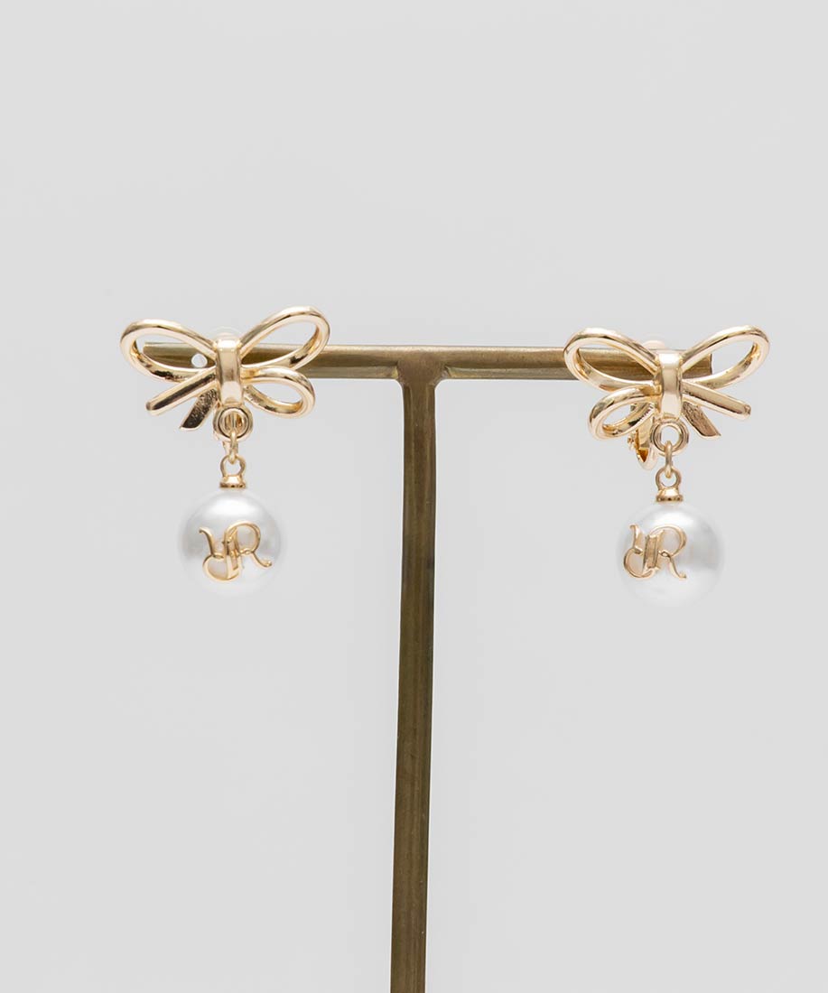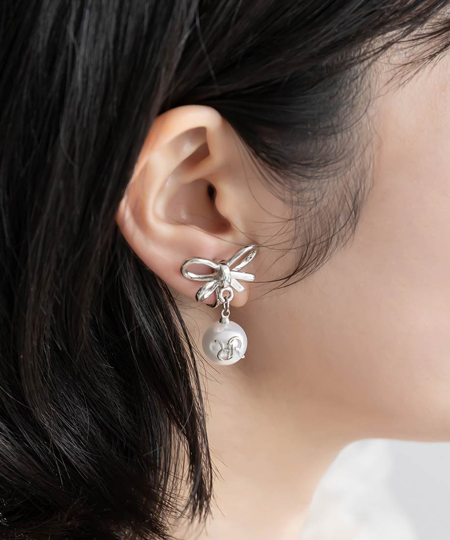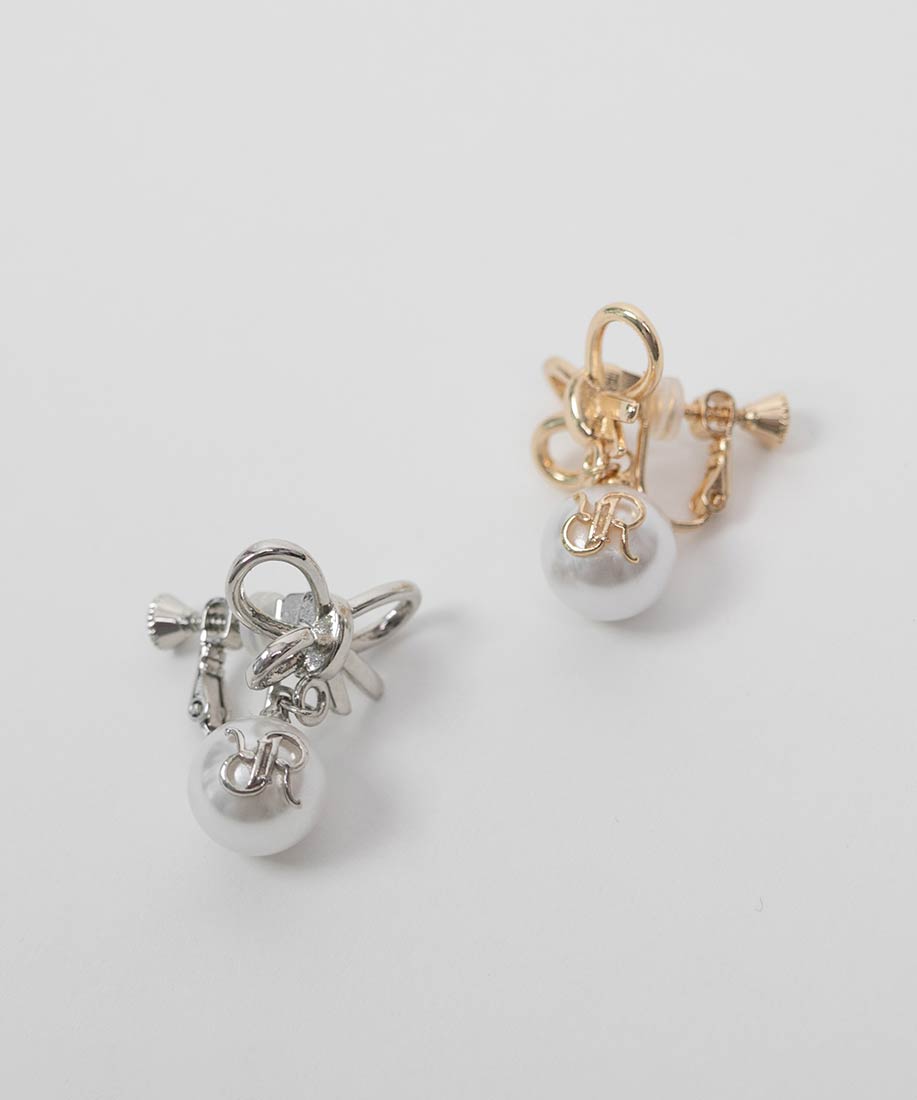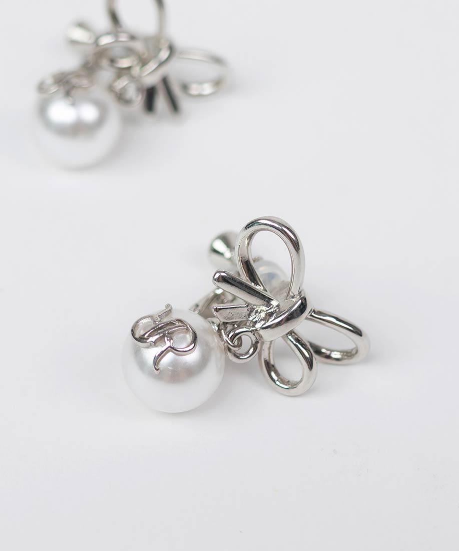 華奢なリボンデザインとパールがポイントのイヤリング。