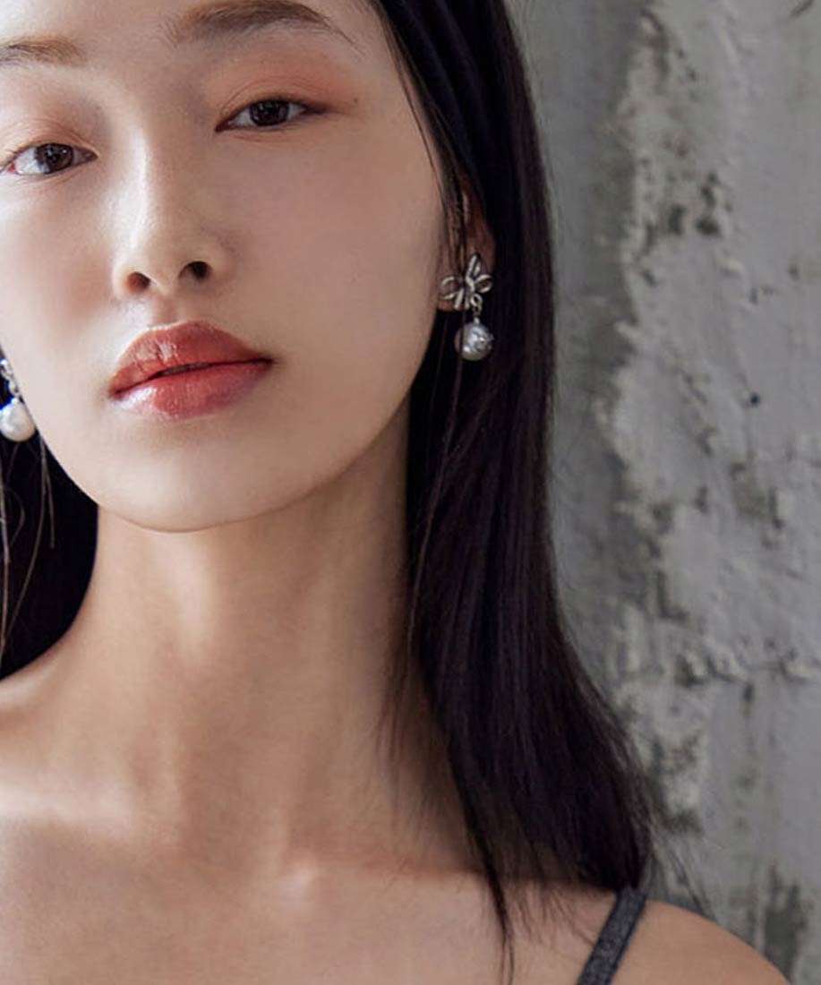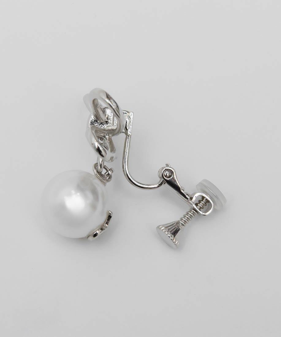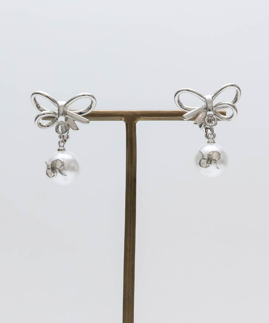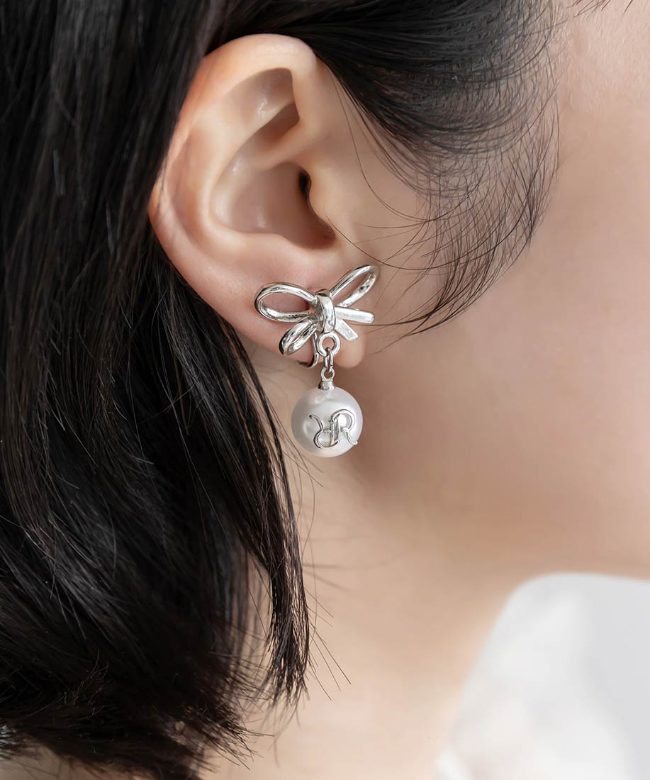 華奢なリボンデザインとパールがポイントのイヤリング。
