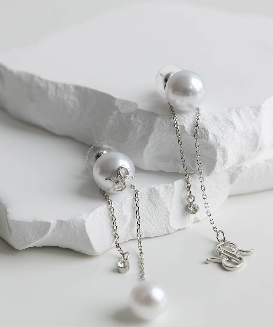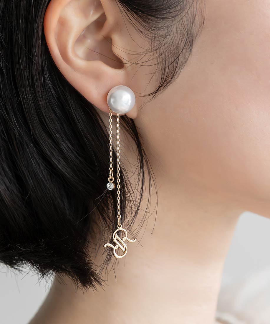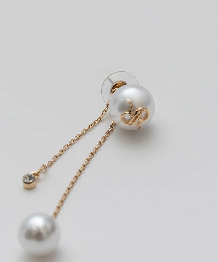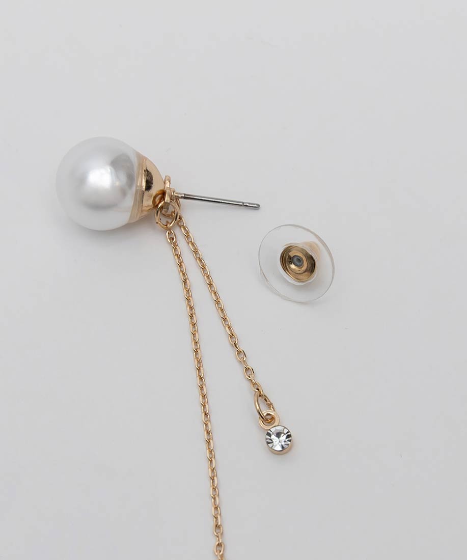 華奢なチェーンが女性らしいアシンメトリーピアス。