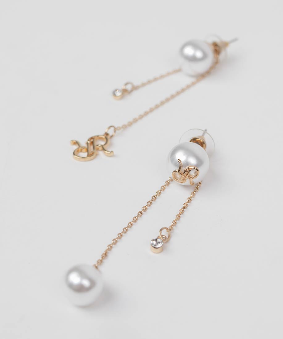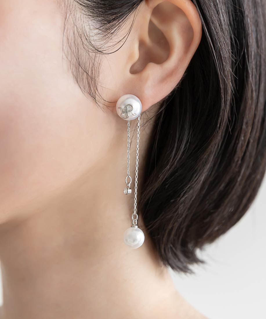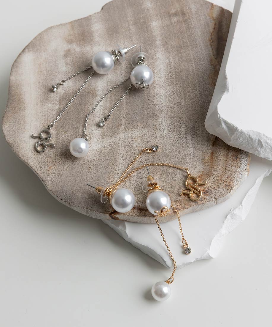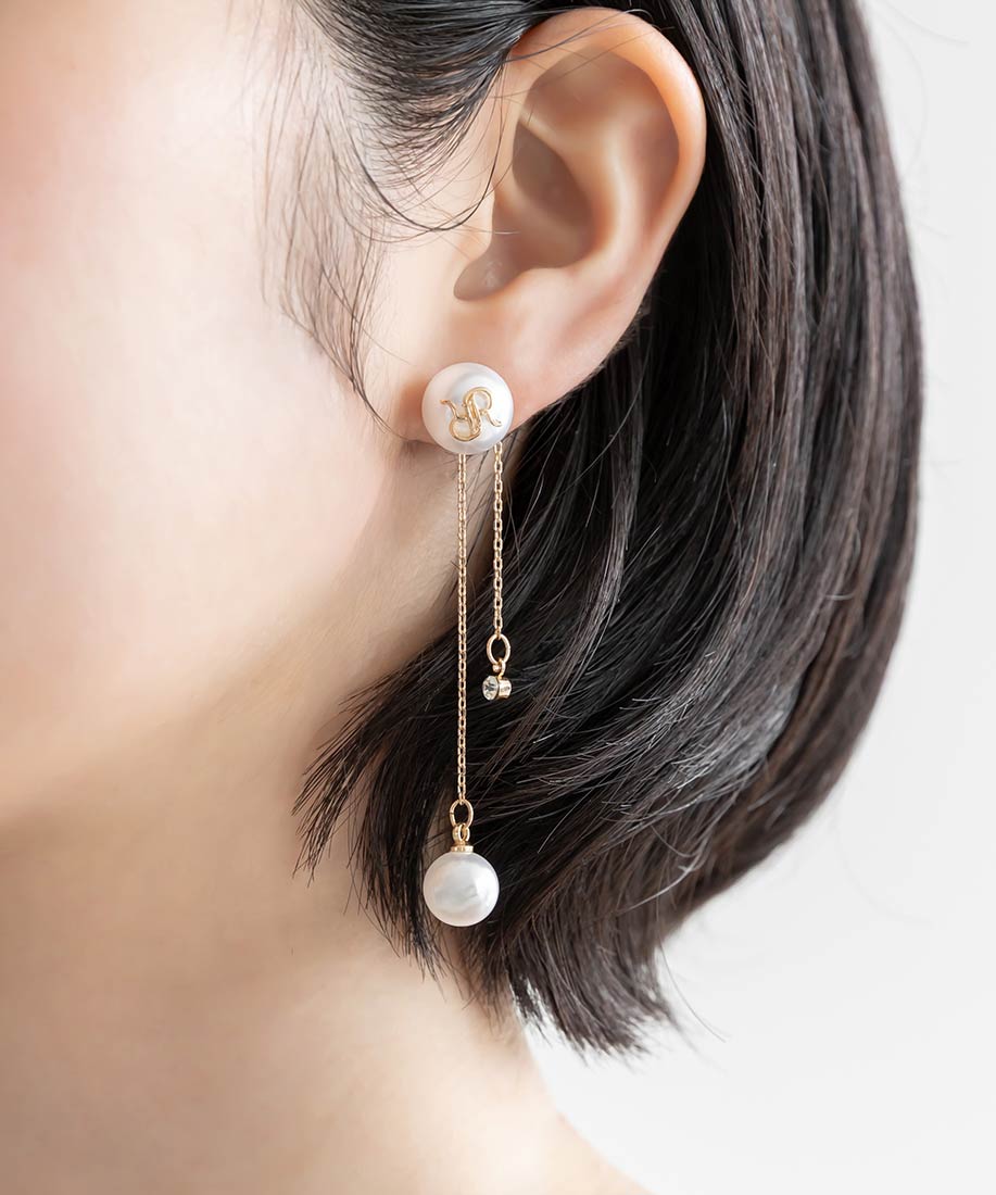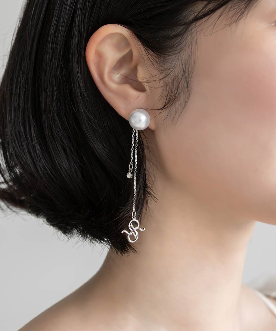 華奢なチェーンが女性らしいアシンメトリーピアス。