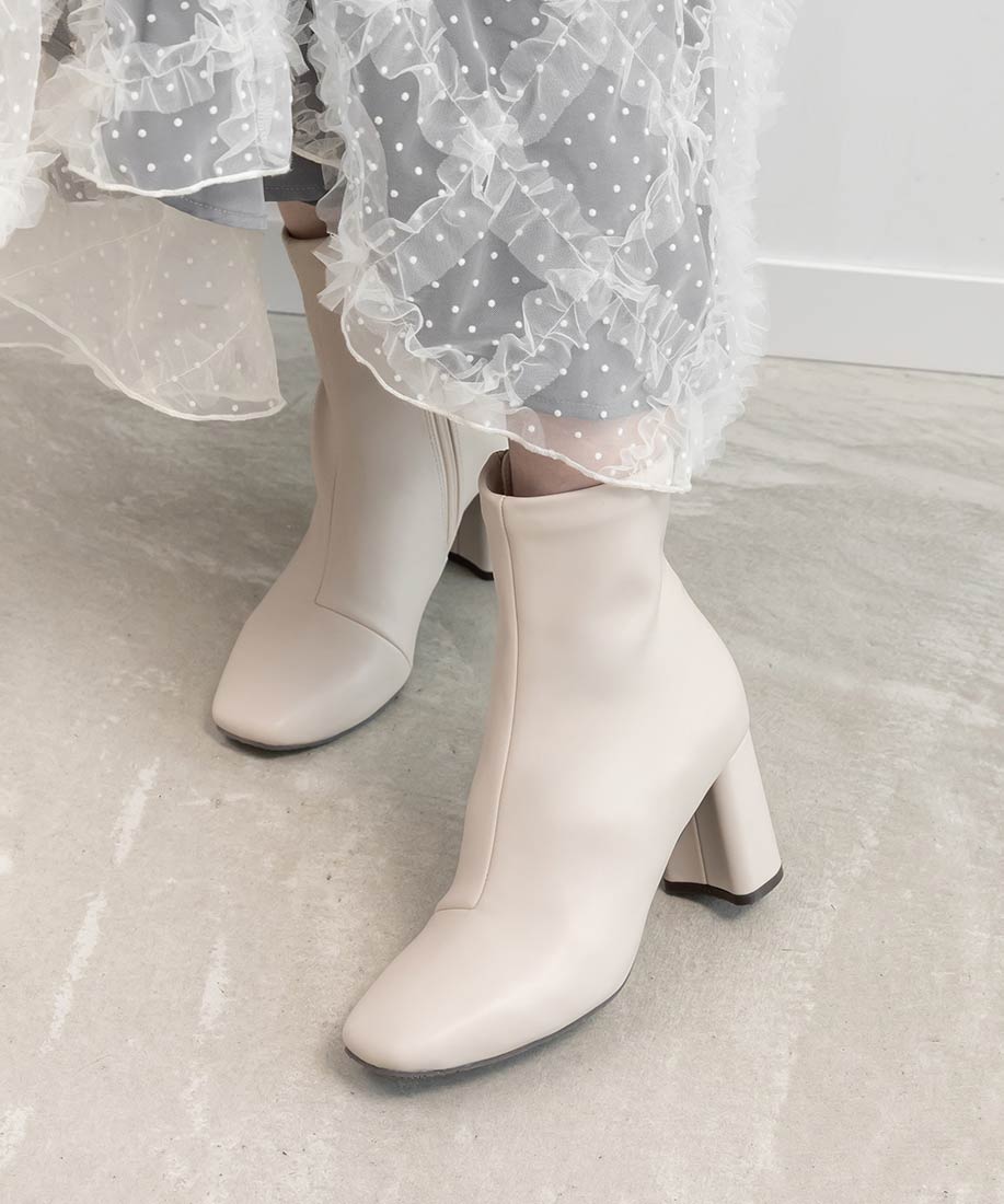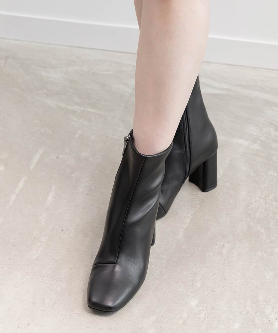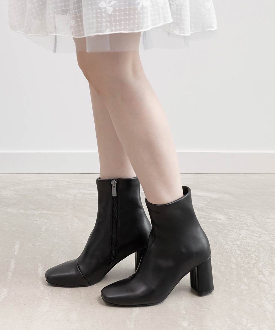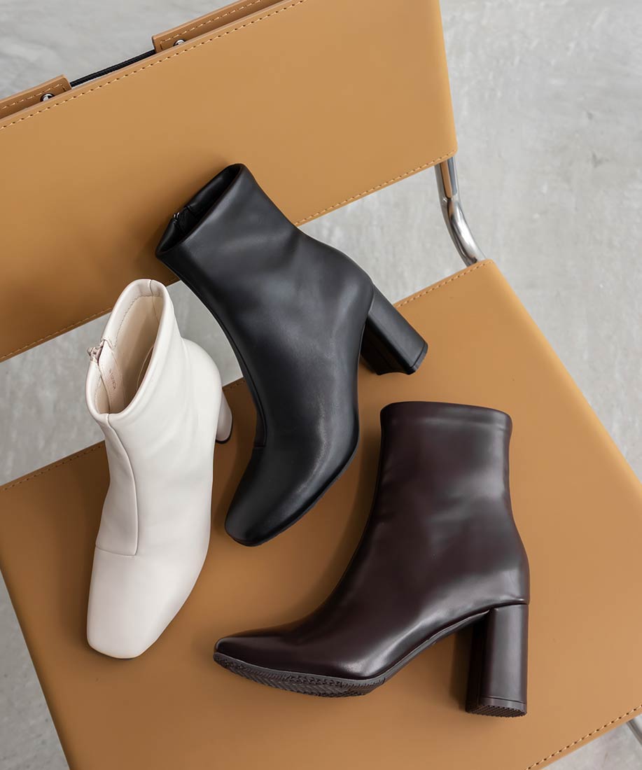 女性らしい綺麗なシルエットが特徴のショートブーツ。