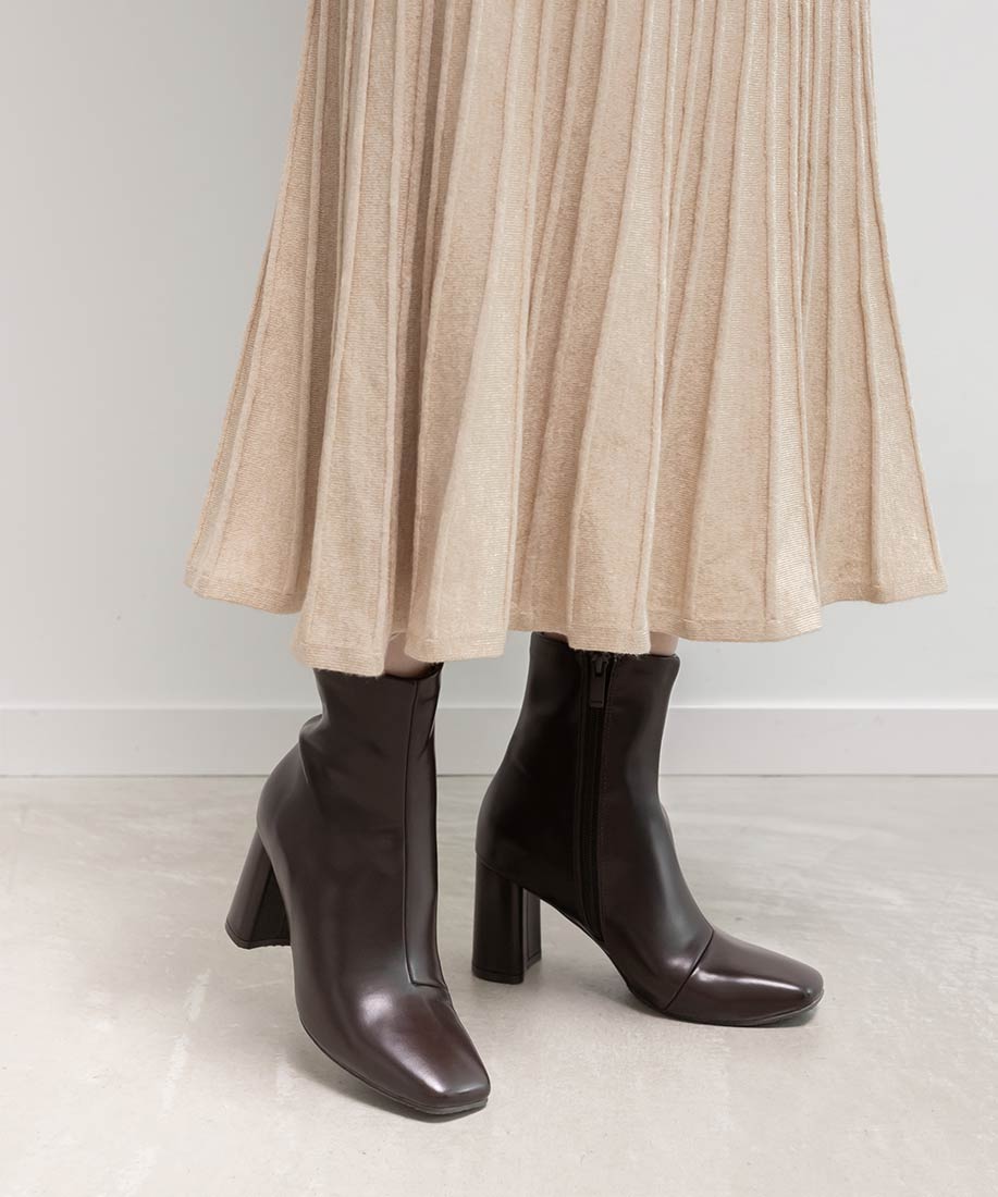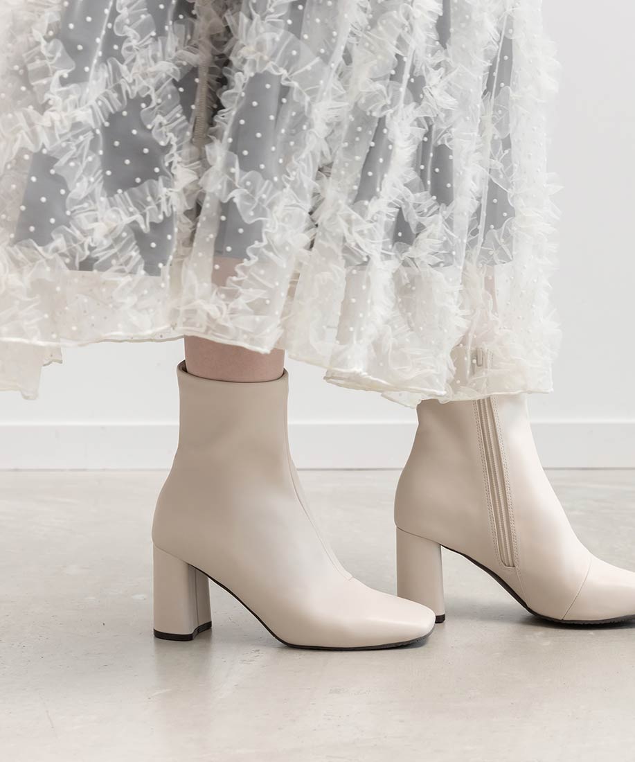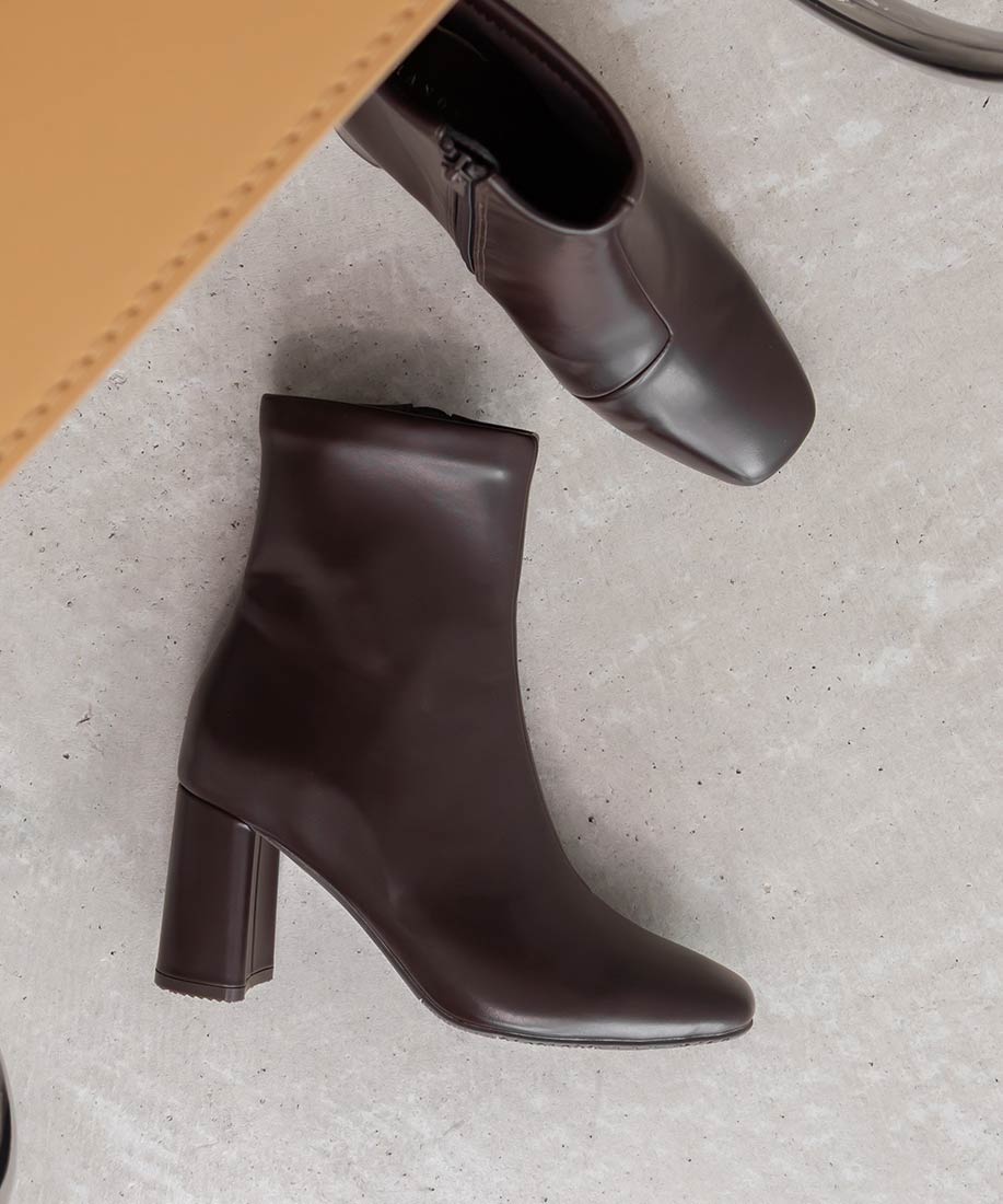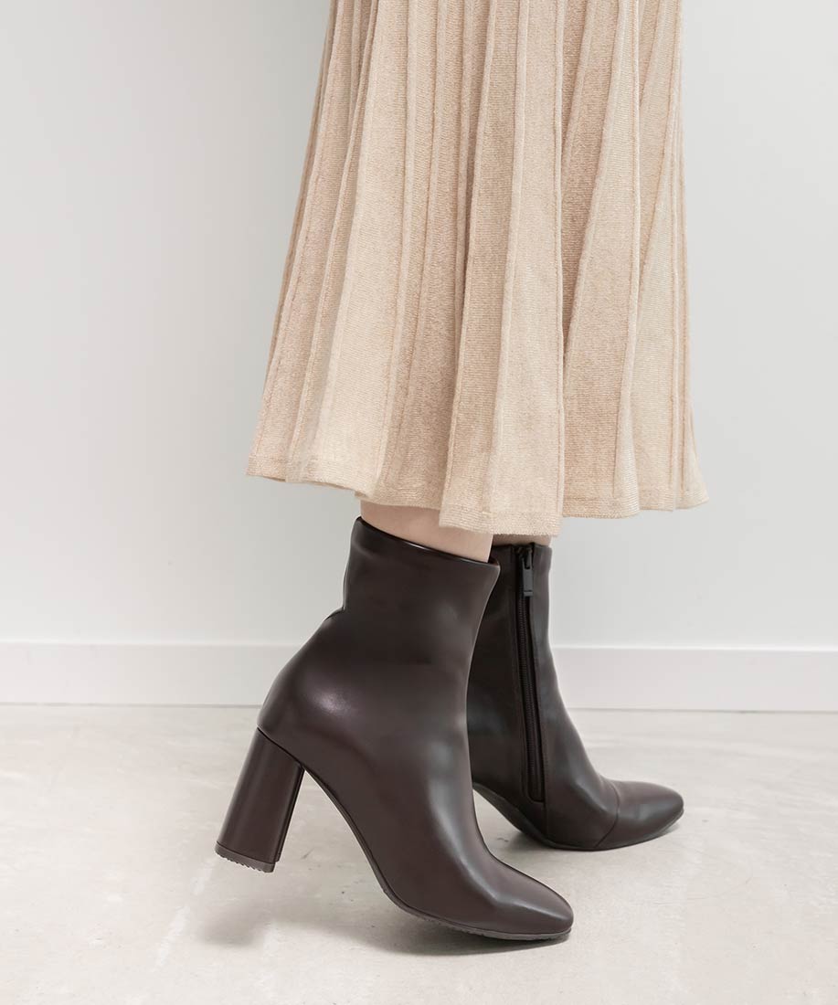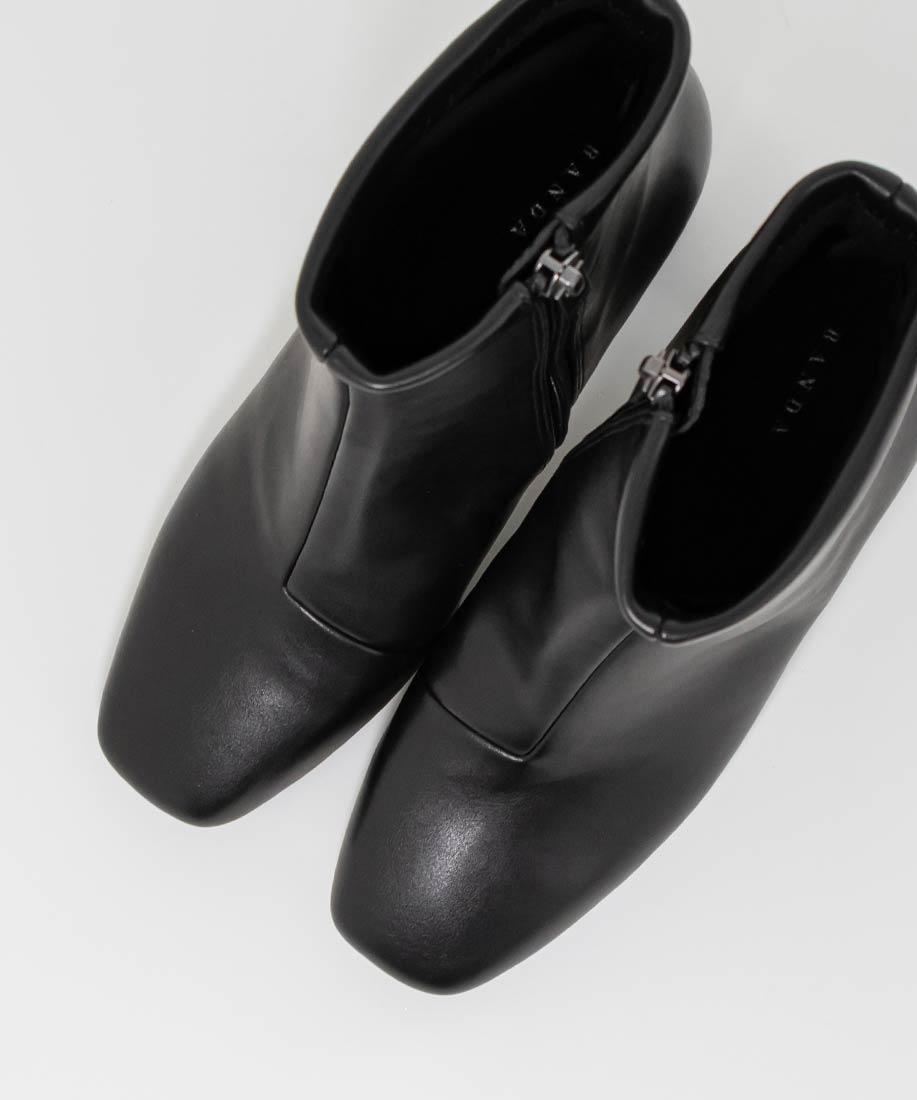 女性らしい綺麗なシルエットが特徴のショートブーツ。
