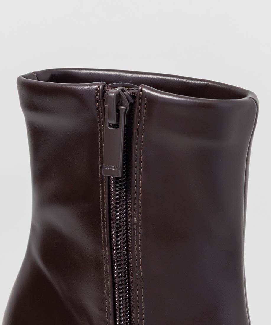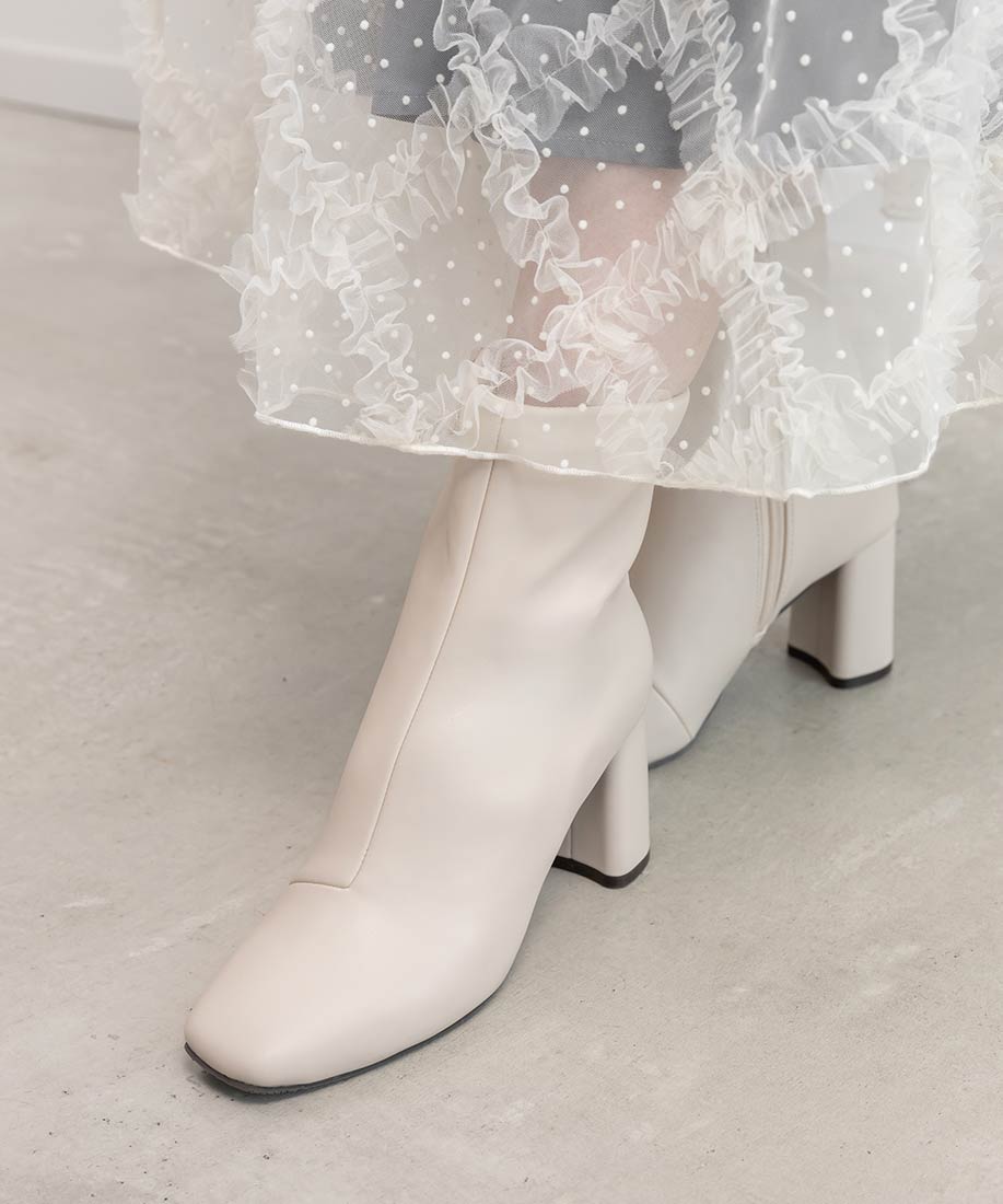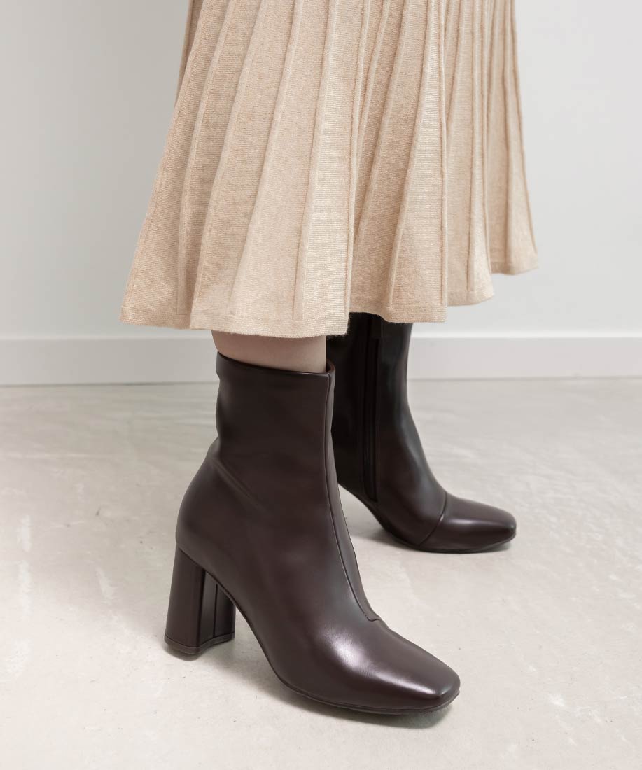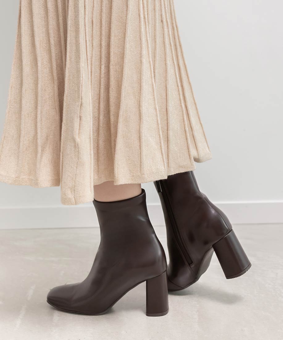 女性らしい綺麗なシルエットが特徴のショートブーツ。