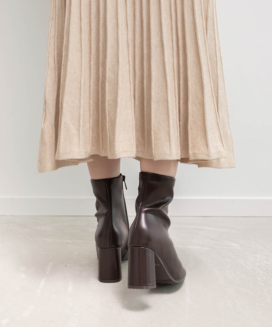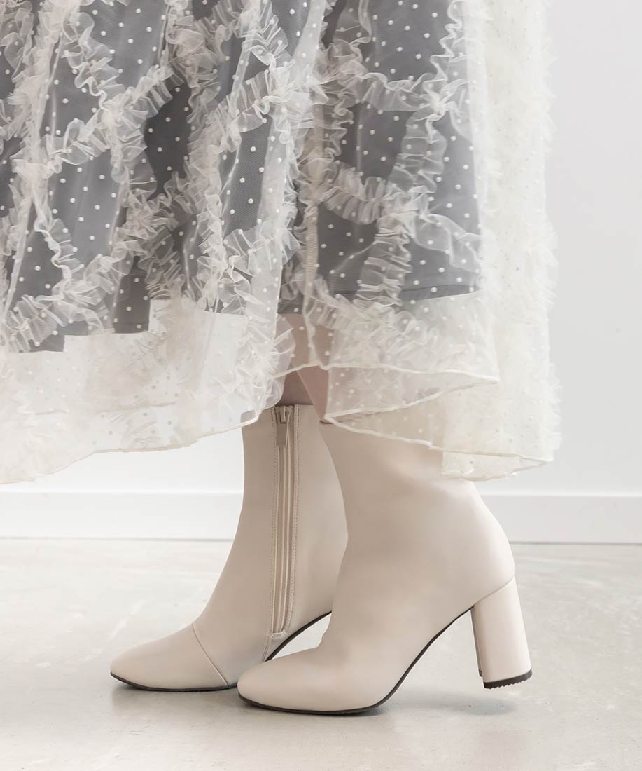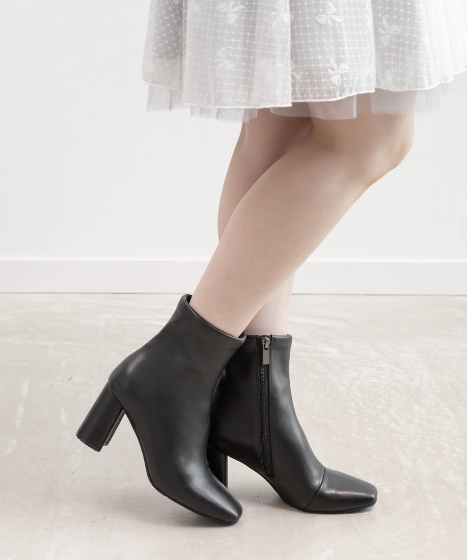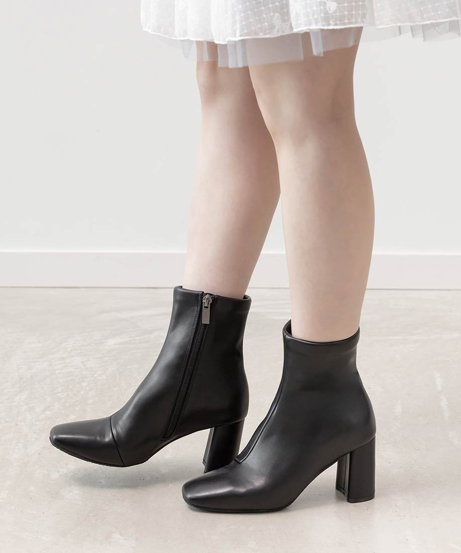 晴雨兼用 ベーシックラウンドスクエアショートブーツ