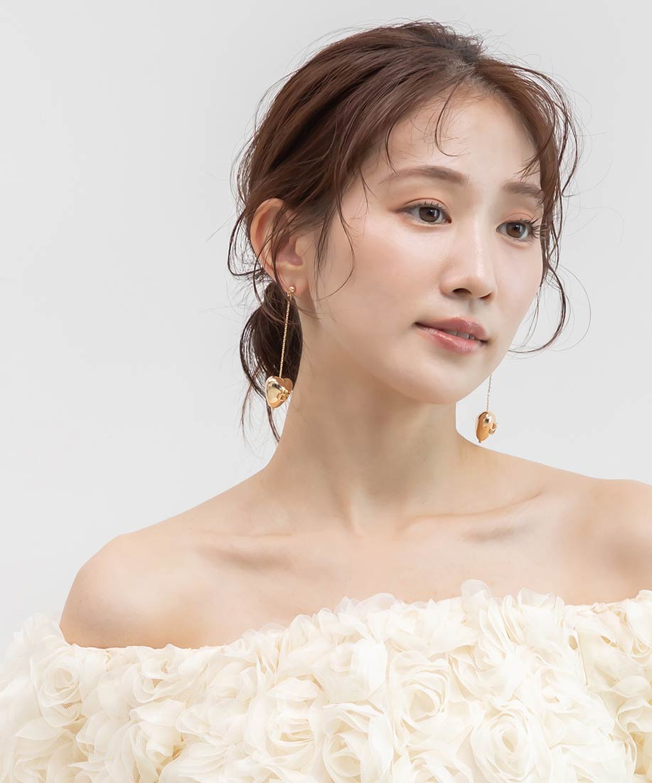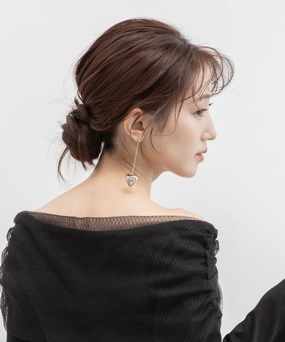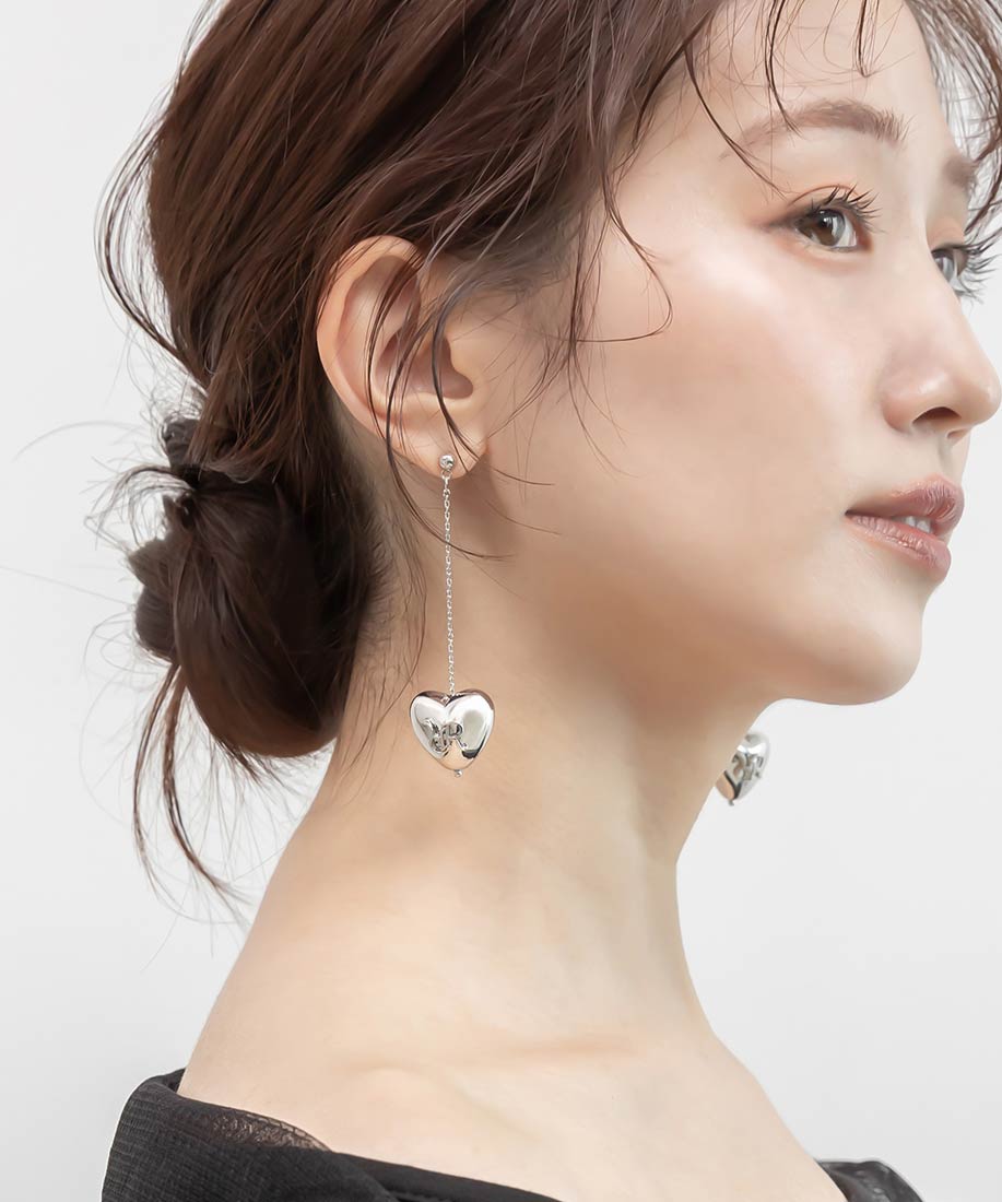 さりげなく顔周りを華やかに演出してくれるハートピアス。