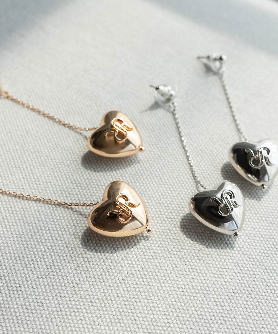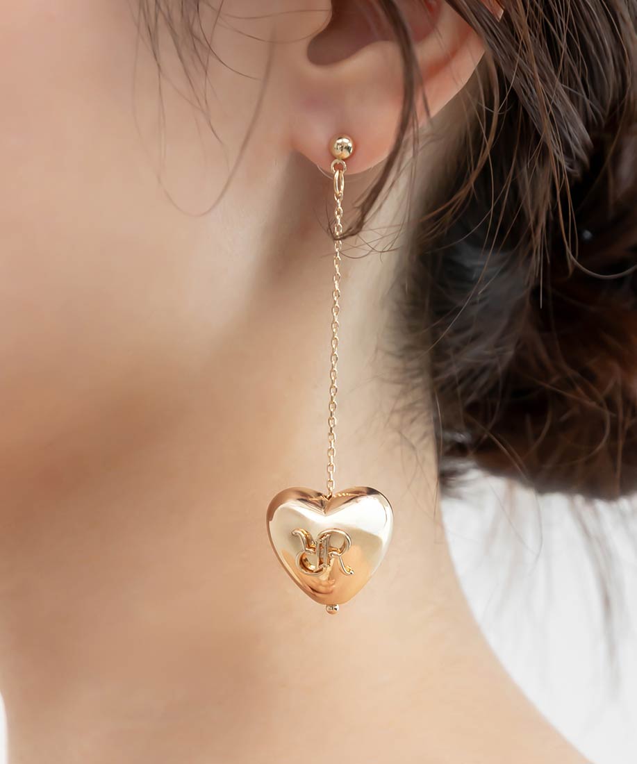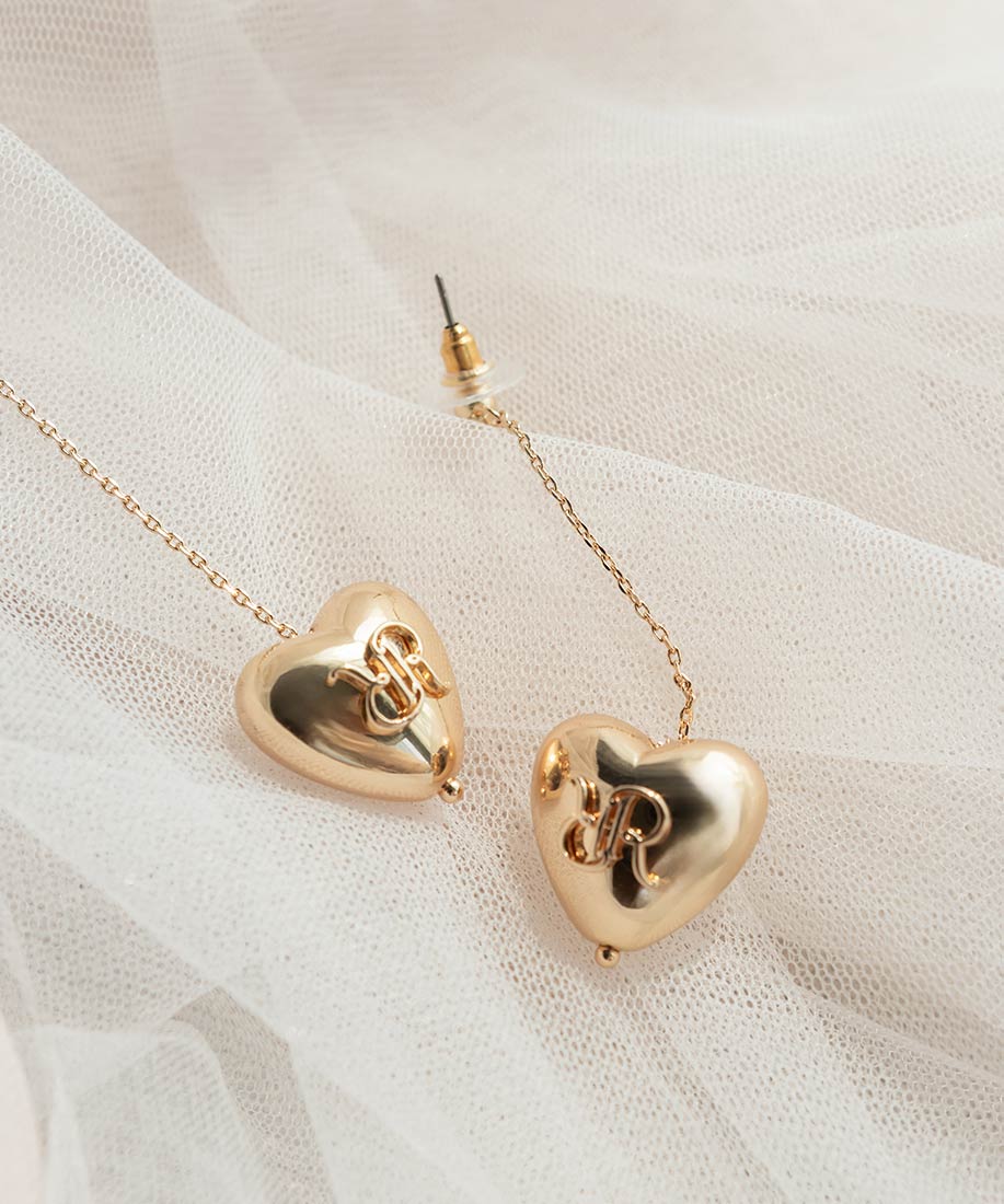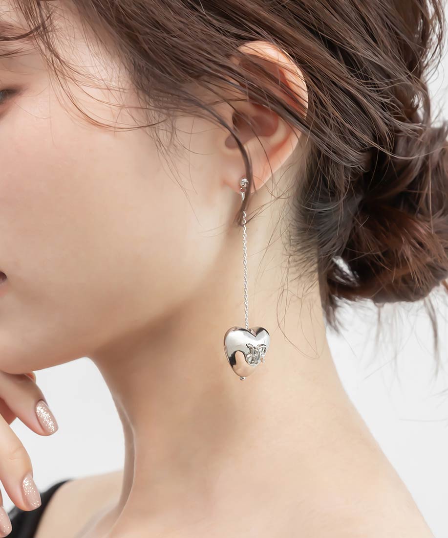 さりげなく顔周りを華やかに演出してくれるハートピアス。