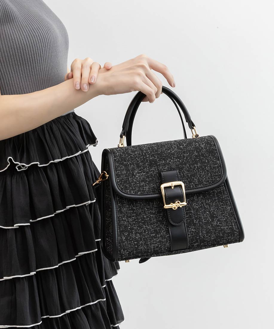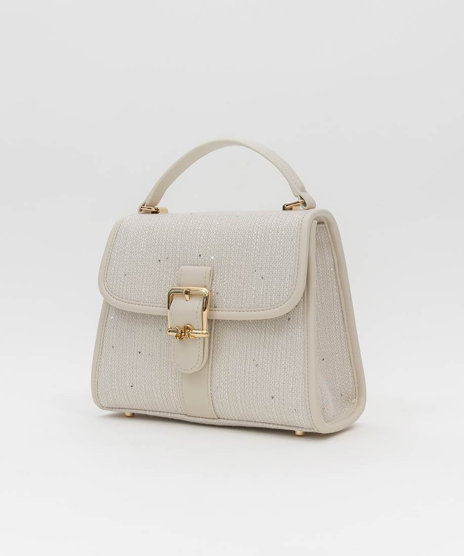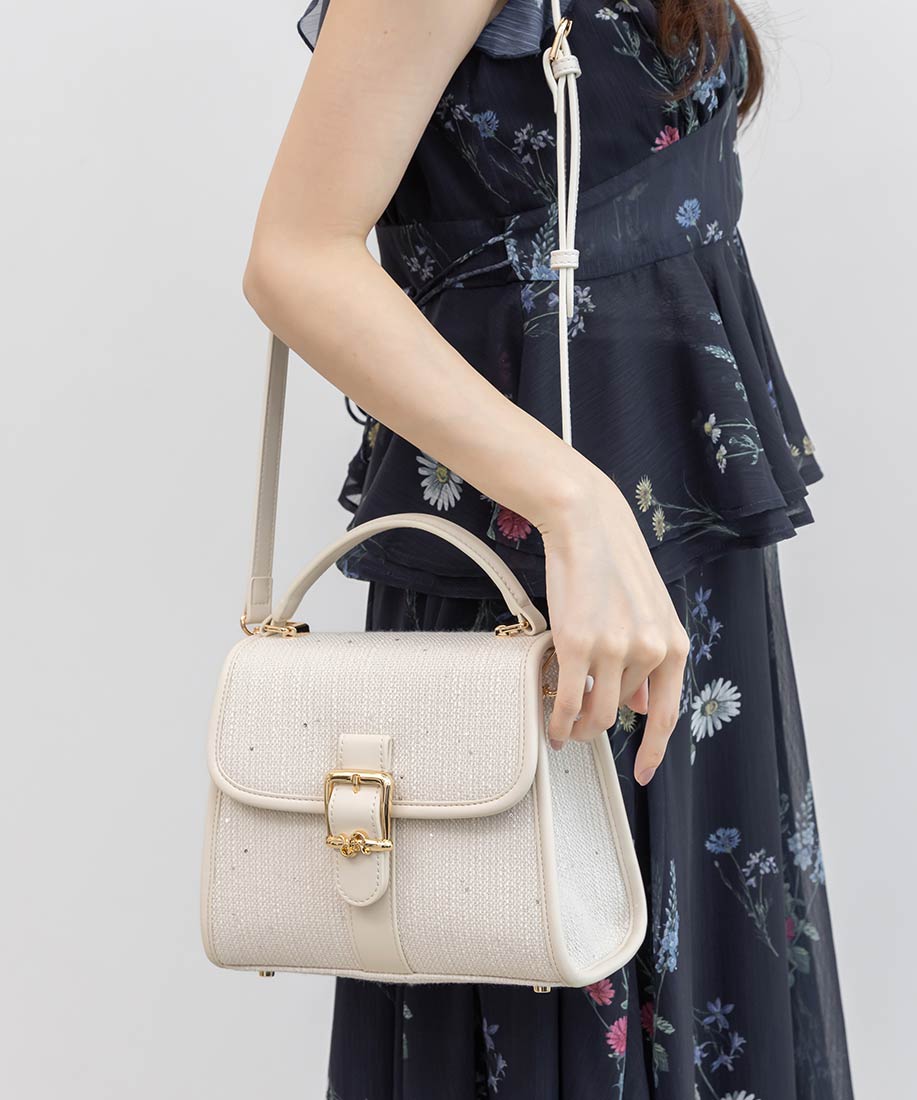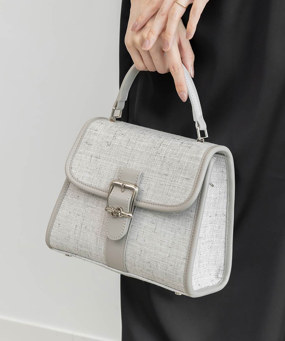 上品なモノグラムバックルがポイントのハンドバッグ。