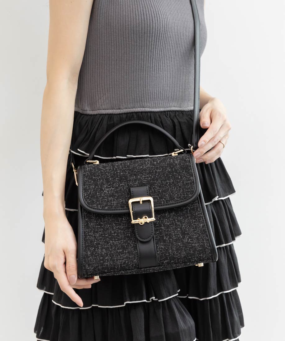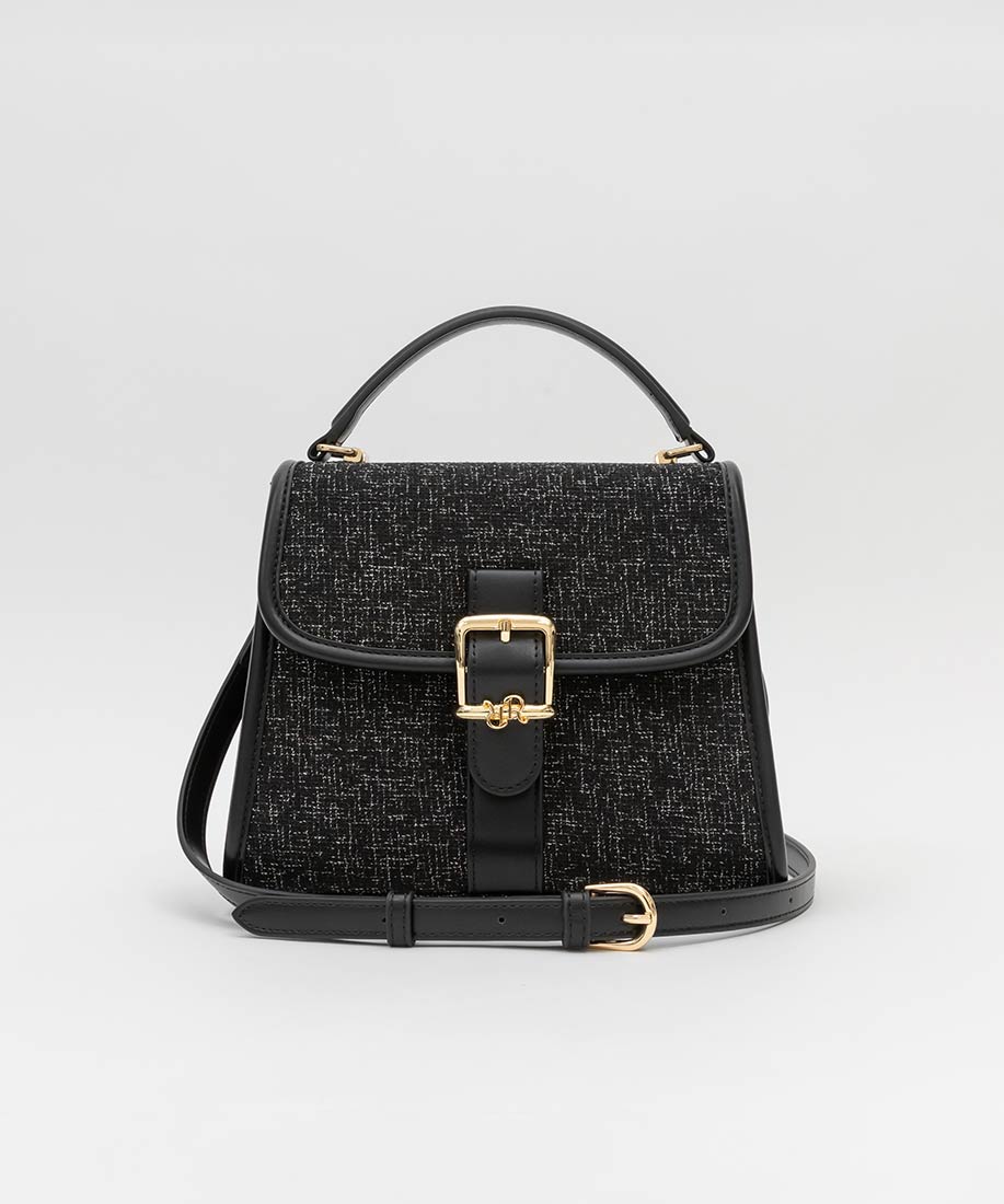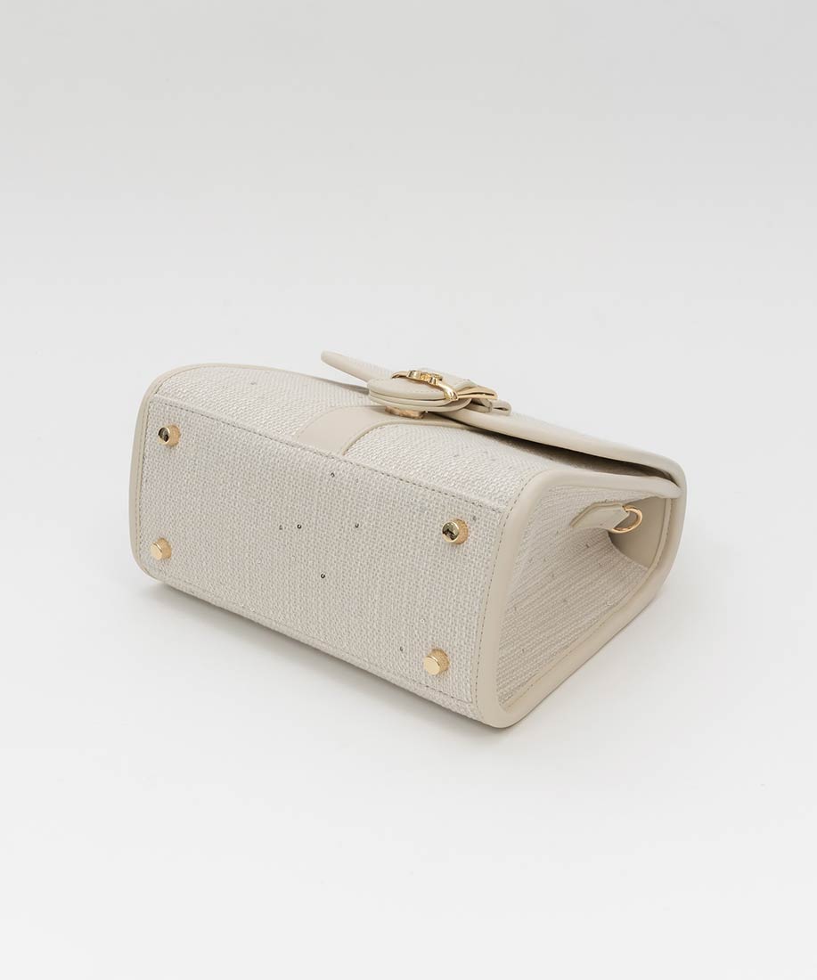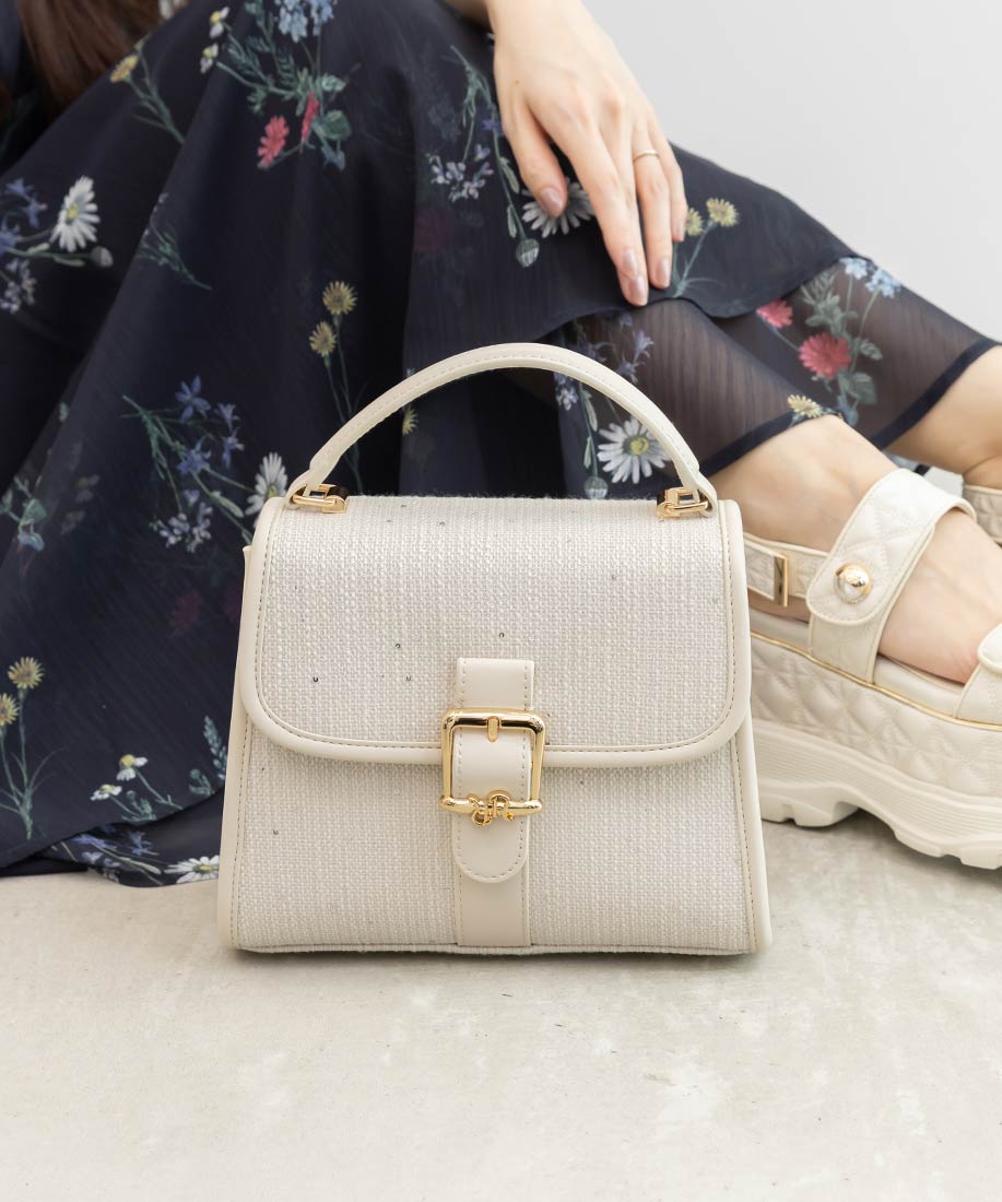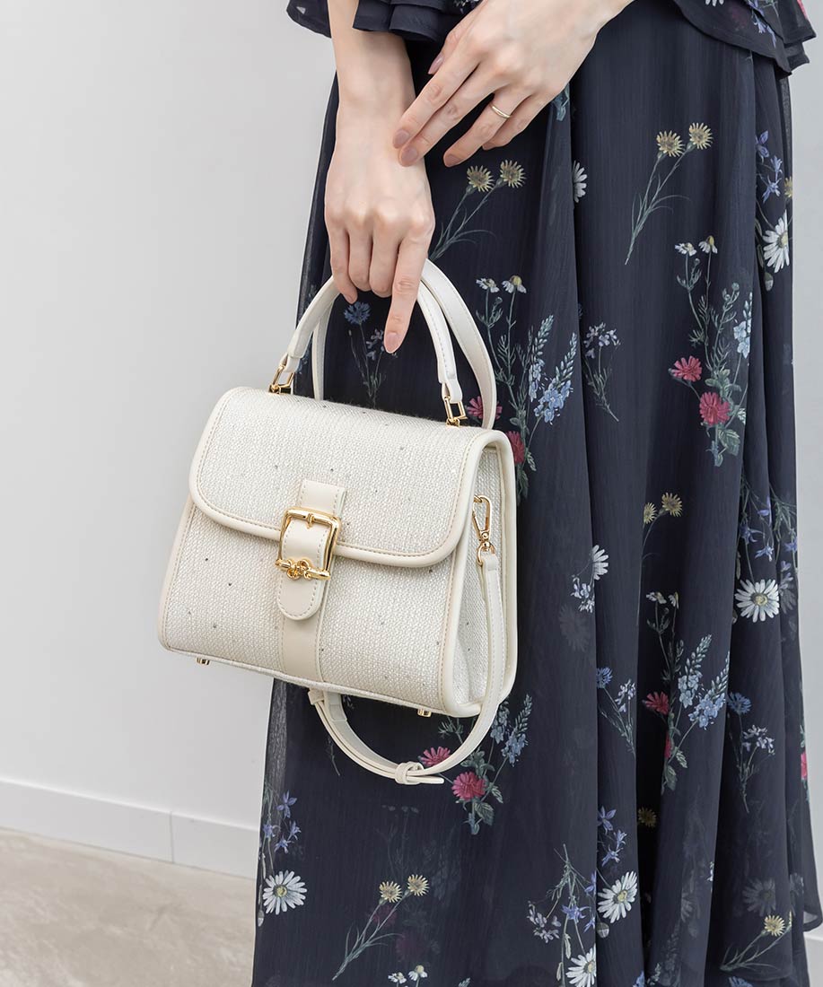 上品なモノグラムバックルがポイントのハンドバッグ。