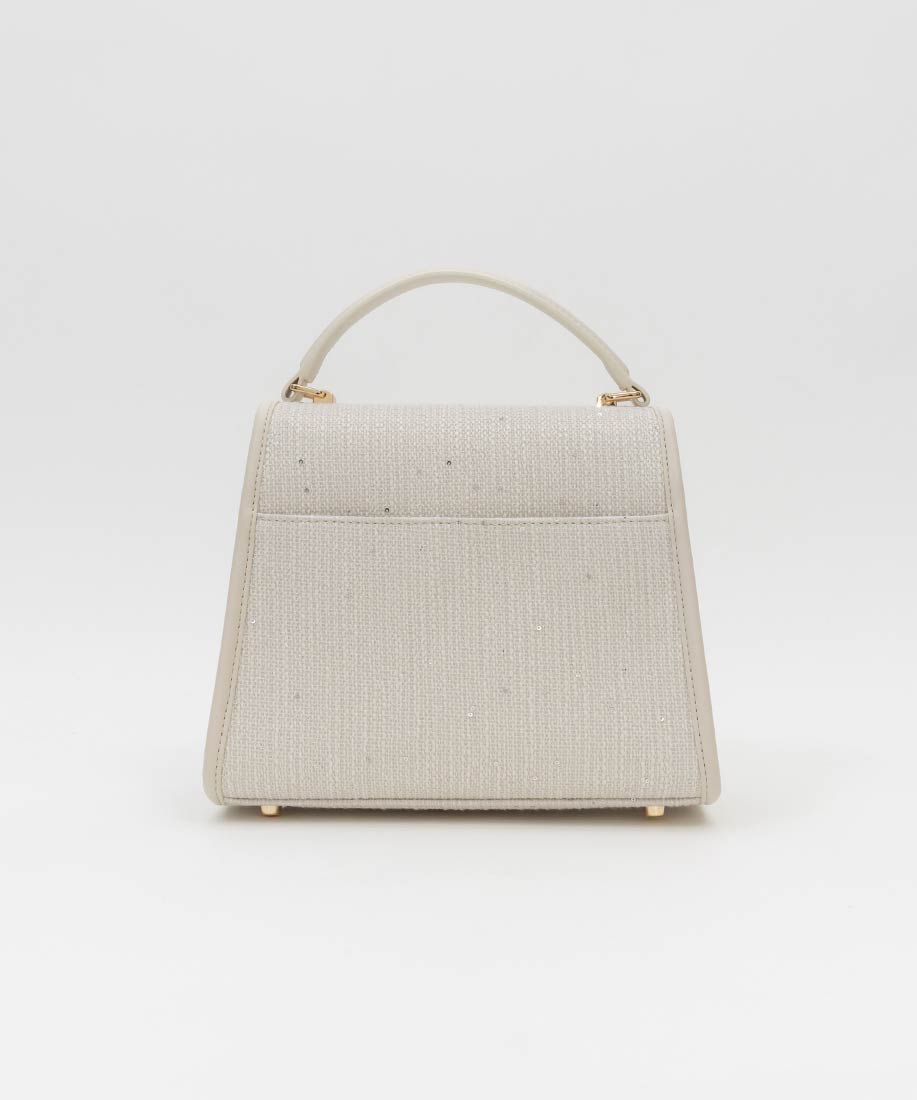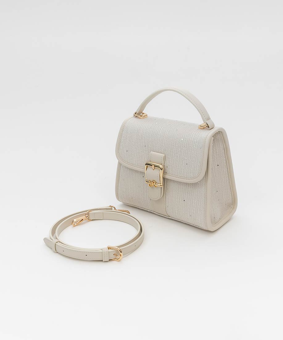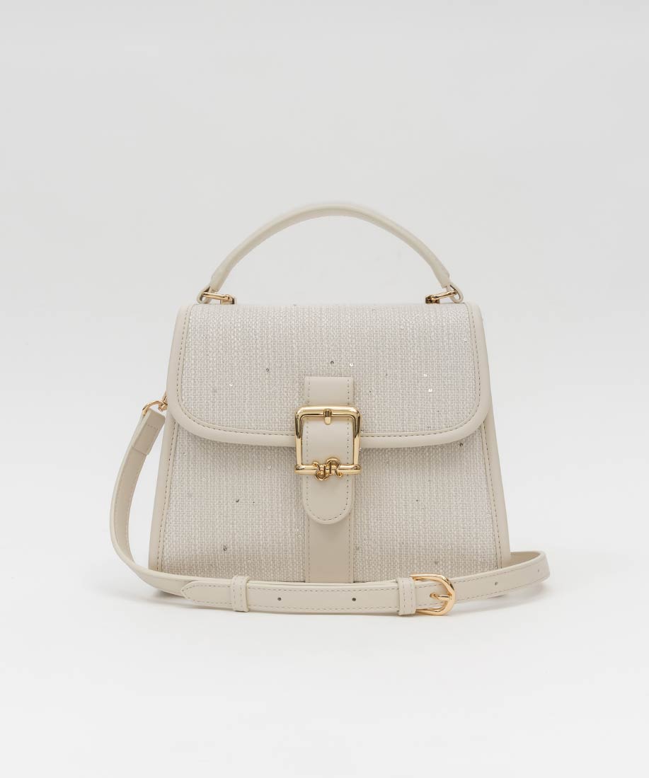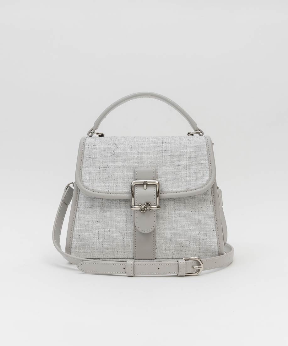 上品なモノグラムバックルがポイントのハンドバッグ。