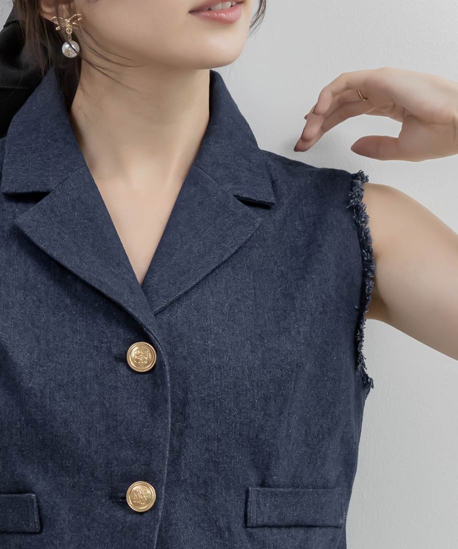 ・オリジナルモノグラム入りのゴールドボタンが華やかなアクセントに