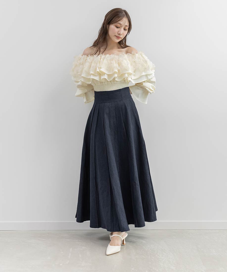 フリンジジレ&プリーツスカートセットアップ