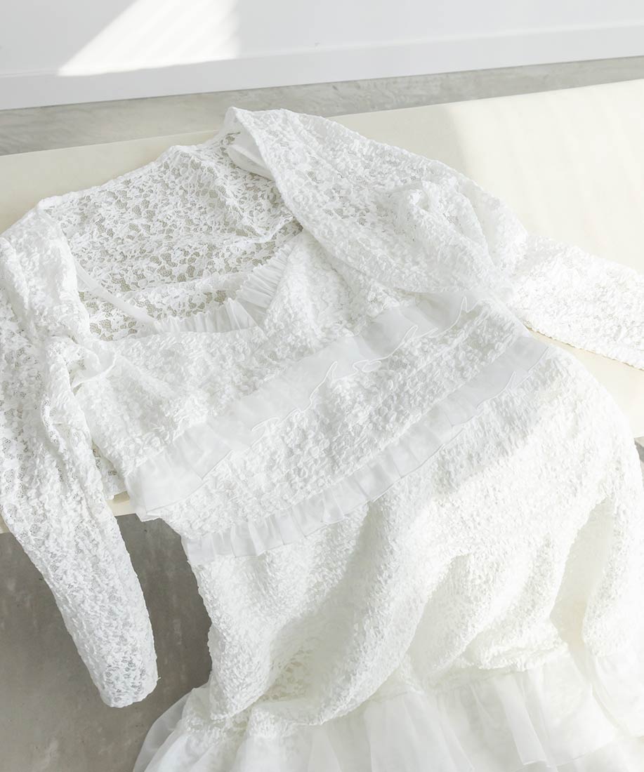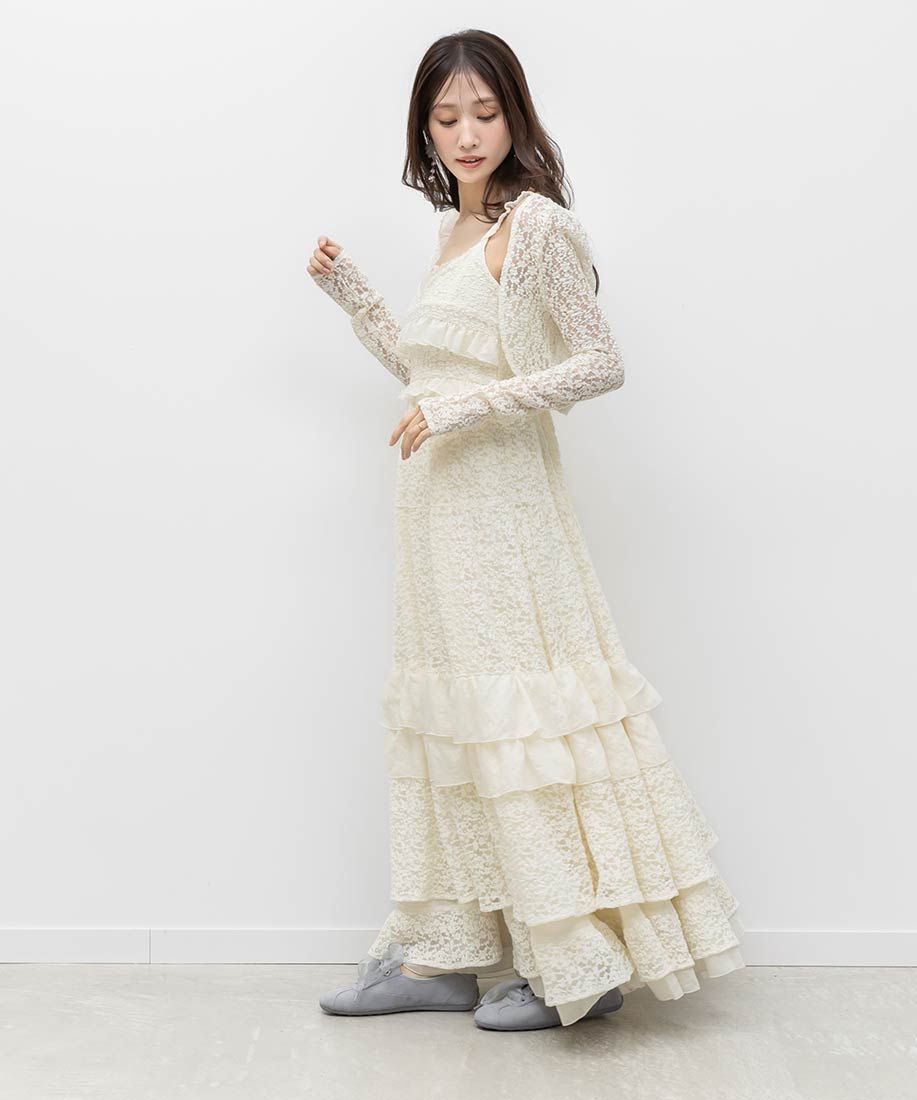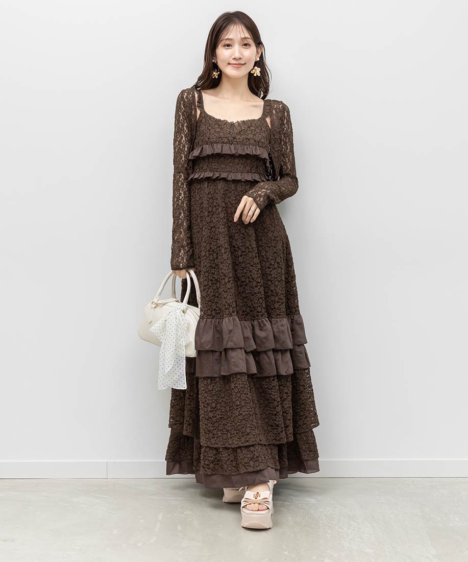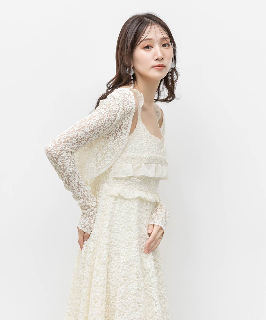 ボレロ⇒ポリエステル90%、ポリウレタン10%ワンピース⇒(表地)ポリエステル90%、ポリウレタン10%(別布)指定外繊維(リヨセル)90%、ポリエステル10%(裏地)ポリエステル95%、ポリウレタン5%