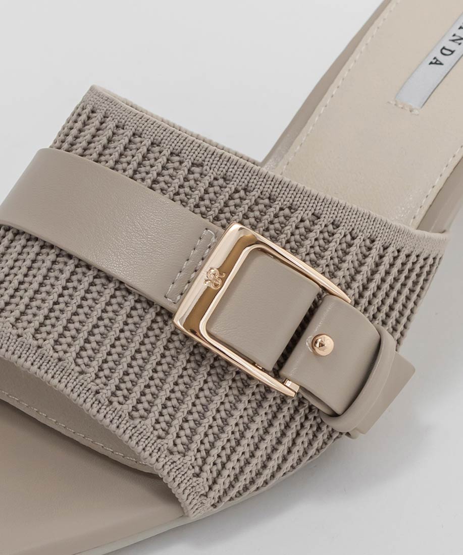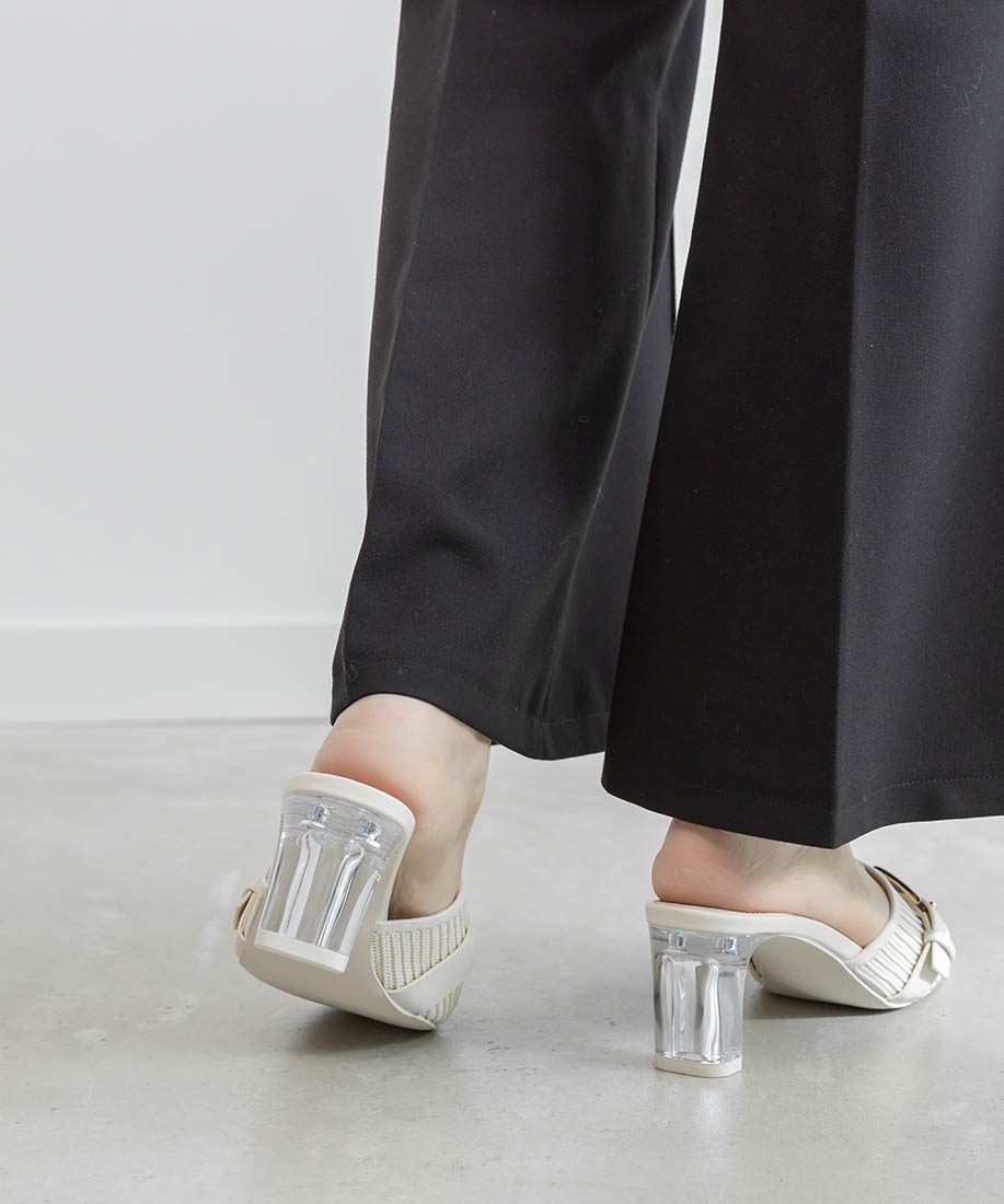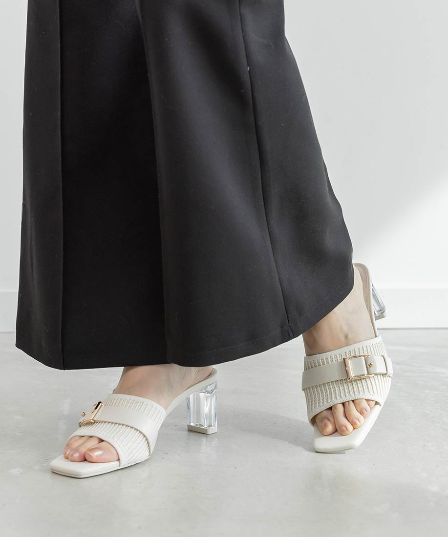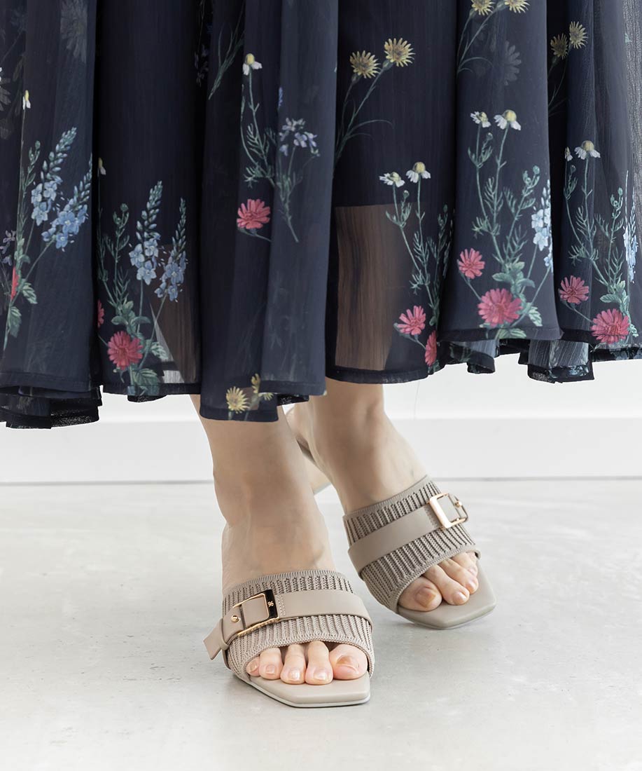 【SUSTAINABLE】ベルトデザインニットミュールサンダル
