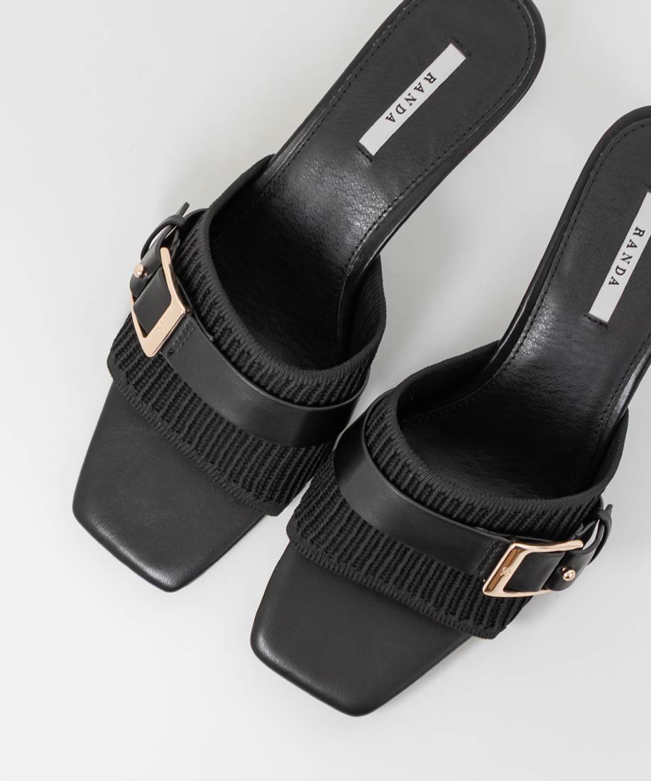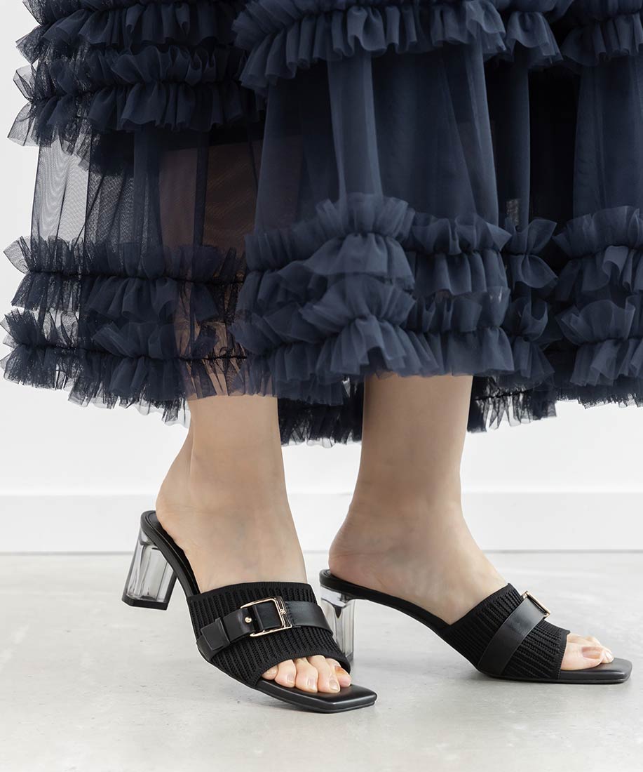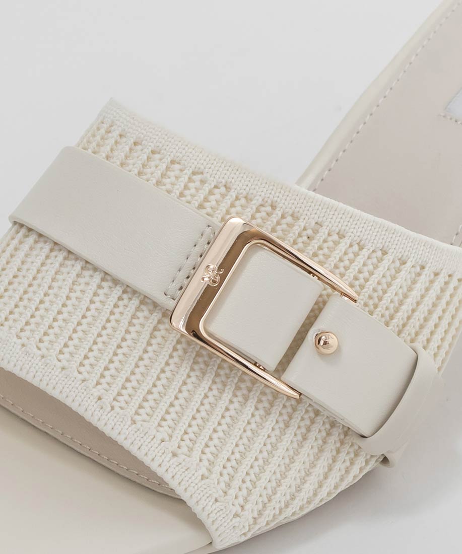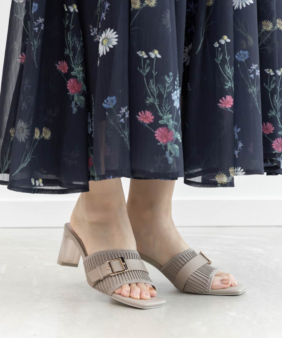 【SUSTAINABLE】ベルトデザインニットミュールサンダル