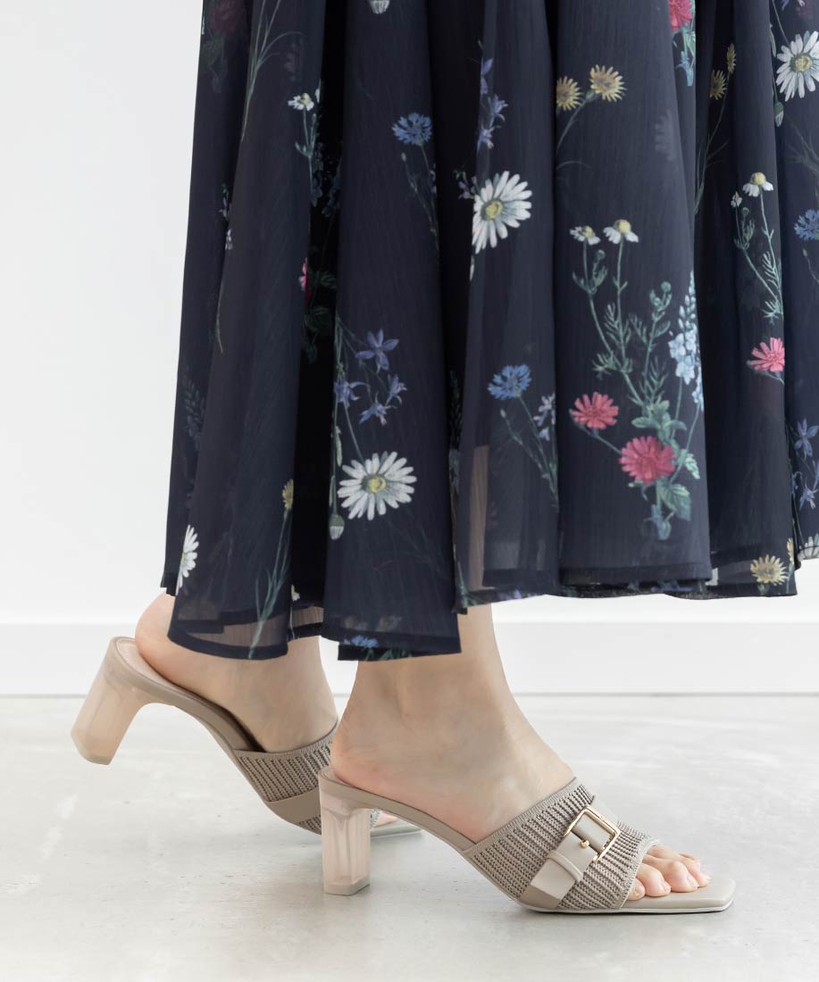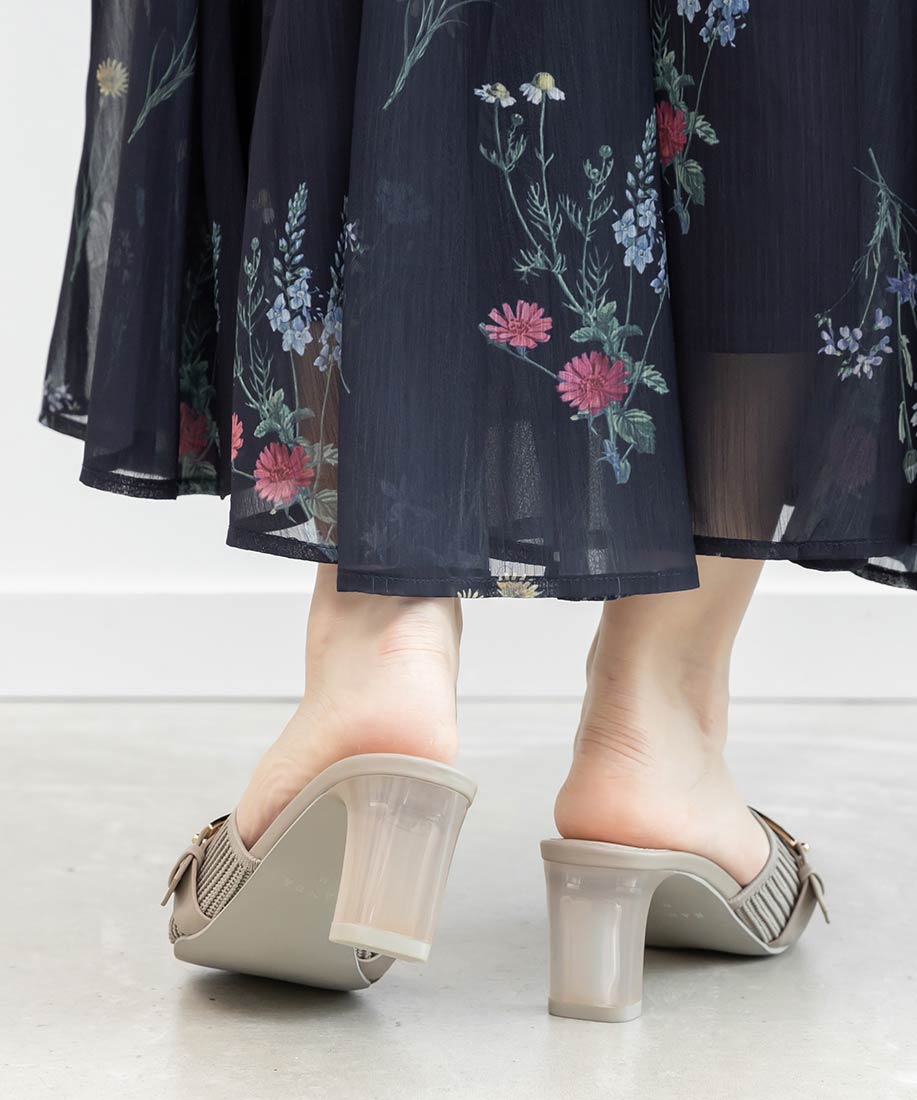 涼しげなクリアヒールでシーズンムード高まる一足です。