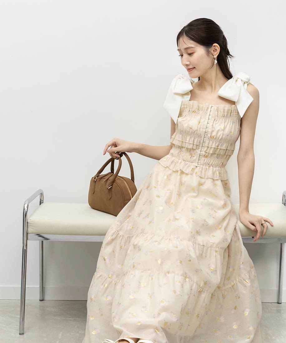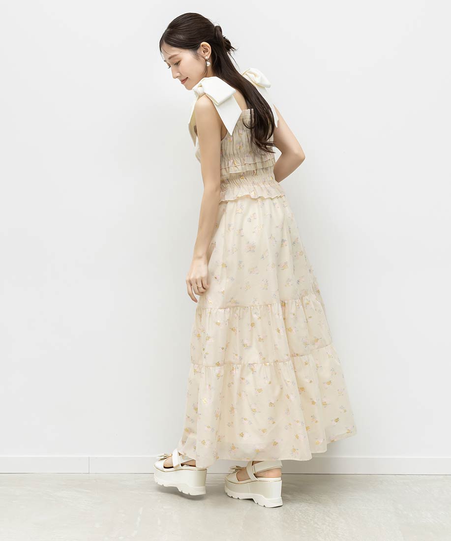 ブラック・ホワイト⇒(表地)ポリエステル100%(別布)ポリエステル75%・レーヨン20%・ポリウレタン5%(裏地)身頃⇒ポリエステル100%、スカート⇒ポリエステル95%・ポリウレタン5%ピンク⇒(表地)レーヨン50%・ナイロン26%・ポリエステル24%(スリット糸使用)(別布)レーヨン70%・ナイロン30%(裏地)身頃⇒ポリエステル100%、スカート⇒ポリエステル95%・ポリウレタン5%ベージュ⇒(表地)レーヨン60%・ポリエステル25%・ナイロン15%(スリット糸使用)(別布)ポリエステル78%・レーヨン16%・ポリウレタン6%(裏地)ポリエステル95%、ポリウレタン5%