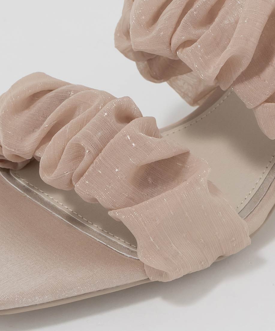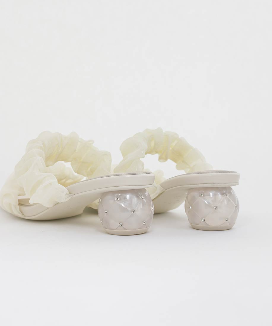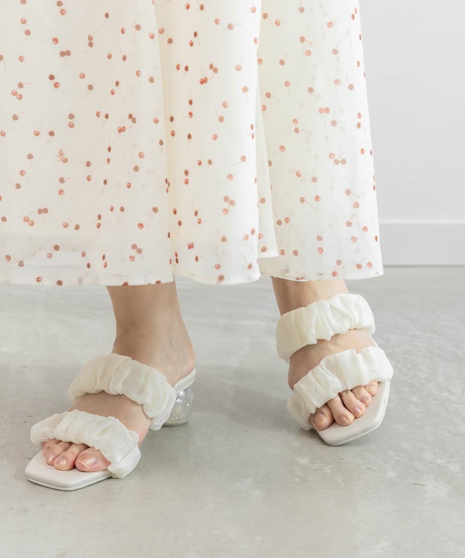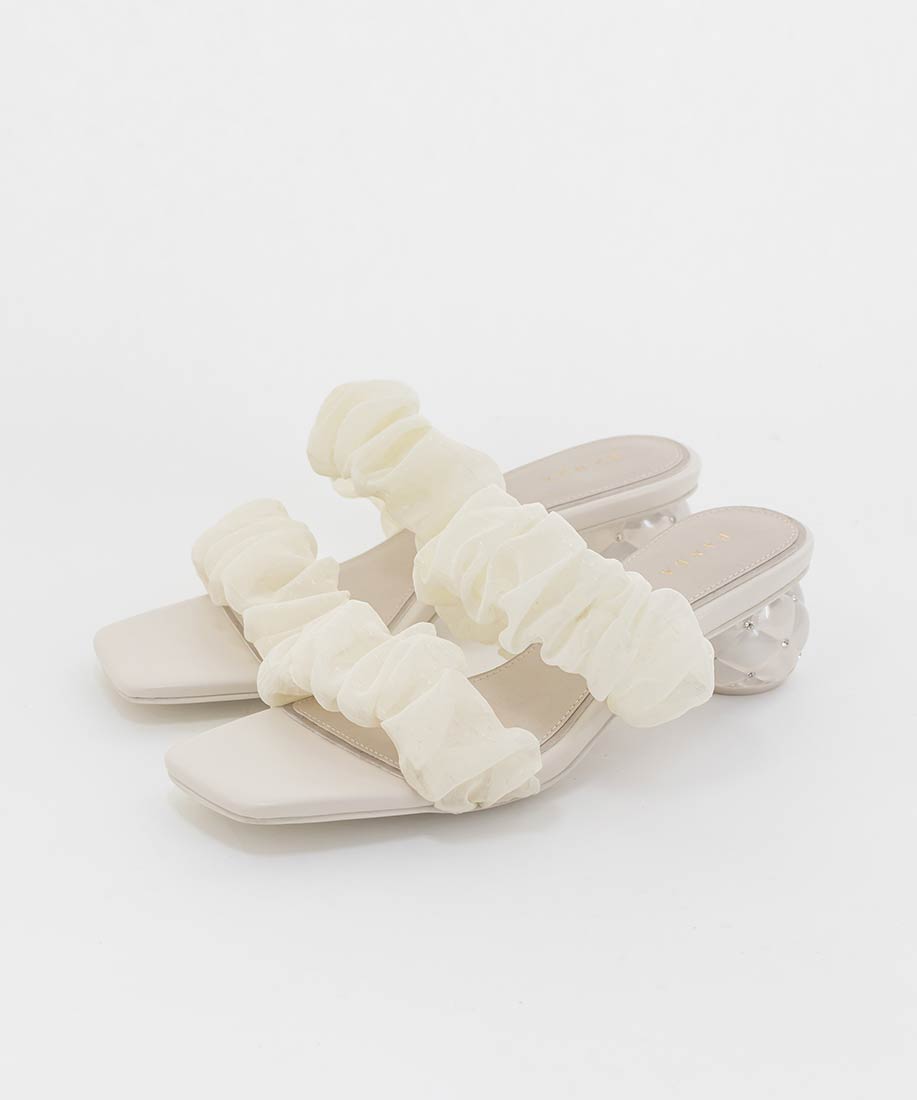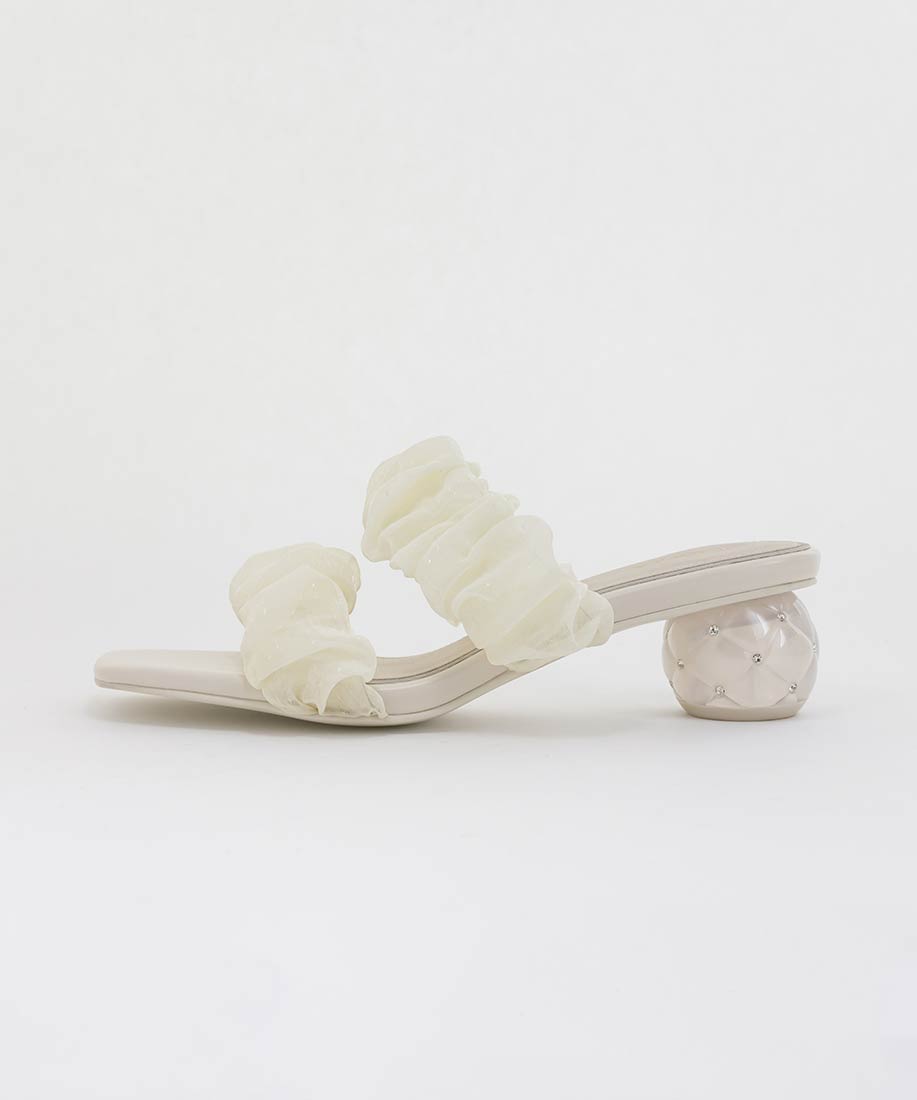 アイボリー⇒合成皮革(スムース)、シフォン生地ピンク⇒サテン生地、シフォン生地ブラック⇒生地、シフォン生地