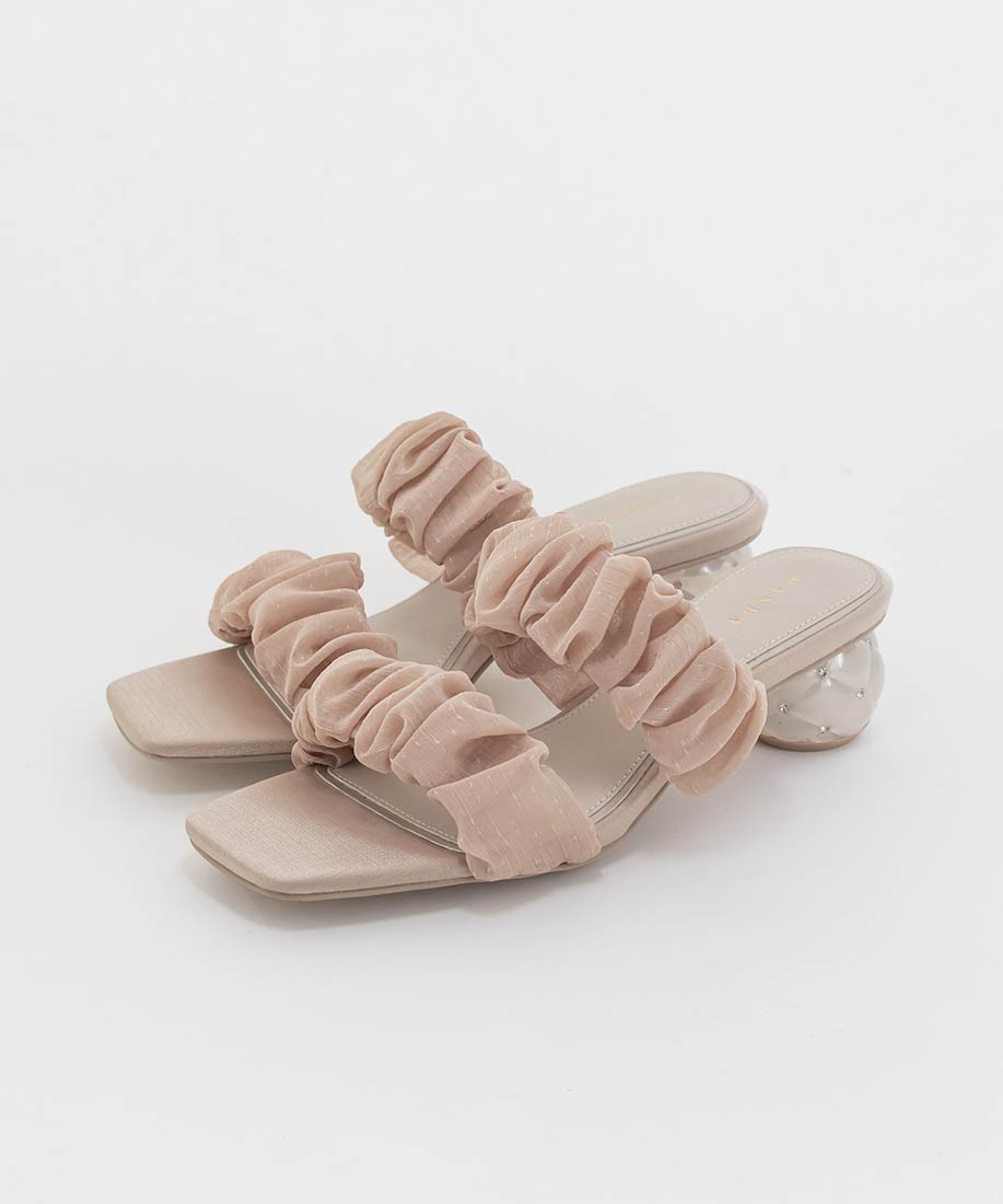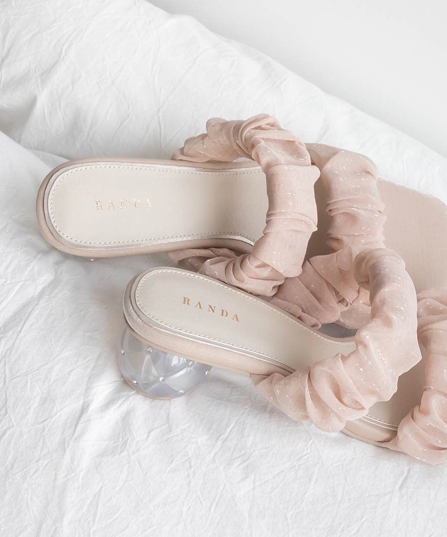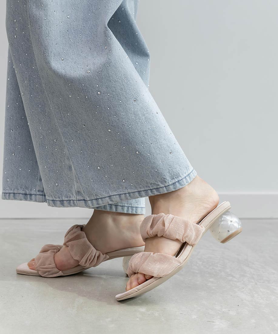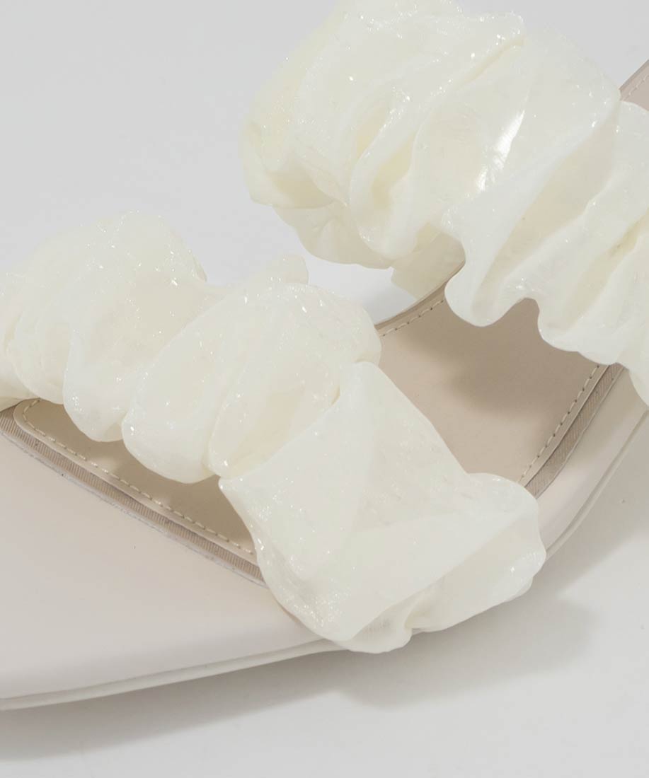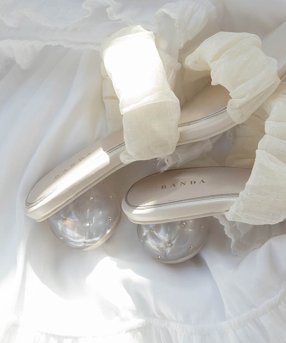 アイボリー⇒合成皮革(スムース)、シフォン生地ピンク⇒サテン生地、シフォン生地ブラック⇒生地、シフォン生地