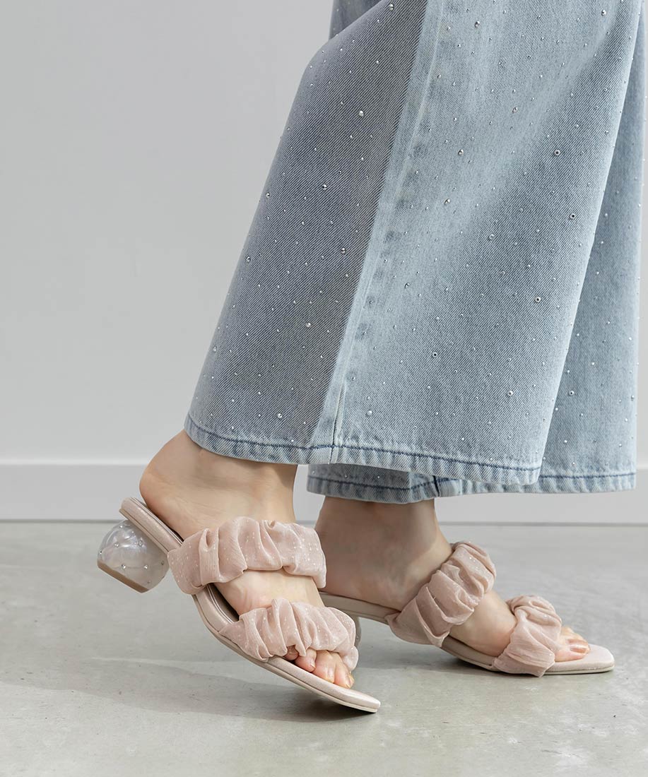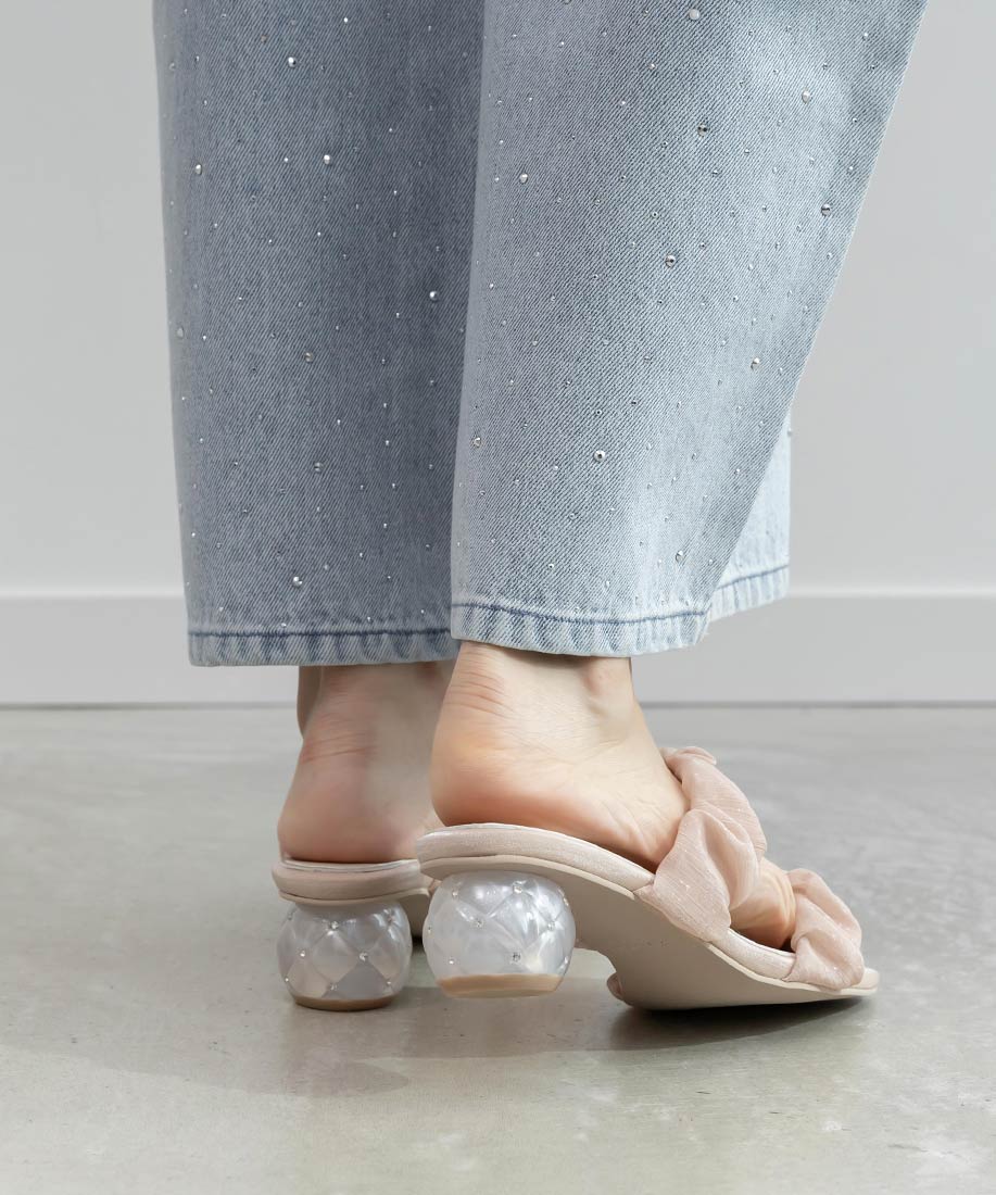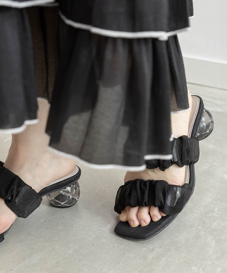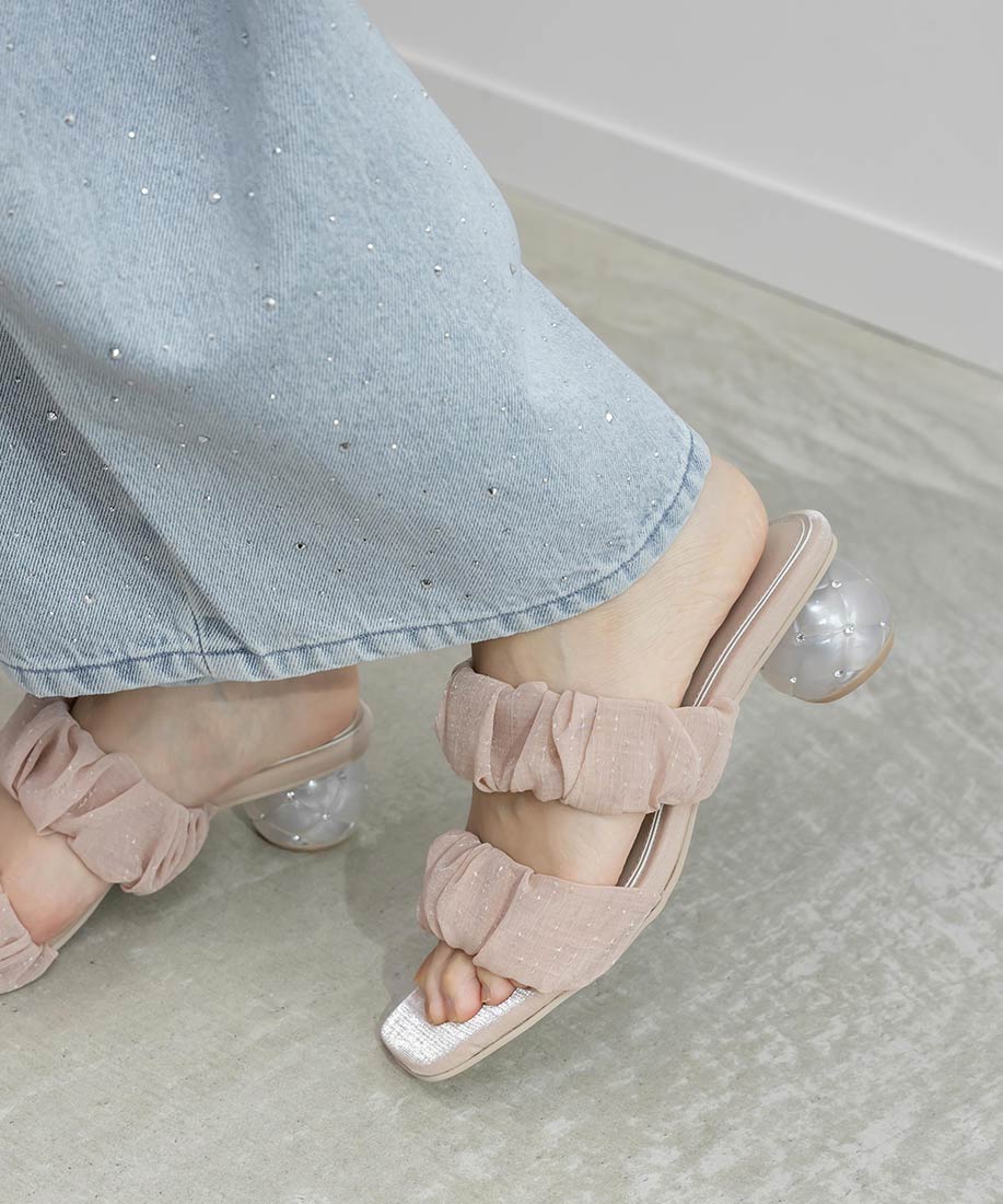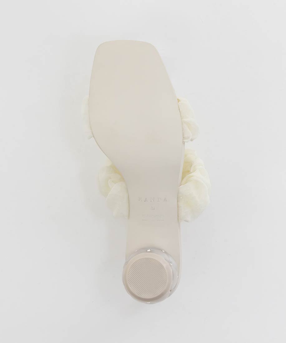 アイボリー⇒合成皮革(スムース)、シフォン生地ピンク⇒サテン生地、シフォン生地ブラック⇒生地、シフォン生地