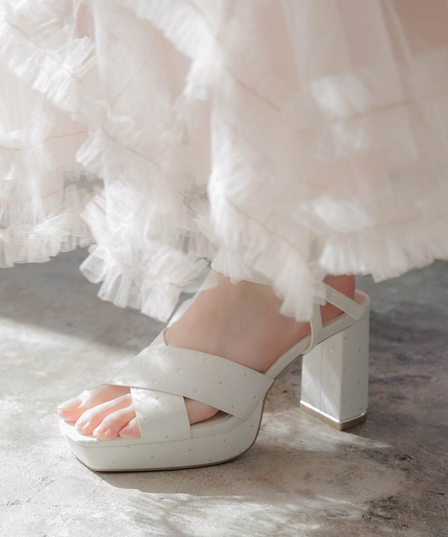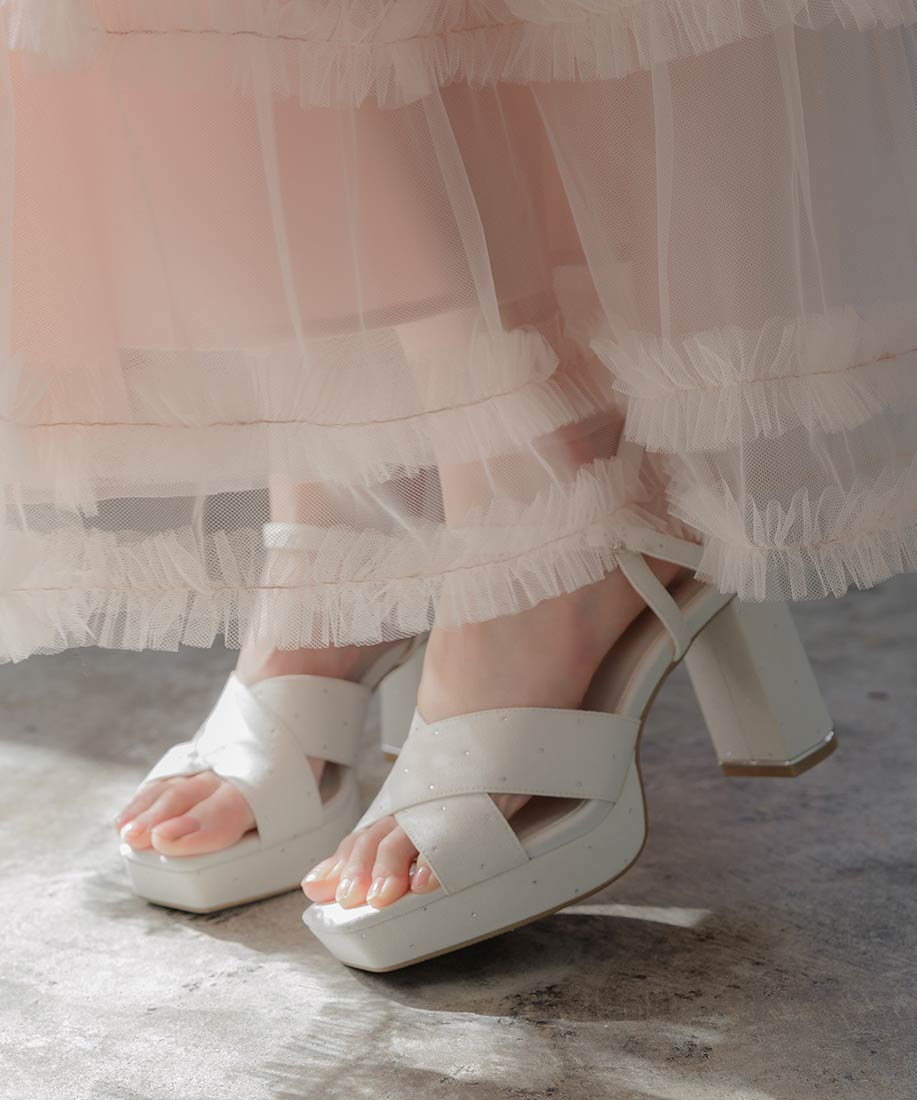 さりげなく輝く繊細なビジューが足元に華やかさを添えてくれます。