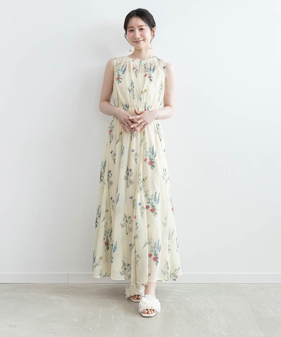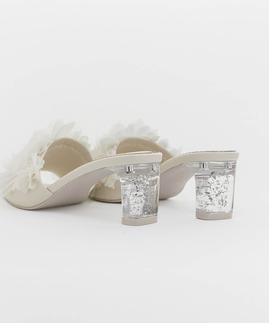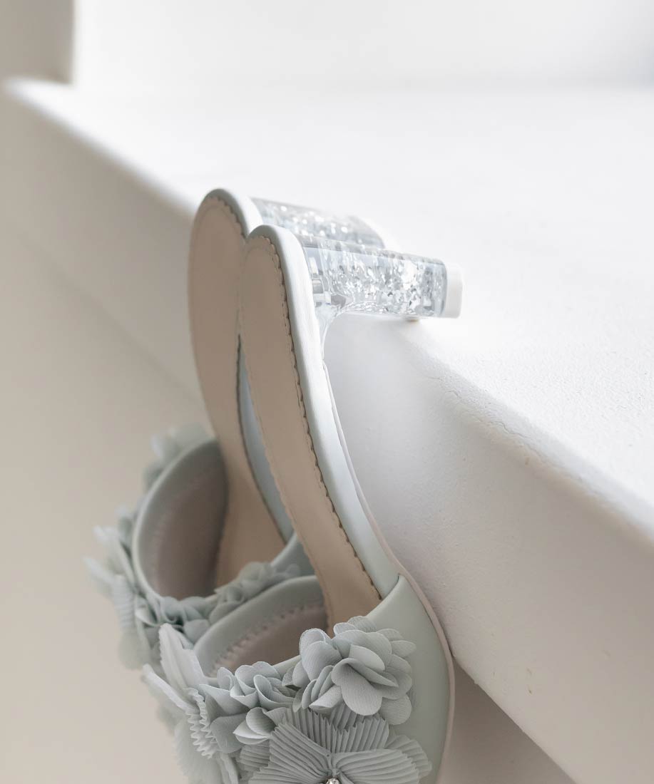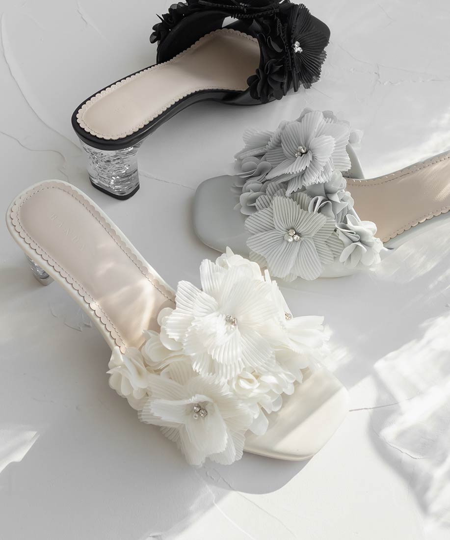 ボリューム感のあるアッパーのフラワー装飾が足元からより一層女性らしい魅力を引き出してくれます。