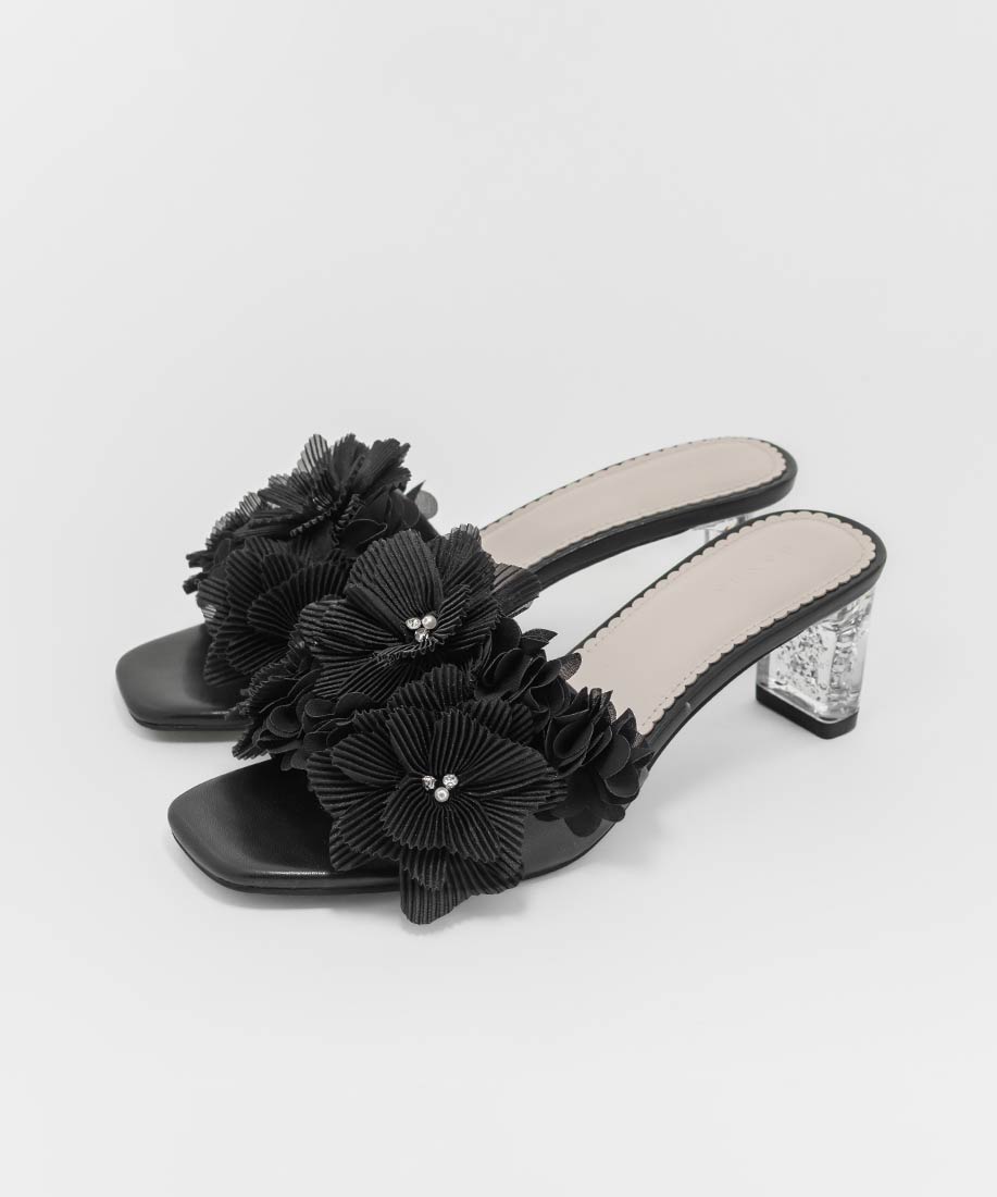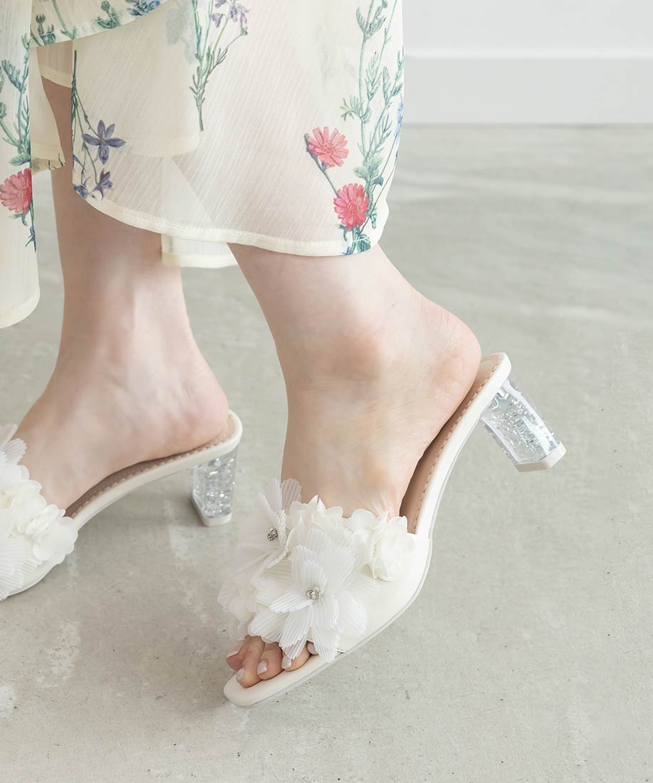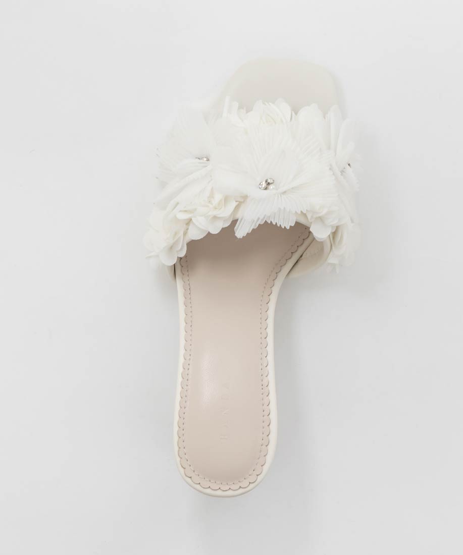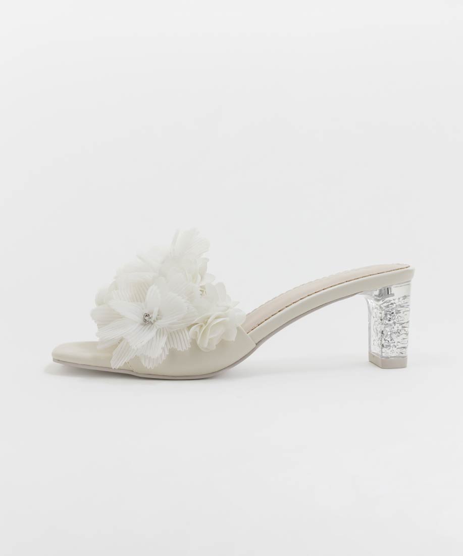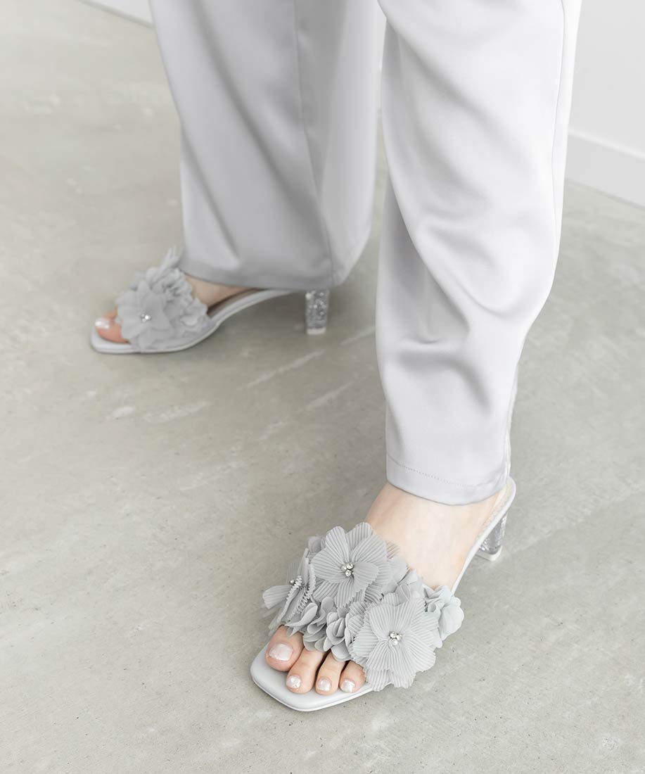 プリーツフラワーミュールサンダル